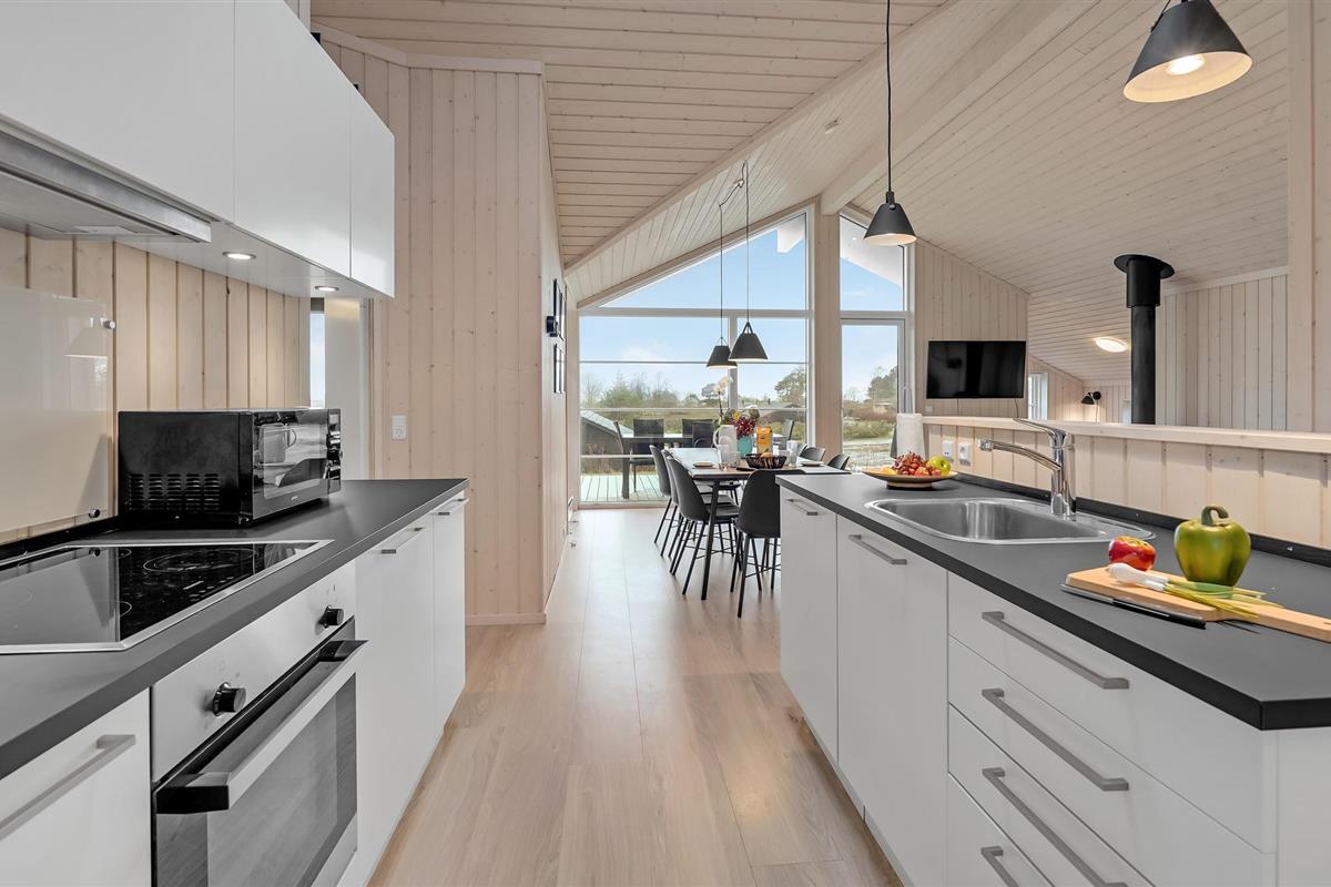 Ruim vakantiehuis in Slagelse met open keuken, houtkachel, tuin, buiten douche en dichtbij zee.