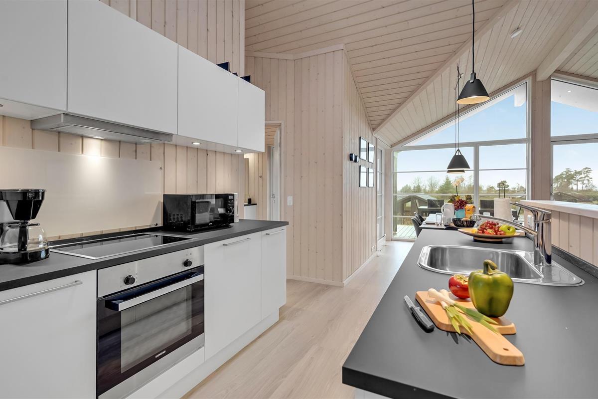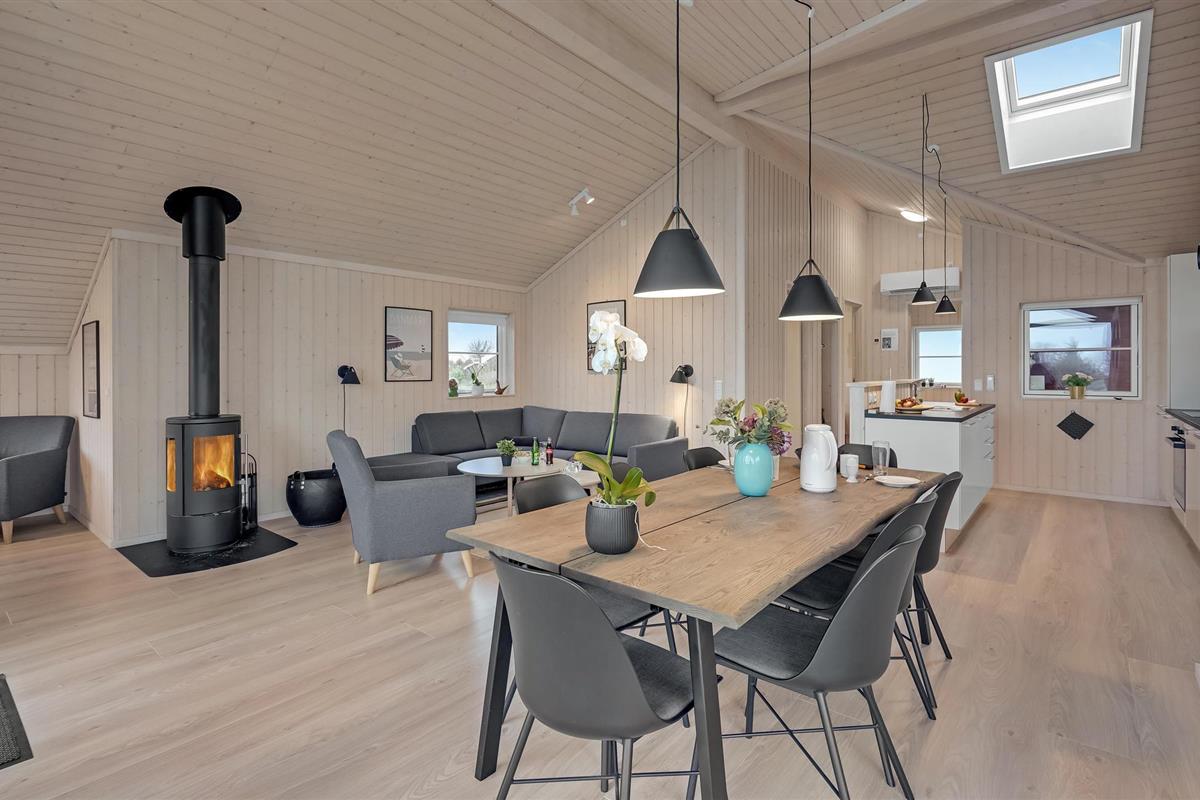 Dit zeer mooie vakantiehuis heeft een open keuken met uitzicht op de eet- en woonkamer met een houtkachel. Het uitnodigende huis heeft 3 slaapkamers en een alkoof in de woonkamer en 2 badkamers, beide met douche. Vanuit de woonkamer komt u op het open en overdekte terras. Als het in de zomer te warm wordt, kunt u afkoelen onder de buitendouche in de tuin.