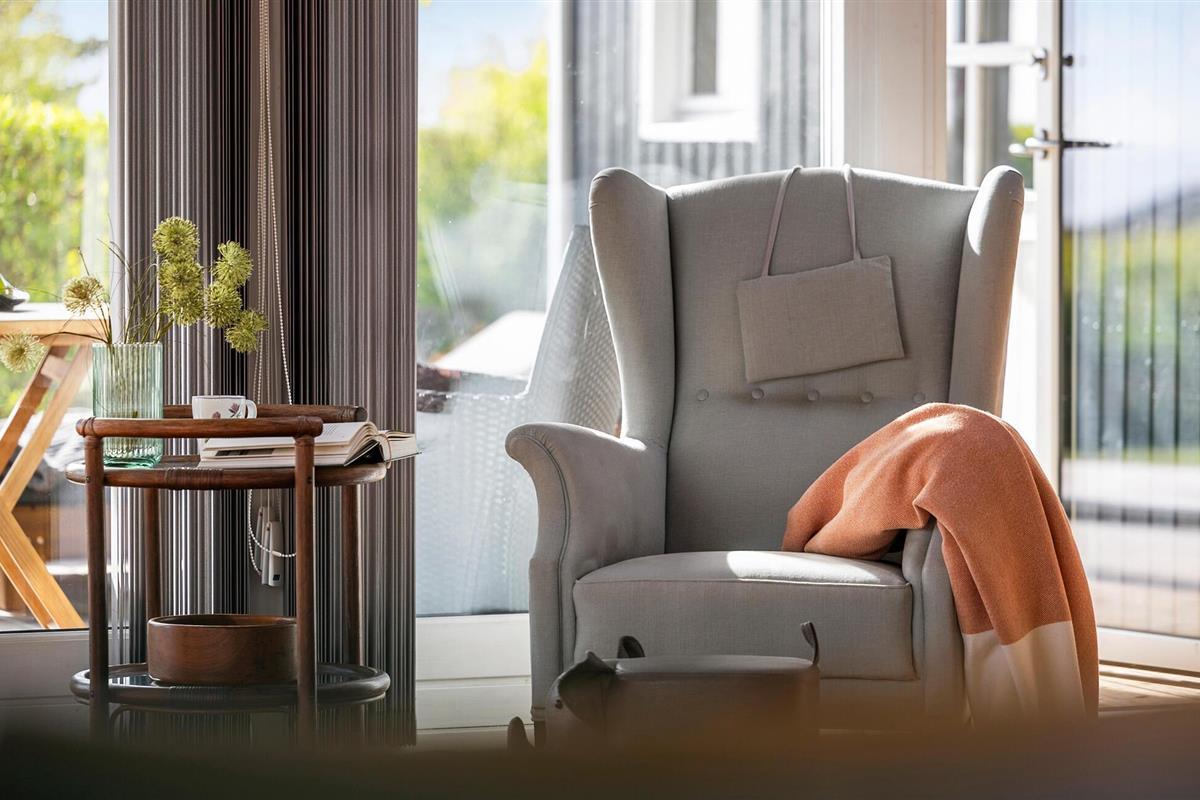 Dit ruime vakantiehuis ligt op een steenworp afstand van het zandstrand en verwelkomt je met grote ramen en smaakvol meubilair voor een lichte en gezellige sfeer. Steek de houtkachel aan en geniet van gezellige avonden koken, kies een bordspel uit de spelletjescollectie of leg je voeten omhoog in de comfortabele leesstoel voor een goed boek.