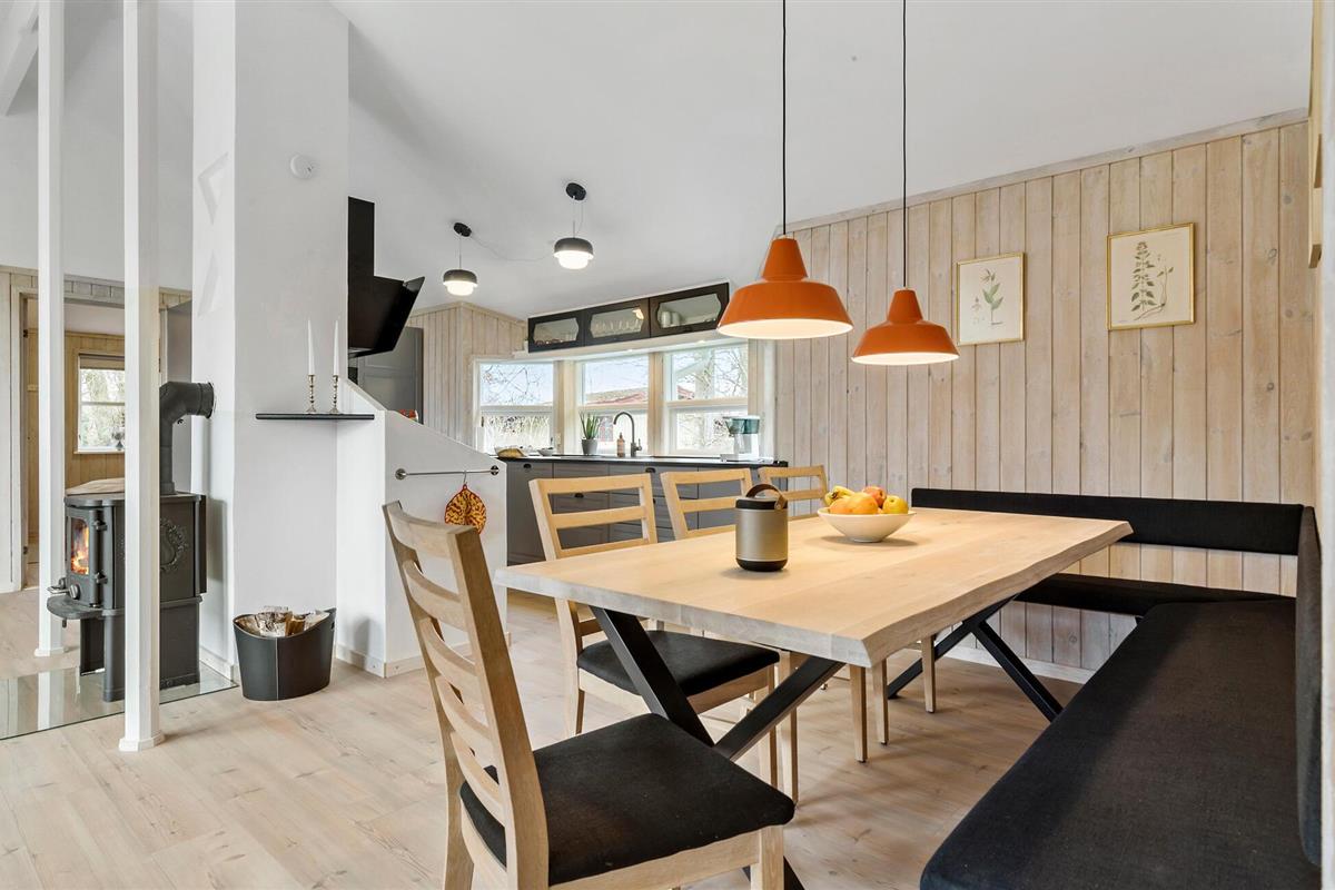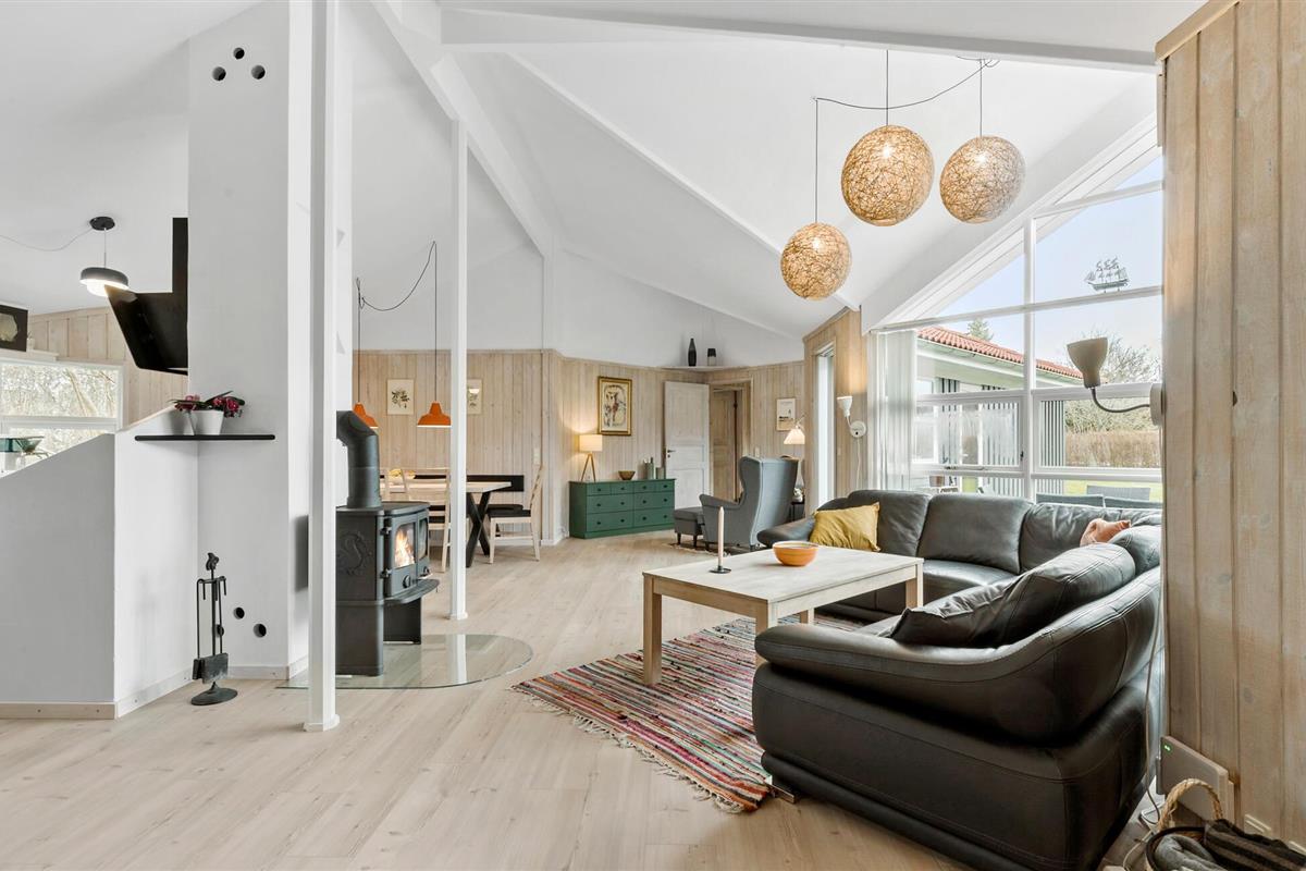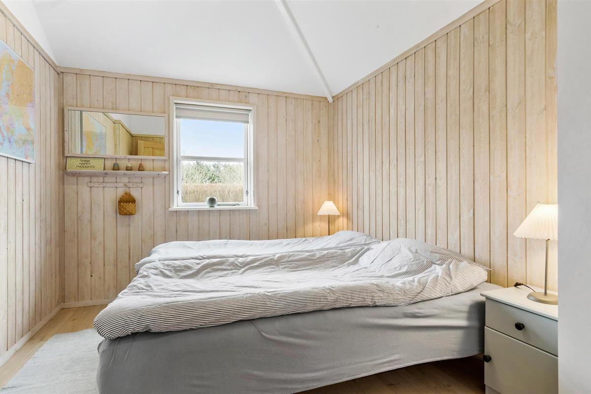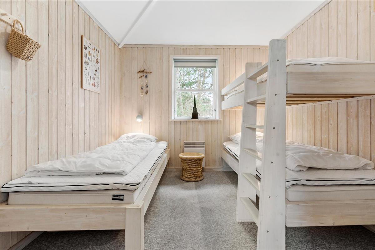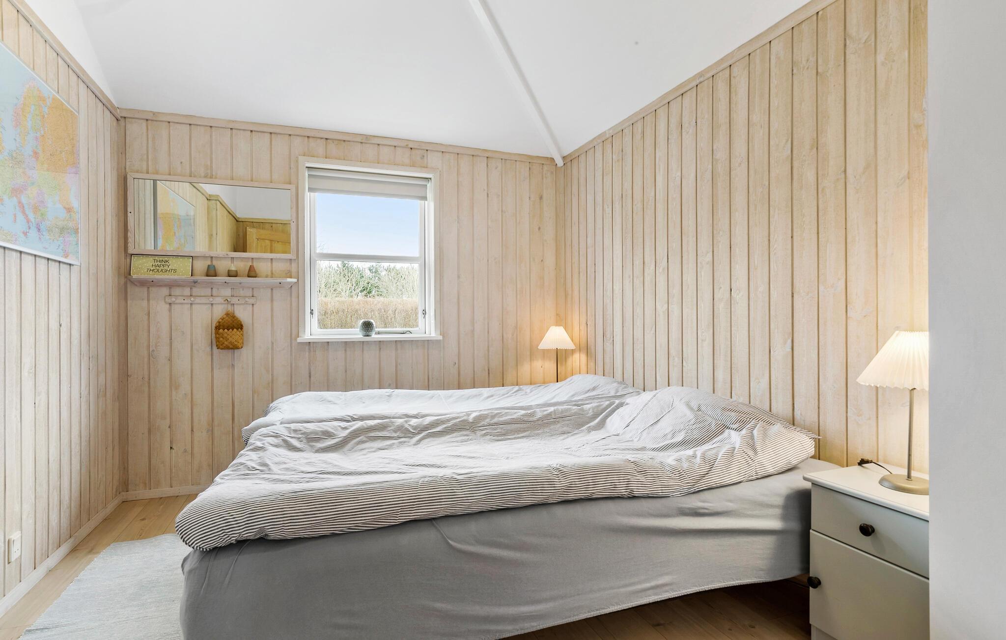 Architectonisch zeer mooi houten huis, gebouwd in 1998. Het is gelegen in een rustige en aantrekkelijke omgeving dicht bij de zee waar u kunt zwemmen, surfen en vissen. Het huis is zeer ruim en heeft naast alle comfortabele gemakken een grote, lichte woonkamer met een houtkachel. In de mooie badkamer met vloerverwarming bevindt zich onder andere een whirlpool. De sauna en het gastentoilet bevinden zich in een apart gedeelte van het huis. Het huisje ligt dicht bij het outdoor- en natuurcentrum Karpenhøj, dat diverse outdooractiviteiten biedt. De stapelbedden zijn volwassen formaat en hebben boxmatrassen (80 cm x 200 cm).
