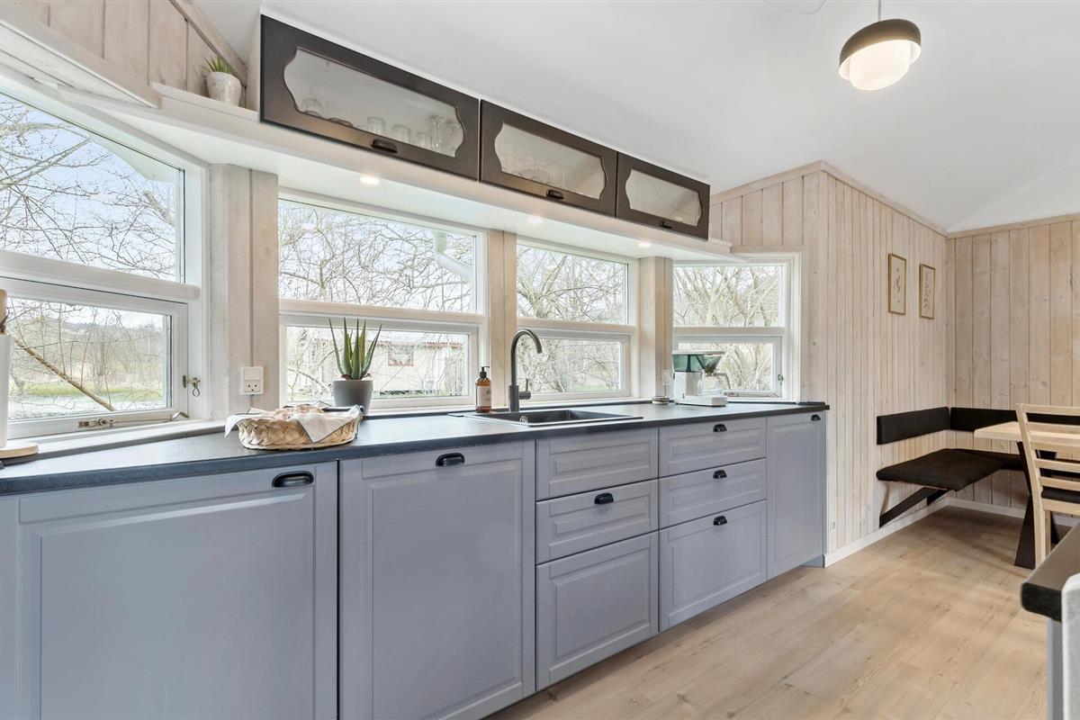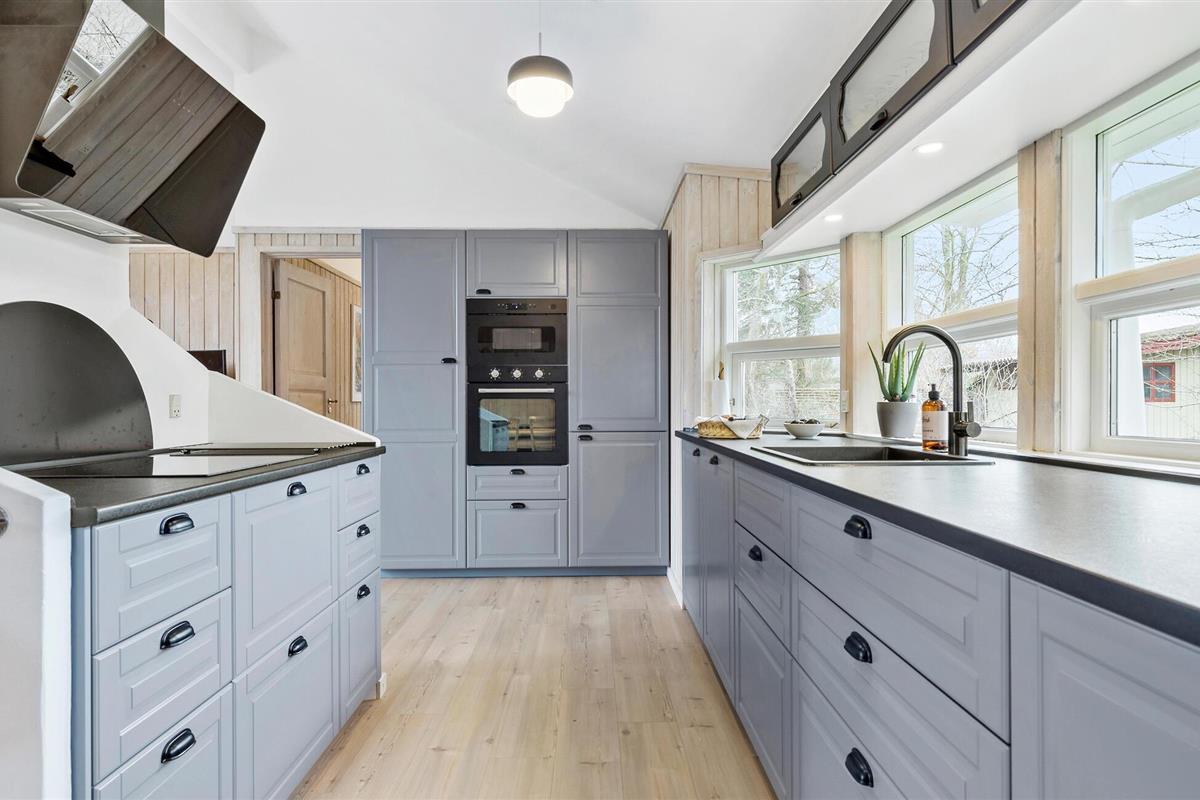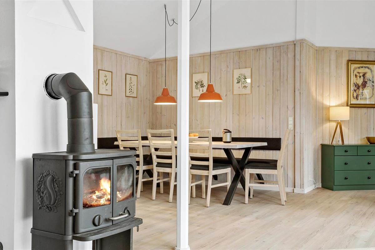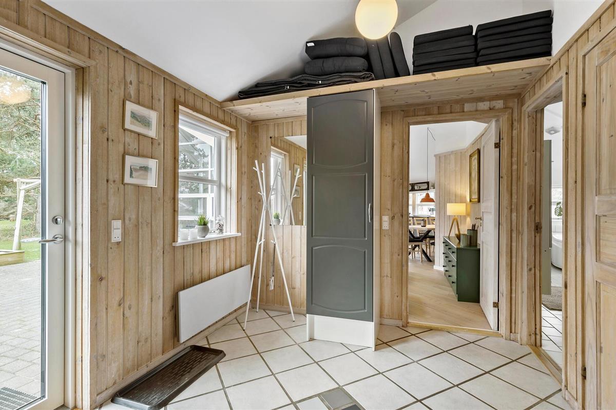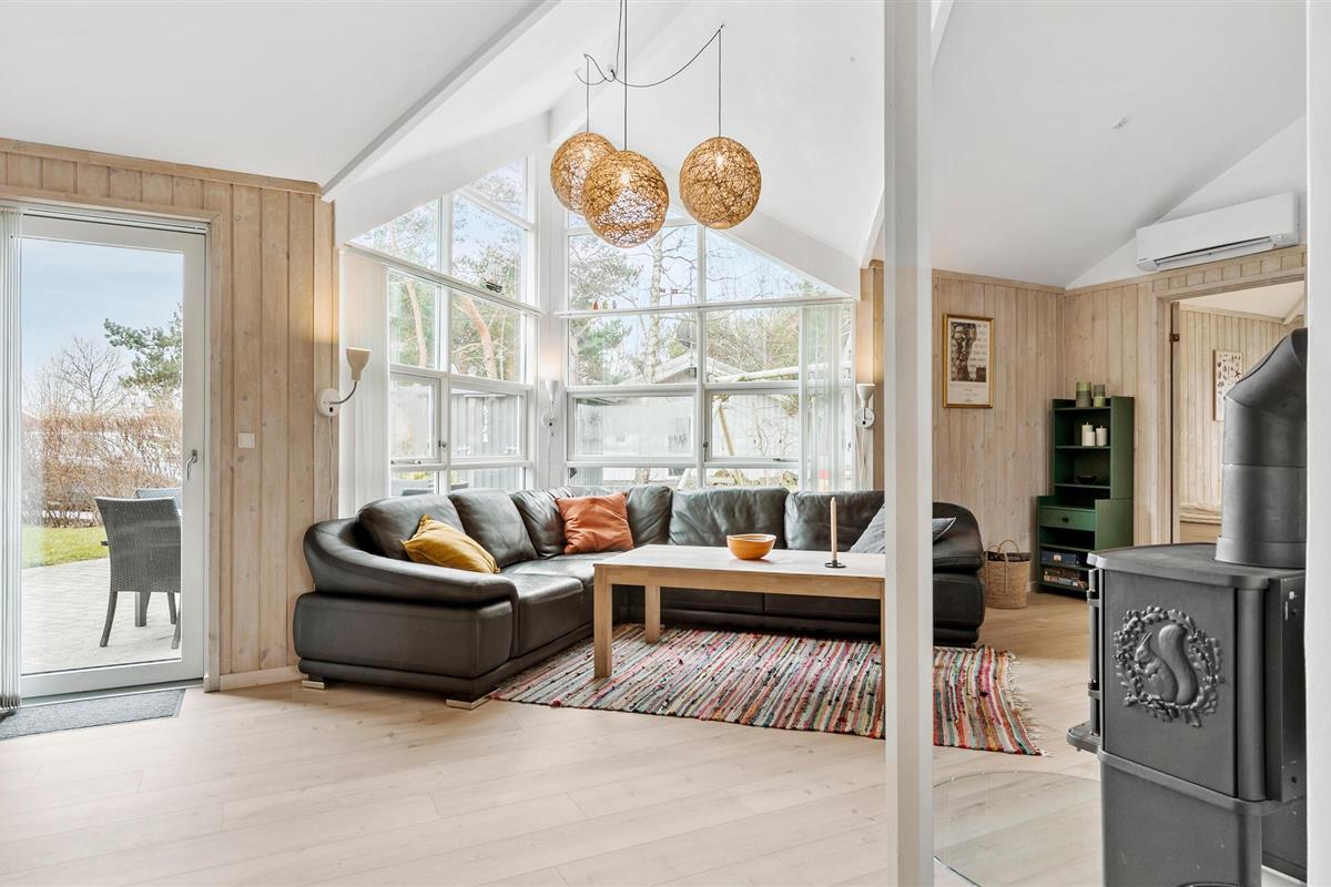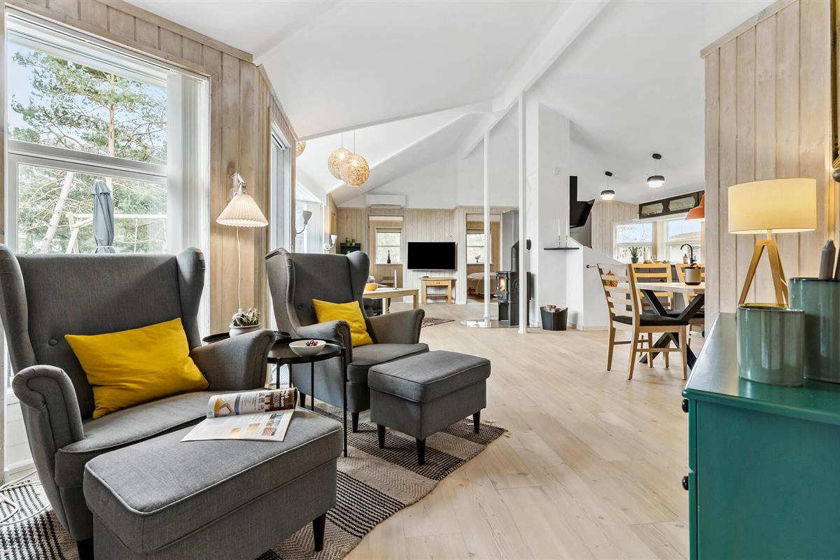 Architectonisch zeer mooi houten huis, gebouwd in 1998. Het is gelegen in een rustige en aantrekkelijke omgeving dicht bij de zee waar u kunt zwemmen, surfen en vissen. Het huis is zeer ruim en heeft naast alle comfortabele gemakken een grote, lichte woonkamer met een houtkachel. In de mooie badkamer met vloerverwarming bevindt zich onder andere een whirlpool. De sauna en het gastentoilet bevinden zich in een apart gedeelte van het huis. Het huisje ligt dicht bij het outdoor- en natuurcentrum Karpenhøj, dat diverse outdooractiviteiten biedt. De stapelbedden zijn volwassen formaat en hebben boxmatrassen (80 cm x 200 cm).