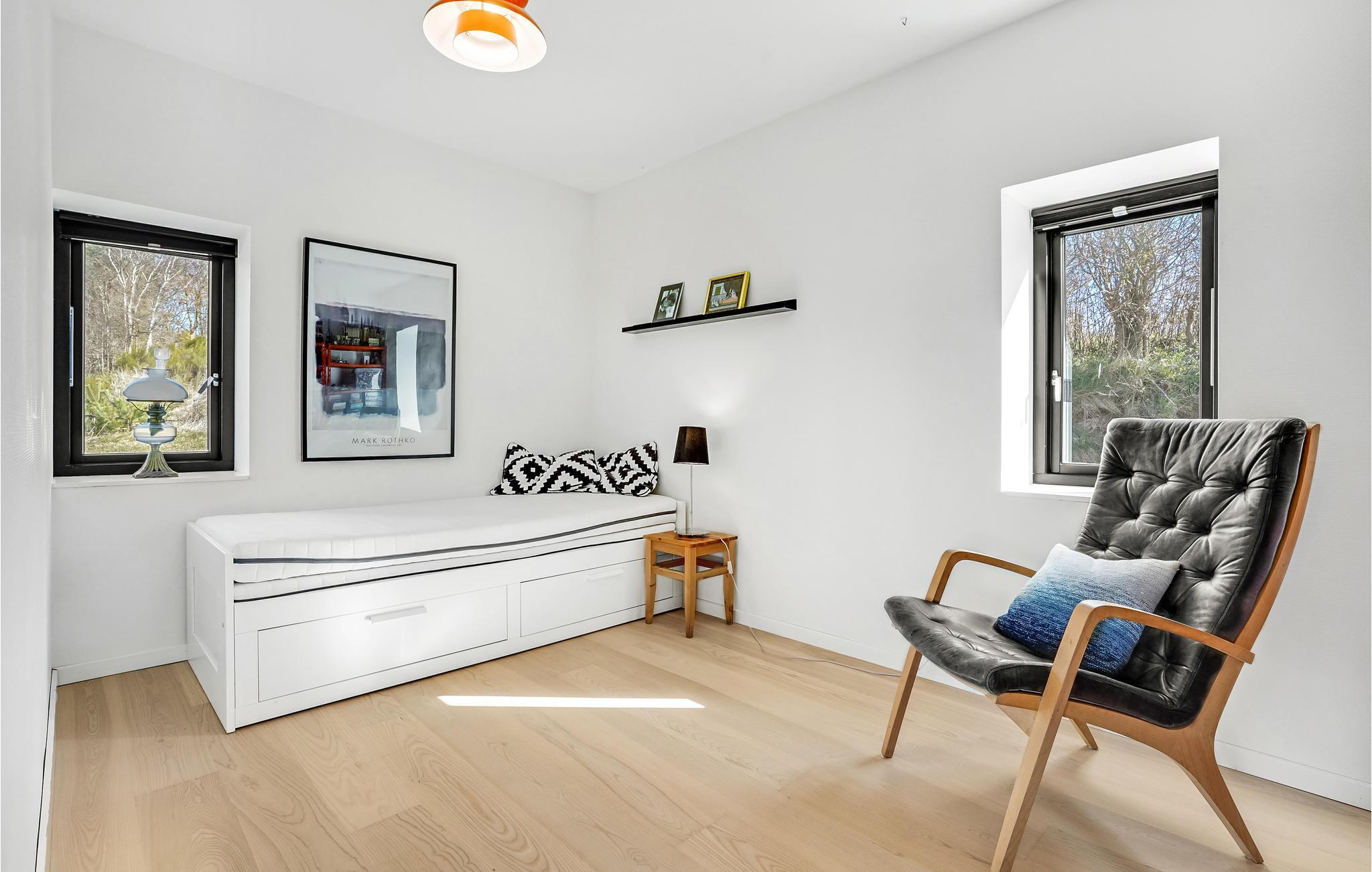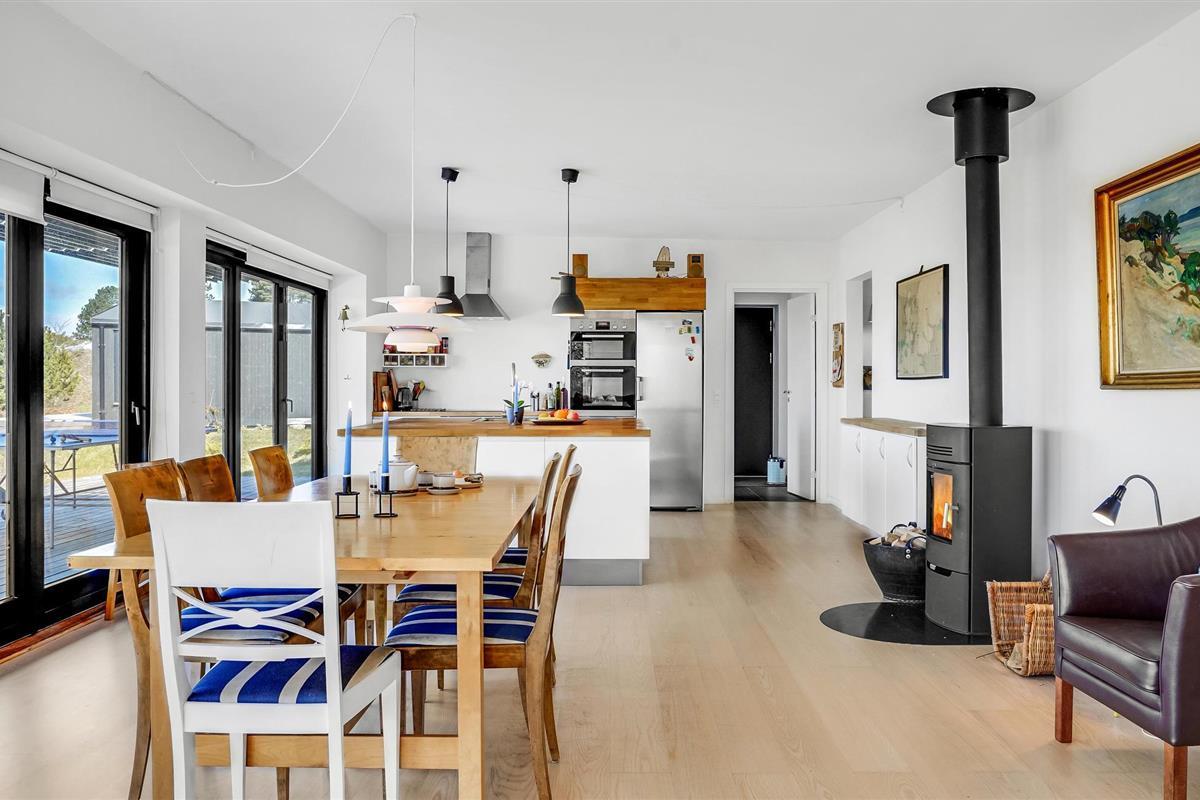 Deze accommodatie biedt alles wat u nodig heeft voor een zorgeloos verblijf. Dus pak in wat je nodig hebt en kom naar het noorden van Denemarken voor een heerlijke tijd. Er is ruimte voor de hele familie en vrienden in dit grote huis. Geniet van het uitzicht op het landschap en de zee door de enorme ramen in het woon- en eetgedeelte en vanaf het terras. Hier kunt u zowel genieten als gewoon ontspannen. Voor een echt Deens gevoel kunt u overnachten in het buitenverblijf op het terrein. Zit 's avonds bij elkaar voor een heerlijke barbecue en geniet van de schilderachtige zonsondergangen.