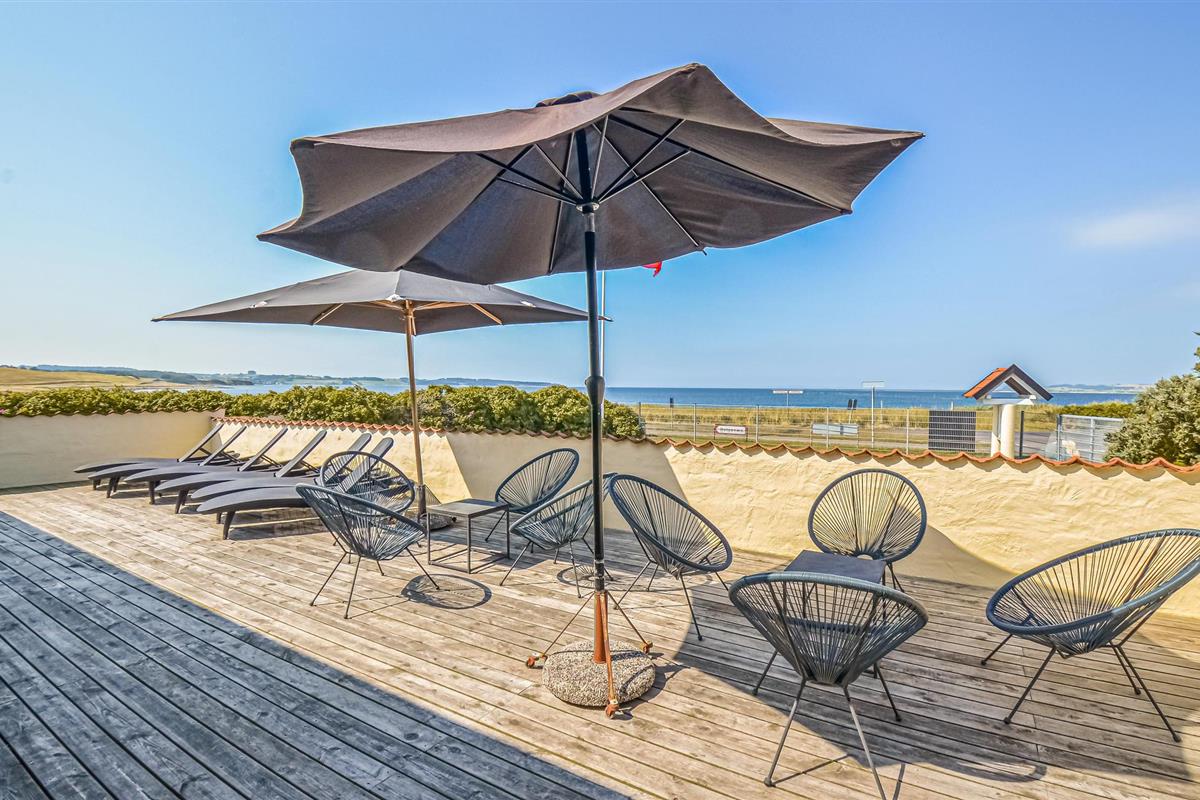 De normale aankomstdag is vrijdag. Met de zee aan beide zijden van het huis, heeft het een zeer bijzondere locatie in het zuidelijke deel van Mols Bjerge National Park, waar het uitzicht en de nabijheid van het strand en de zee een natuurlijk onderdeel van de vakantie zijn. Er zijn absoluut geweldige mogelijkheden om langs de kust te vissen. Hier kunt u ook de geschiedenis van dichtbij beleven, want het verdedigingsfort Ryes Skanser ligt op slechts 300 m van het huis. Er is ook een activiteitencentrum in de buurt in Karpenhøj. Hier kunt u les krijgen in kanoën of kajakken en mountainbikes huren.