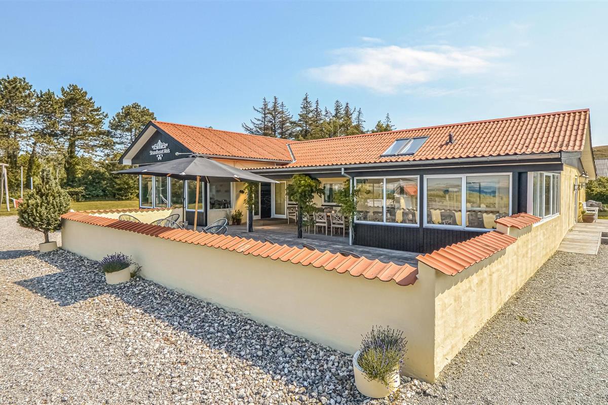 Ruim vakantiehuis bij Dragsmur Strand met zeezicht, zwembad en activiteitenruimte, ideaal voor grote groepen.