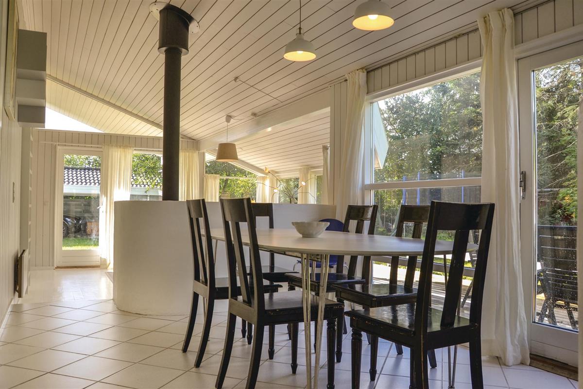 Vakantiehuis in het mooie Dronningmølle, waar het beste strand van Noord-Zeeland ligt. In dit huis is aan alles gedacht. De speciaal ontworpen keuken ligt in een glazen erker met halfhoge muren naar het eetgedeelte. De chique badkamer met vloerverwarming en douchehoek en sauna geven het huis een speciaal extraatje. Aan een kant van het huis is een groot, open terras, dat is gecreëerd in combinatie met een overdekt terras. Ervaar de kleine steden Gilleleje en Hornbæk, waar je kunt winkelen en koffie drinken. Kopenhagen ligt op minder dan 1 uur rijden. Er wacht je een warm welkom.