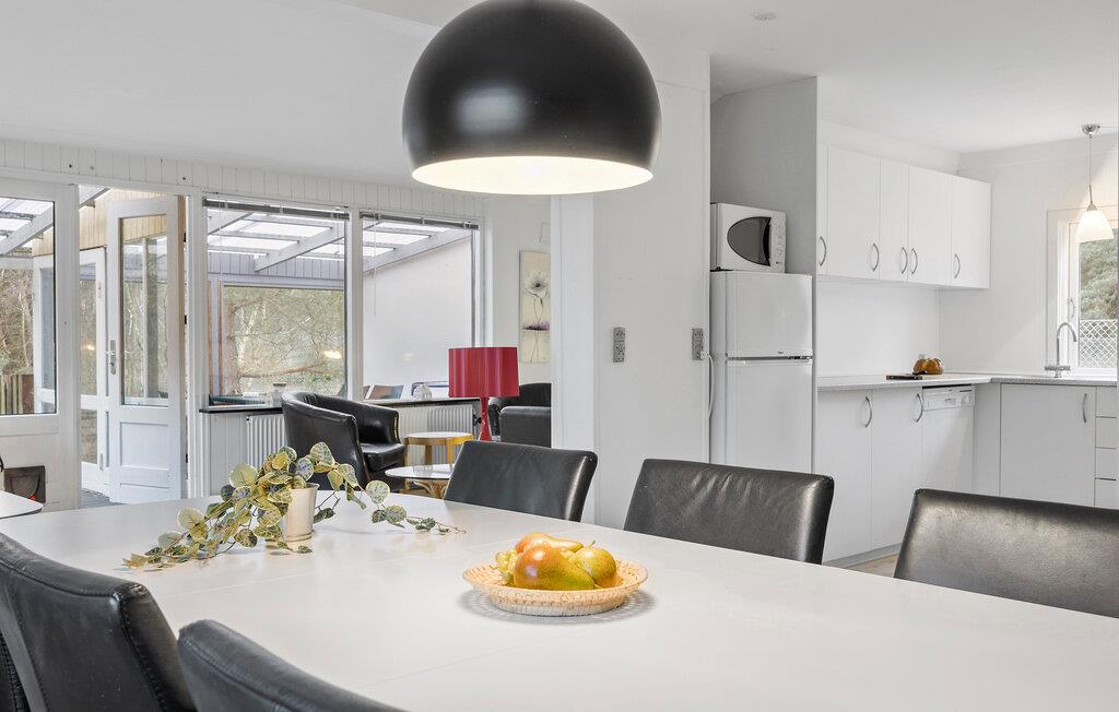 Welkom in de lichte, open woonkamer van dit gezinsvriendelijke vakantiehuis. Bereid samen heerlijke maaltijden in de goed uitgeruste keuken en geniet ervan aan de grote eettafel. Na een actieve dag aan de kust nodigt de gezellige zithoek uit om te ontspannen met een spelletjesavond of een goede film.