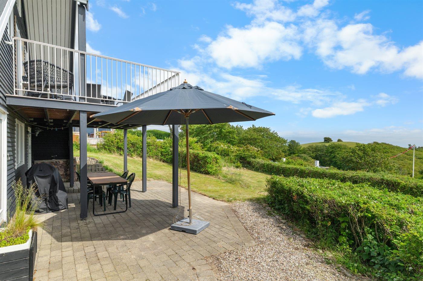 De vakantiewoning is gelegen op een 595 m² groot aangelegde tuin. Afstand tot de zee 450 m. Afstand tot meer 300 m. Dichtstbijzijnde winkel 4000 m. Er is een golfbaan op een afstand van 8000 m. Bij de vakantiewoning hoort 45 m² terras. Daarnaast is er een 8 m² groot overdekt terras. Gereedschapsruimte.Vuurplaats. Barbecue. Parkeerplaats bij het huis.