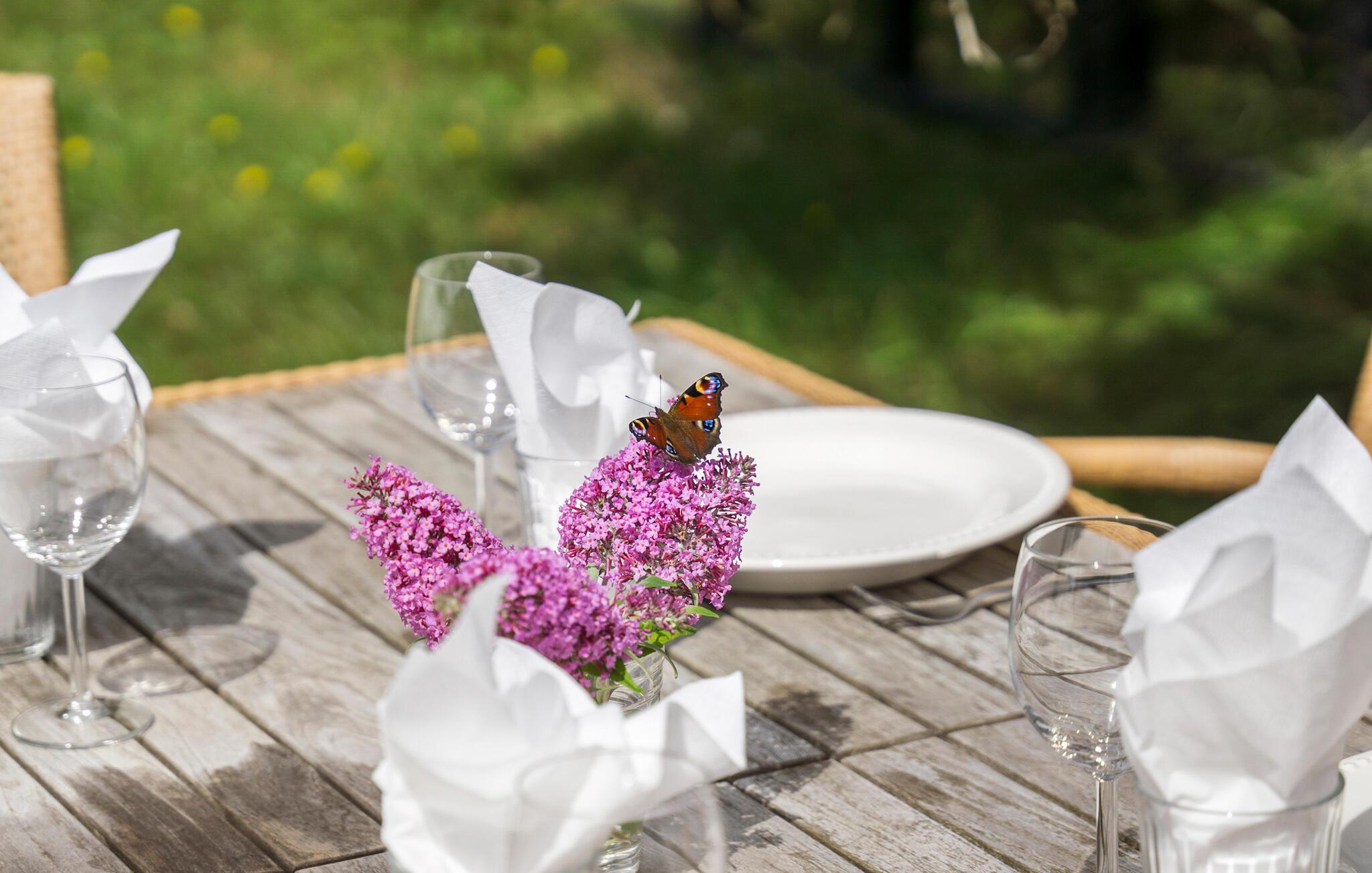 Het houten zonneterras met barbecueplaats en ligstoelen biedt de perfecte setting voor ontspannen avonden in de buitenlucht. Een hangmat wacht op je tussen de bomen en biedt je een vredig toevluchtsoord.