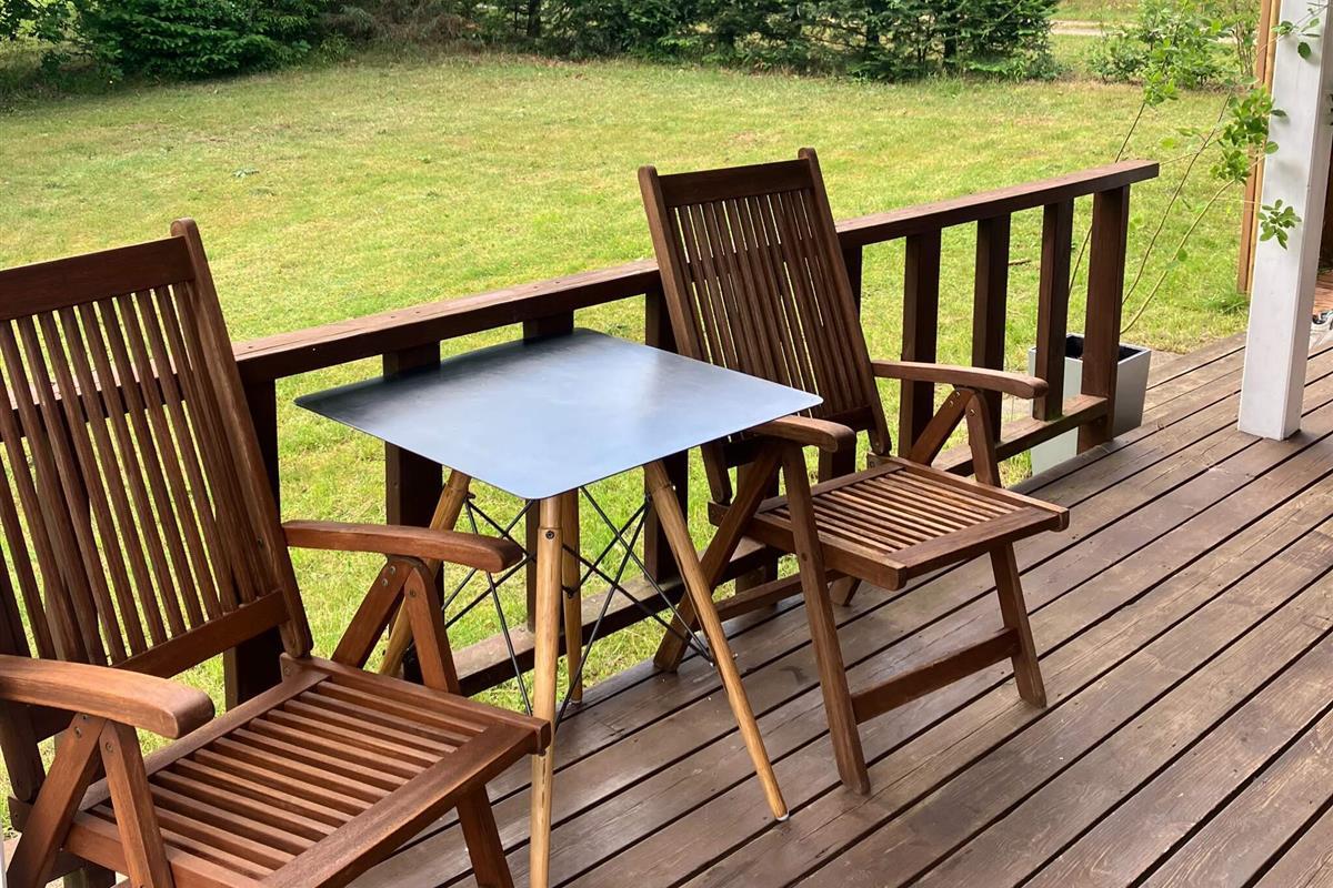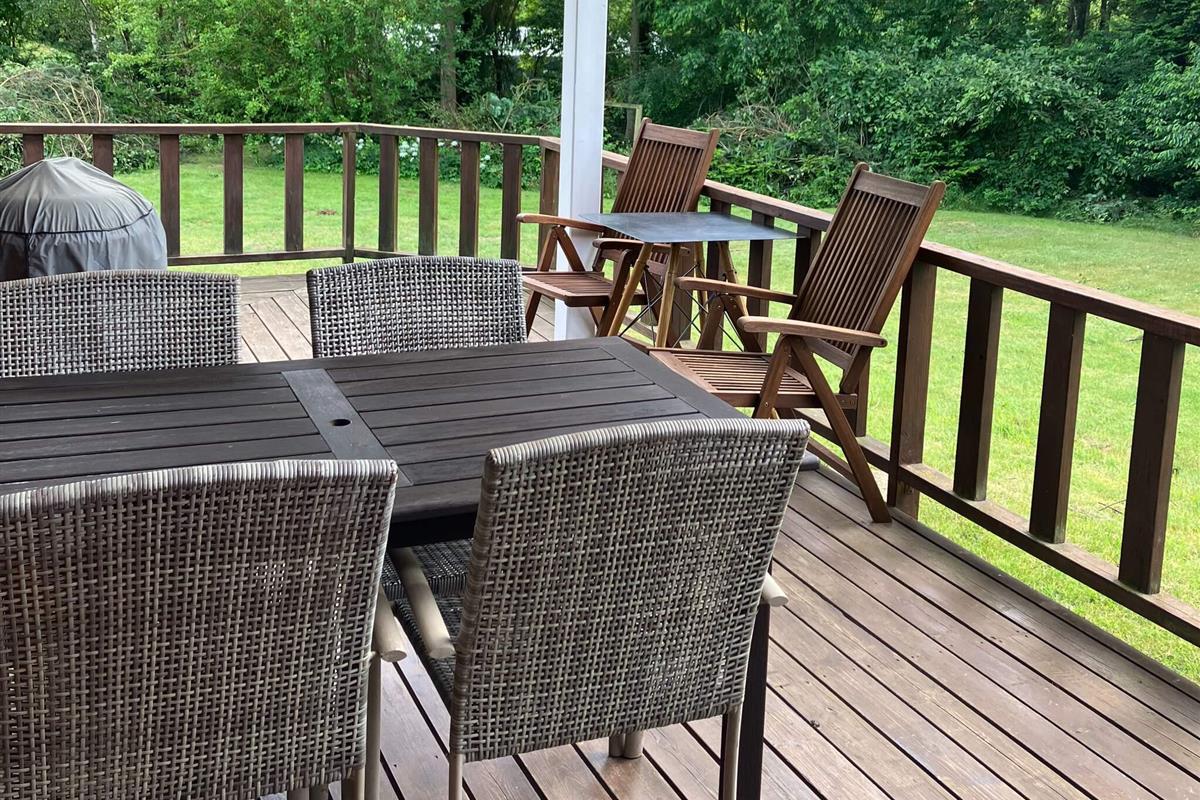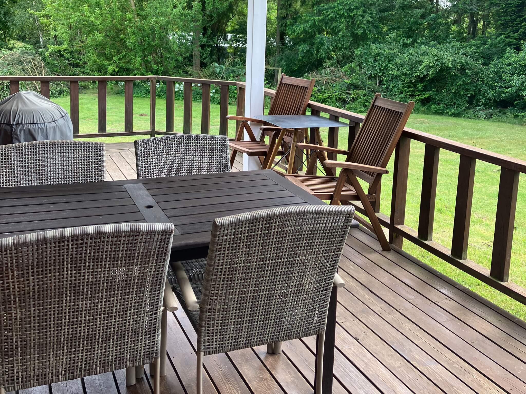 Genießen Sie die Sonne draußen auf der Terrasse entlang des Hauses oder entspannen Sie auf der überdachten Terrasse – ideal für gemütliche Momente bei jedem Wetter. Das Ferienhaus liegt in einer ruhigen Gegend, in kurzer Entfernung zu schöner Natur sowie Einkaufs- und Unterhaltungsmöglichkeiten.