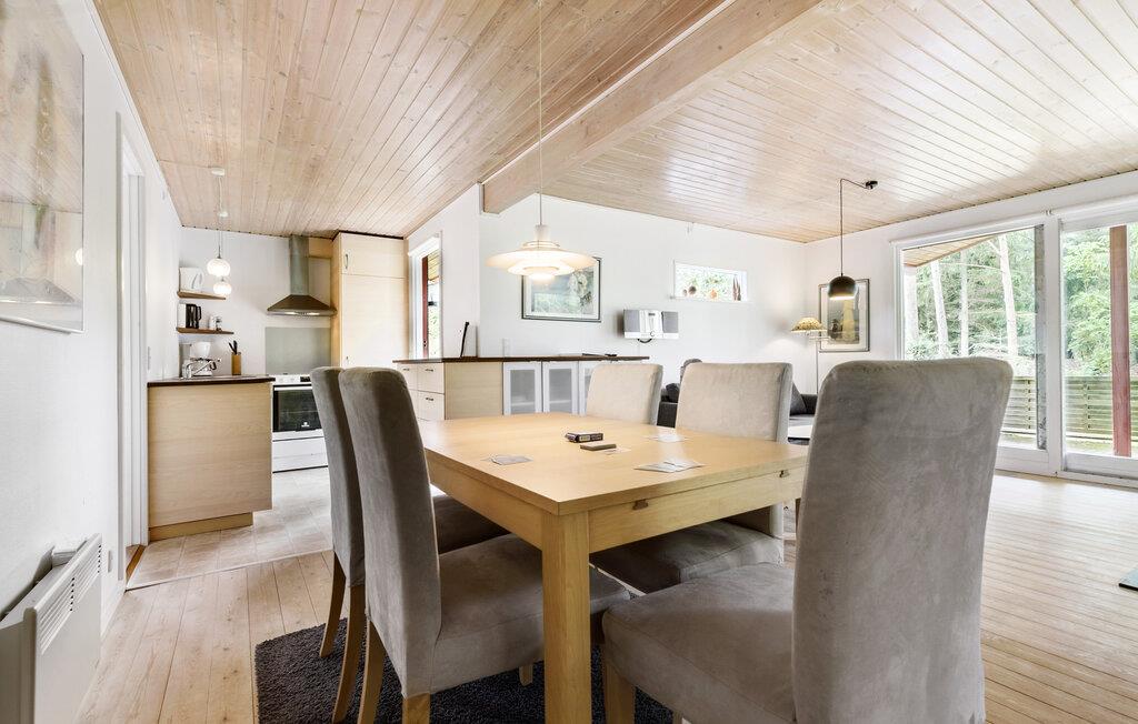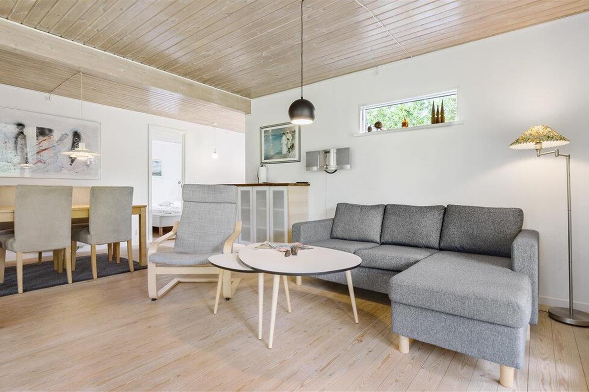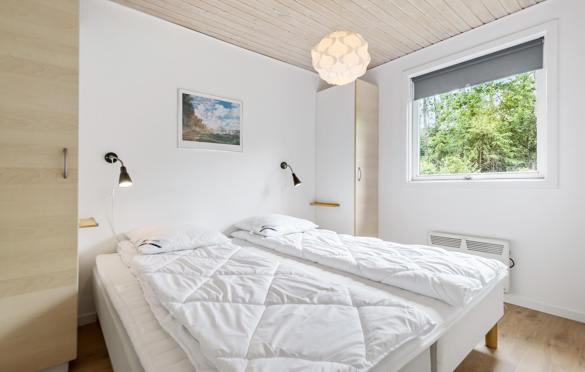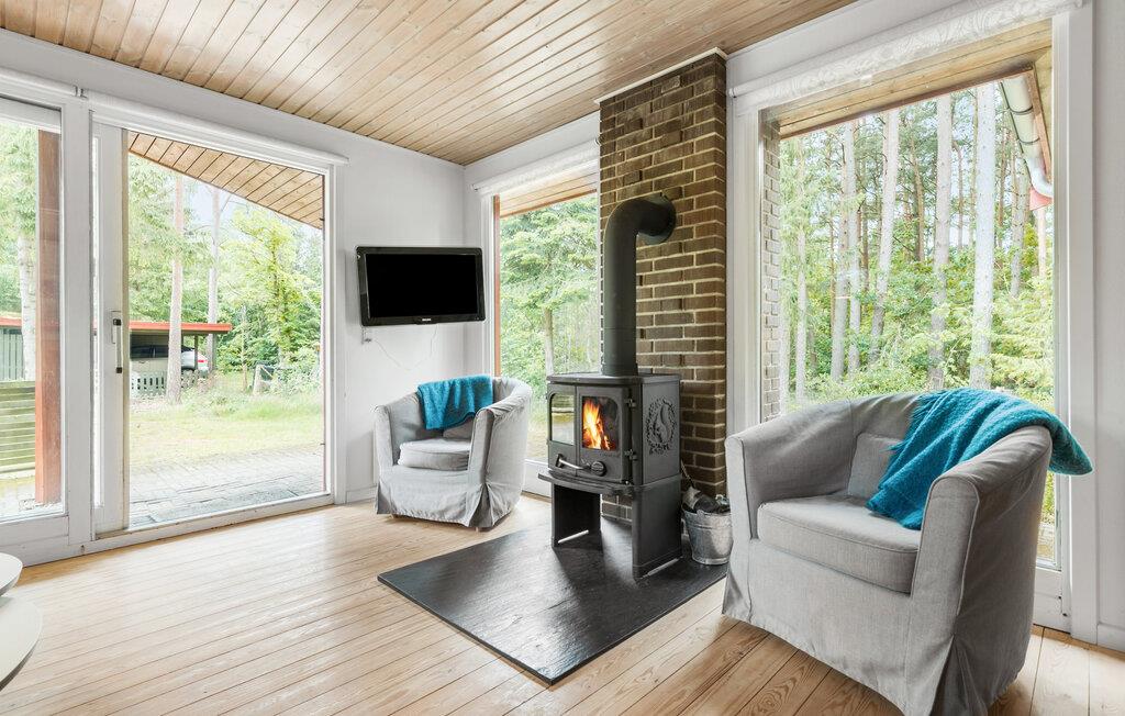 Omringd door de natuurlijke schoonheid van Denemarken, is je charmante vakantiehuis idyllisch gelegen in het midden van een klein bos en biedt jou en je familie een perfect toevluchtsoord. Begin de dag met een ontbijt op het overdekte terras en geniet van de frisse boslucht. De gezellige zithoek nodigt je uit om te ontspannen in de natuur. Profiteer van de ruime woonkamer, die veel natuurlijk licht biedt dankzij de grote ramen. Maak het jezelf gemakkelijk op de gezellige zithoek en geniet van de knusse sfeer, die wordt versterkt door de houtkachel.