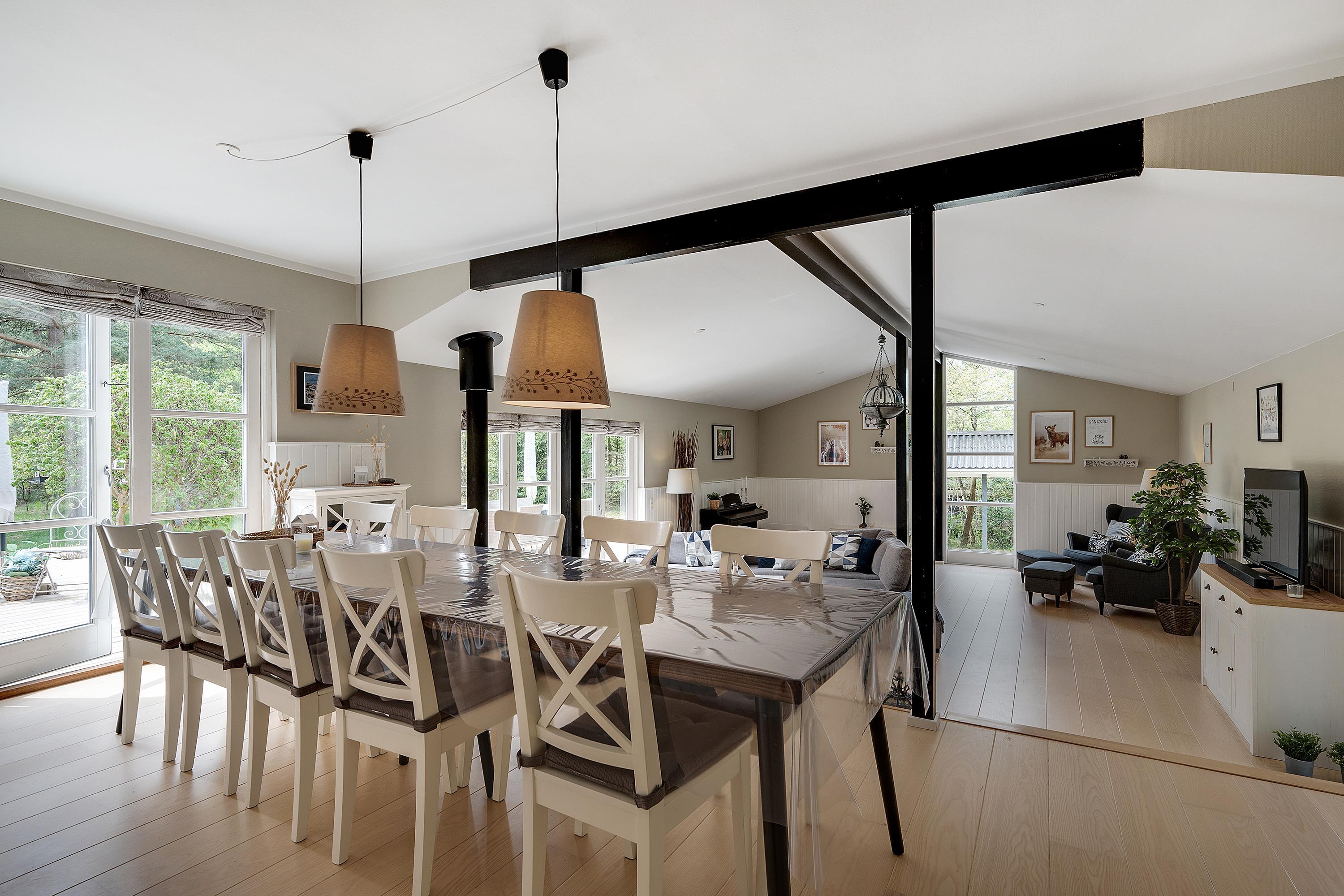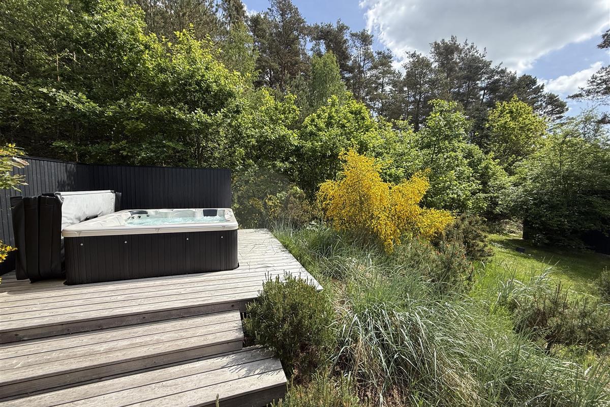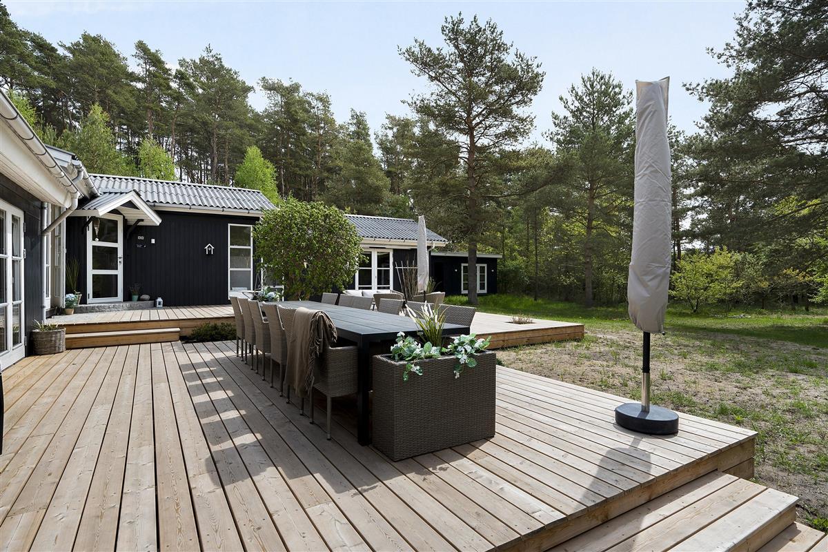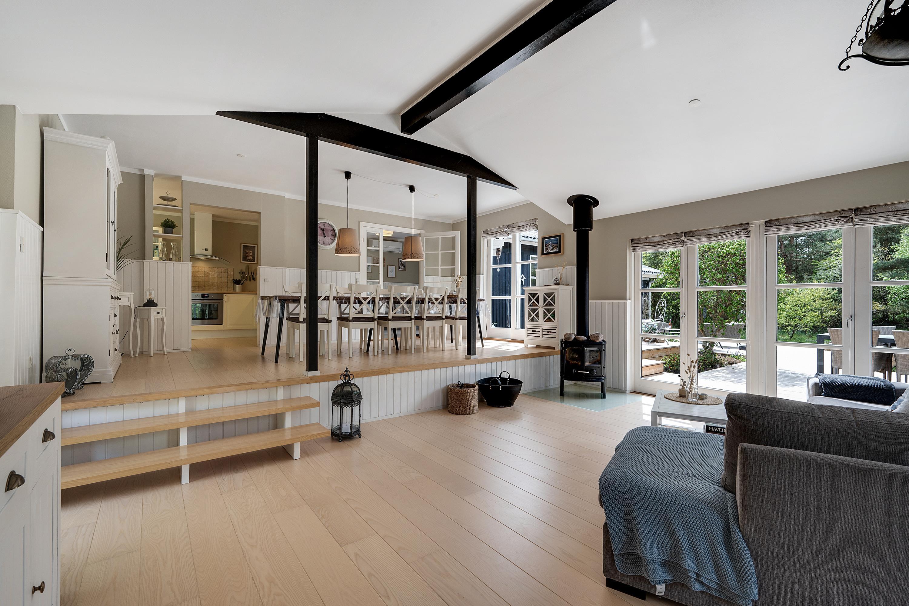 This exclusive holiday home for 10 people, located in the scenic area of Handrup Bakker, north of Ebeltoft, offers everything the heart desires for a perfect vacation. Not only will you experience a stylish, modern interior exuding romance and nostalgia, but also luxurious amenities like a large outdoor hot tub, perfect for the most delightful wellness experiences under the open sky. The spacious, lovely, and brand-new wooden terrace is set in different levels, offering both sun and shade, as well as comfortable garden furniture, a grill, and a parasol. Additionally, there is an outdoor shower, and the property also features a cozy campfire area.