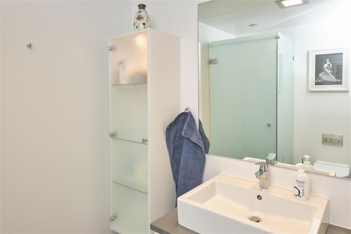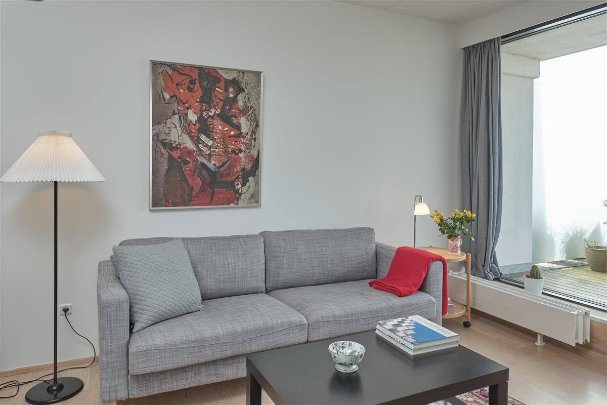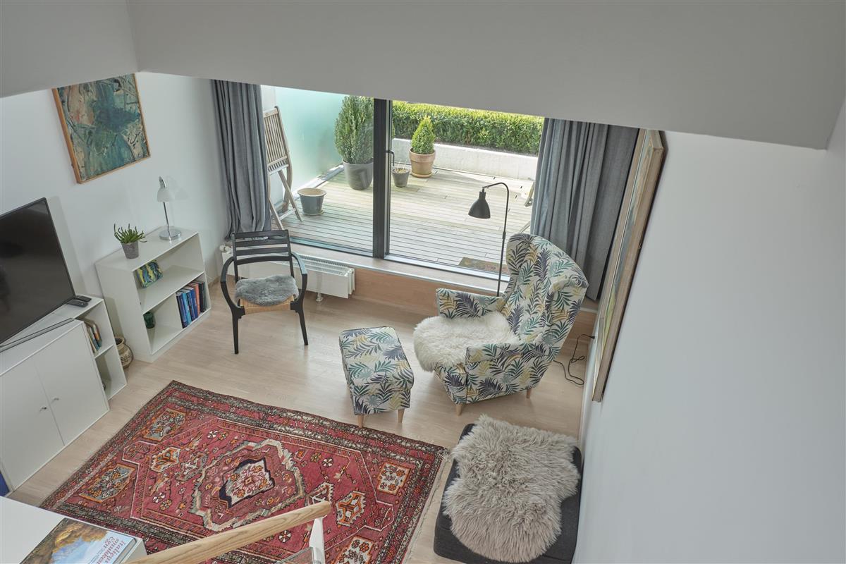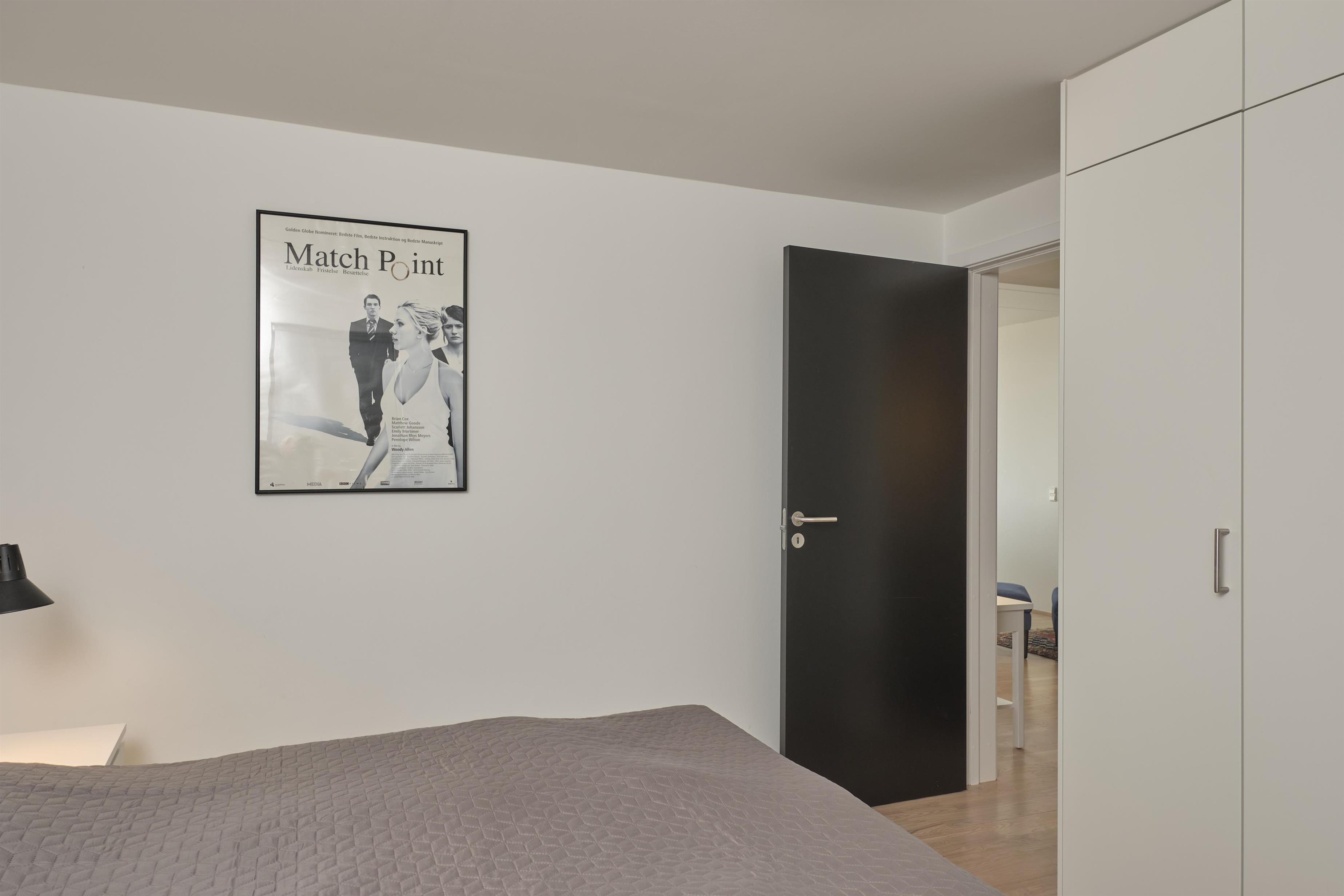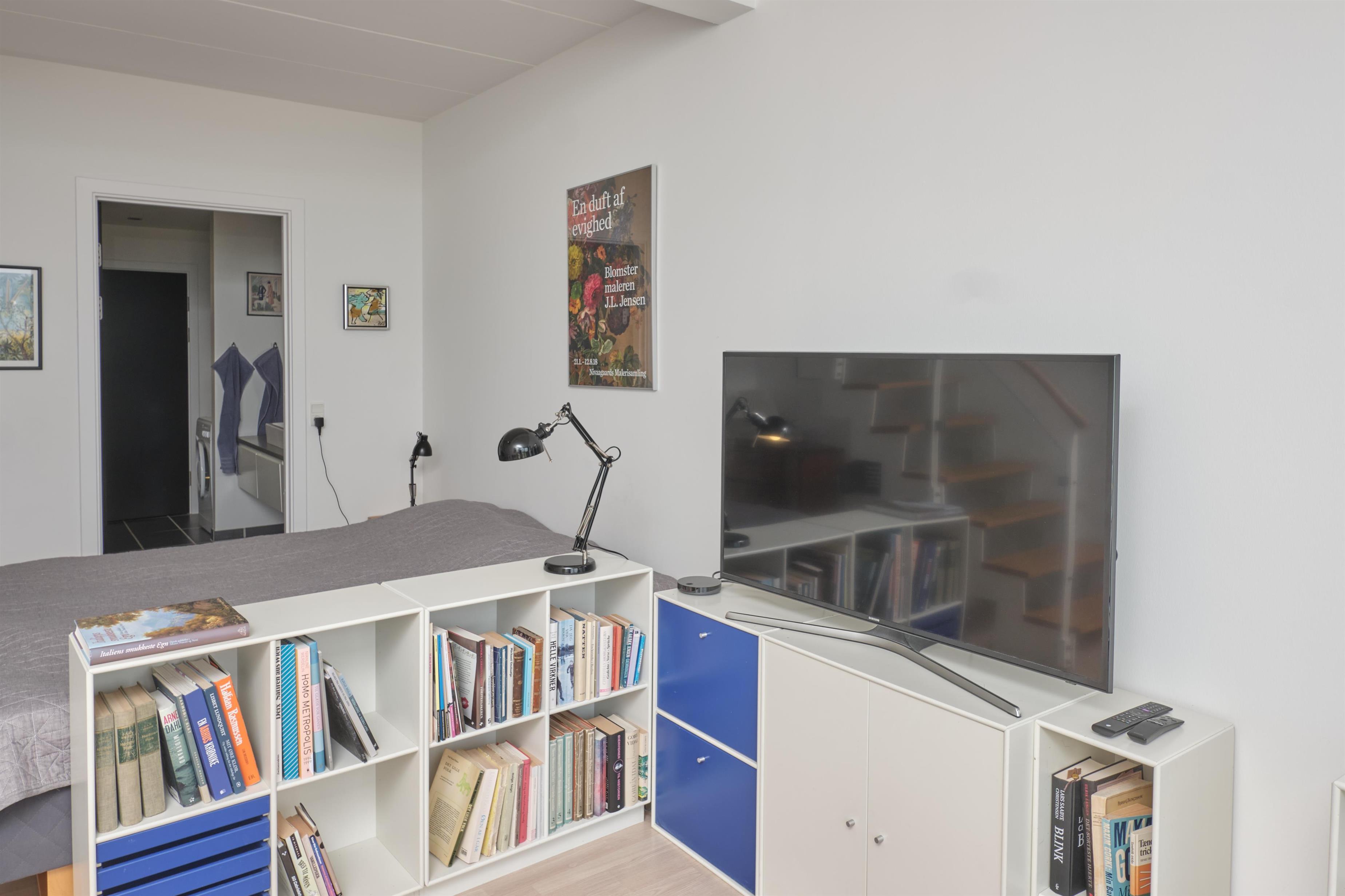 From the entrance, you enter the large, bright, and beautifully furnished living room with panoramic windows and access to the balcony. The living area offers a dining space for 4 people and a comfortable seating area. The fully equipped kitchen, with plenty of workspace, is open to the living room and features ceramic hob, oven, fridge/freezer, and dishwasher. A staircase from the living room leads down to the lower floor, where you will find a cozy lounge and an en-suite bedroom with TV including Danish (TV2) and German channels, plus its own balcony.