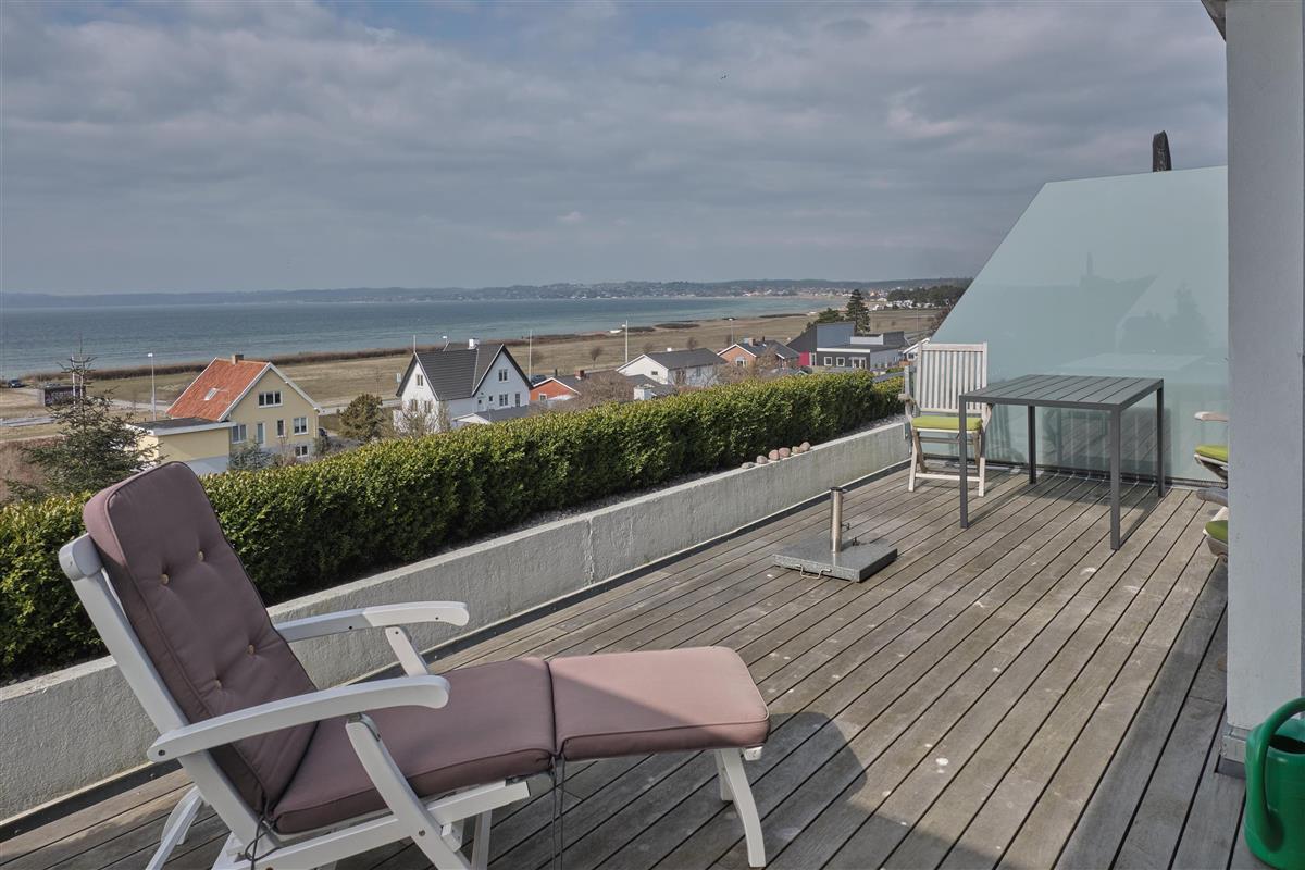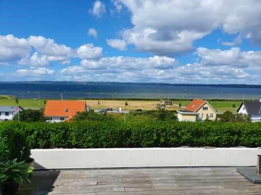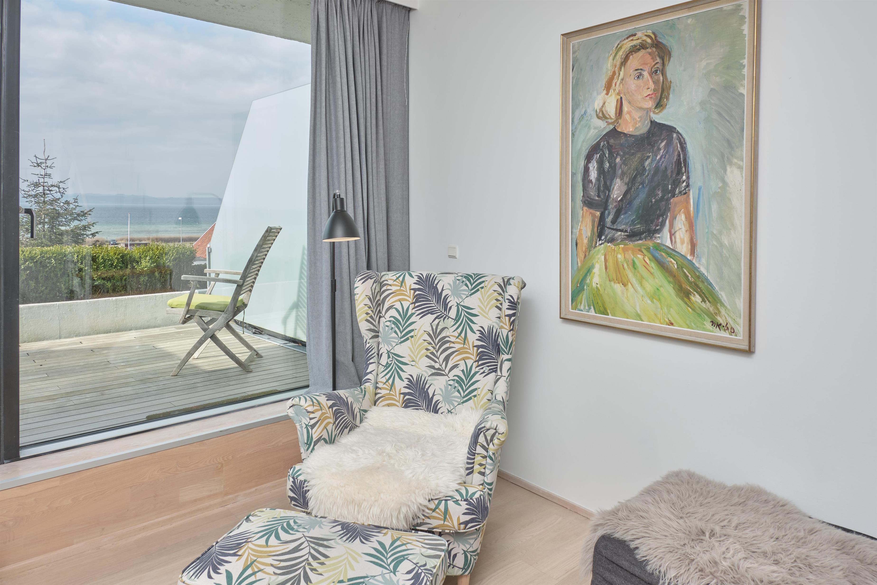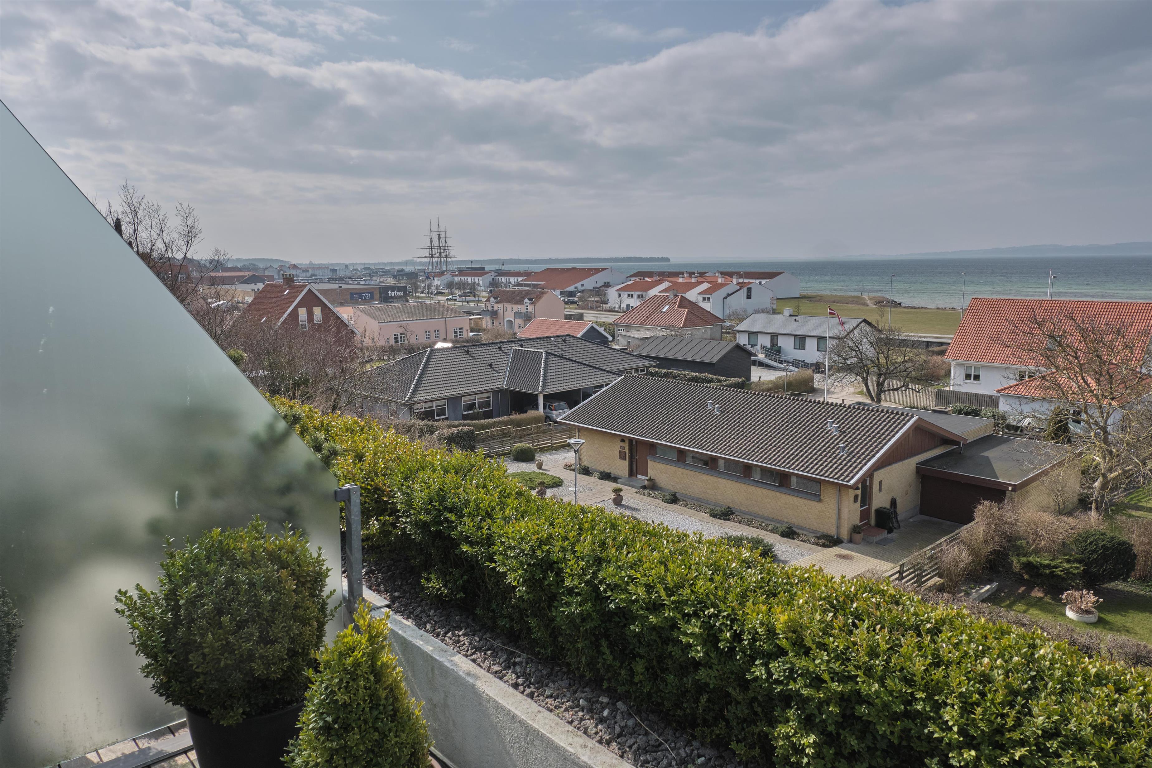Wonderful, spacious two-storey holiday apartment in the historic Hotel Hvide Hus, centrally located with panoramic views over Ebeltoft Cove. You will be staying close to a child-friendly beach with a bathing jetty and just a two-minute walk from Ebeltoft’s town centre. Both floors of the apartment feature a lovely west-facing, partially covered balcony with garden furniture, sun loungers, and parasol. The building has an elevator.