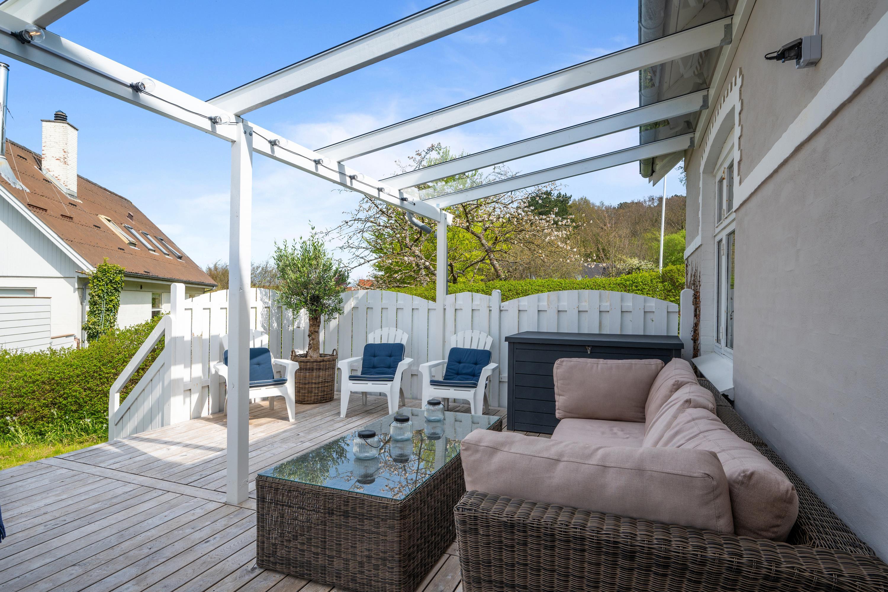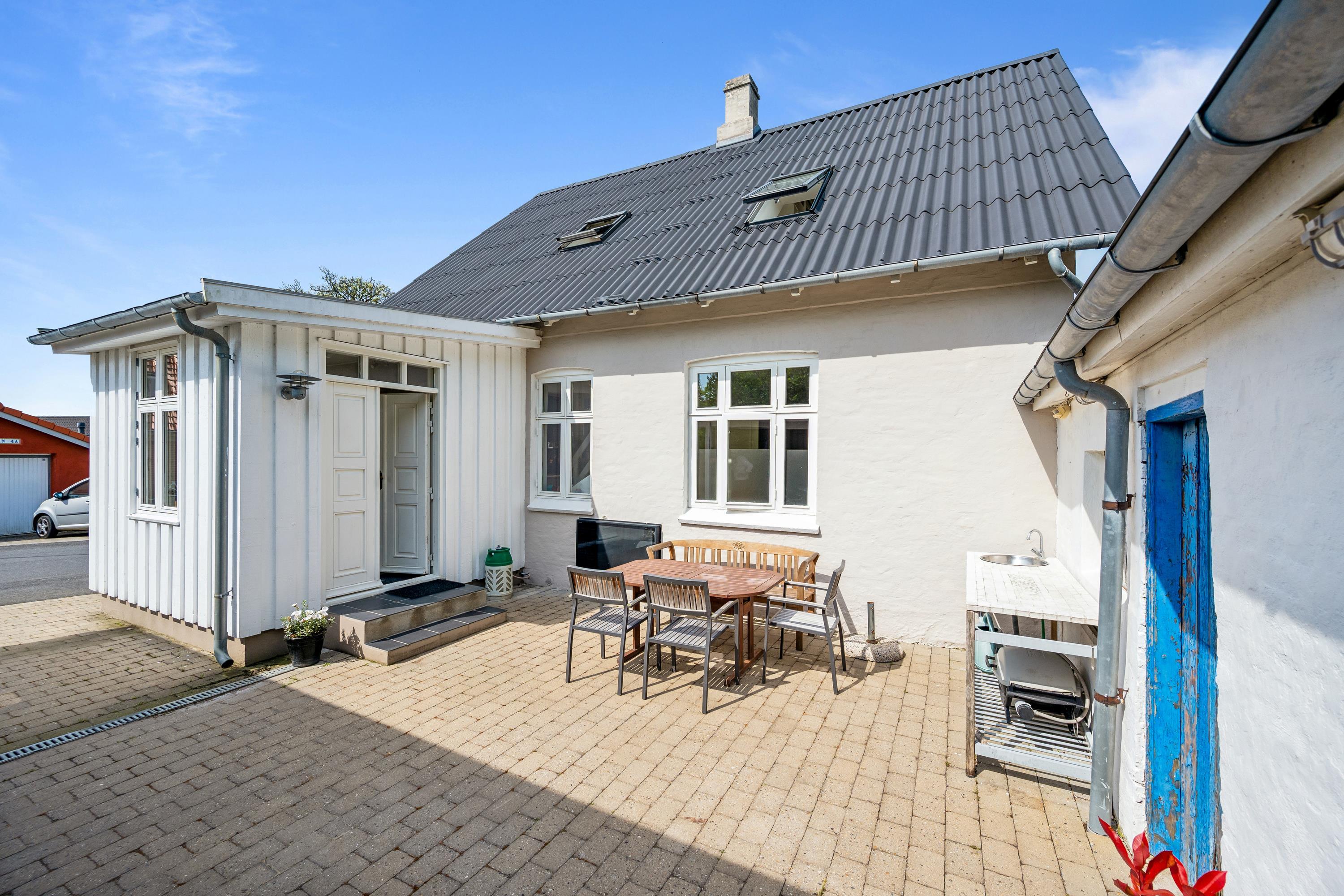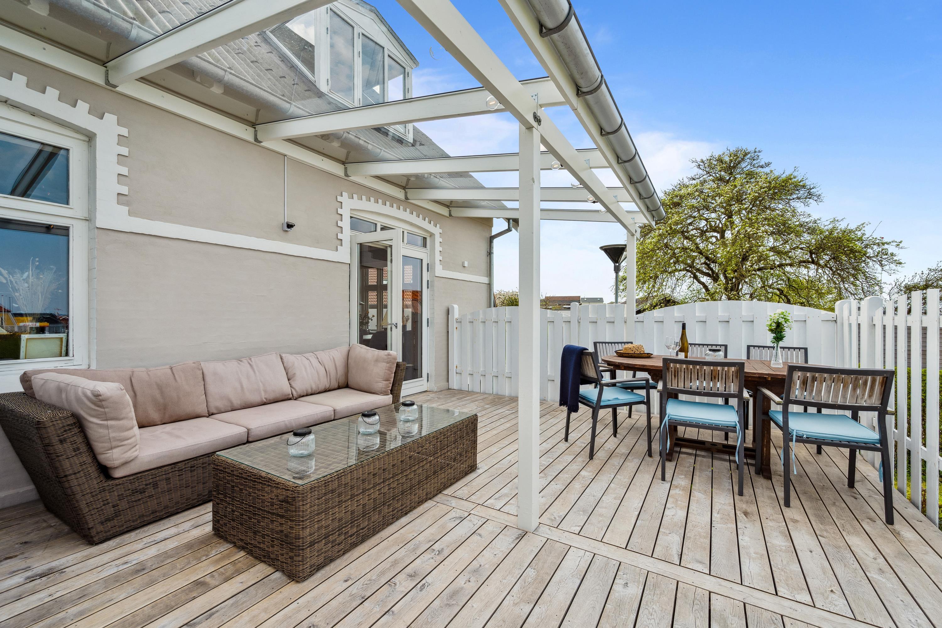Very nice townhouse located close to Ebeltoft Harbor and within walking distance to the town of Ebeltoft. The house features a lovely west-facing terrace with a view of the harbor, equipped with garden furniture, sun loungers, and a grill. Additionally, there is a charming east-facing courtyard and a carport with space for 2 cars.
