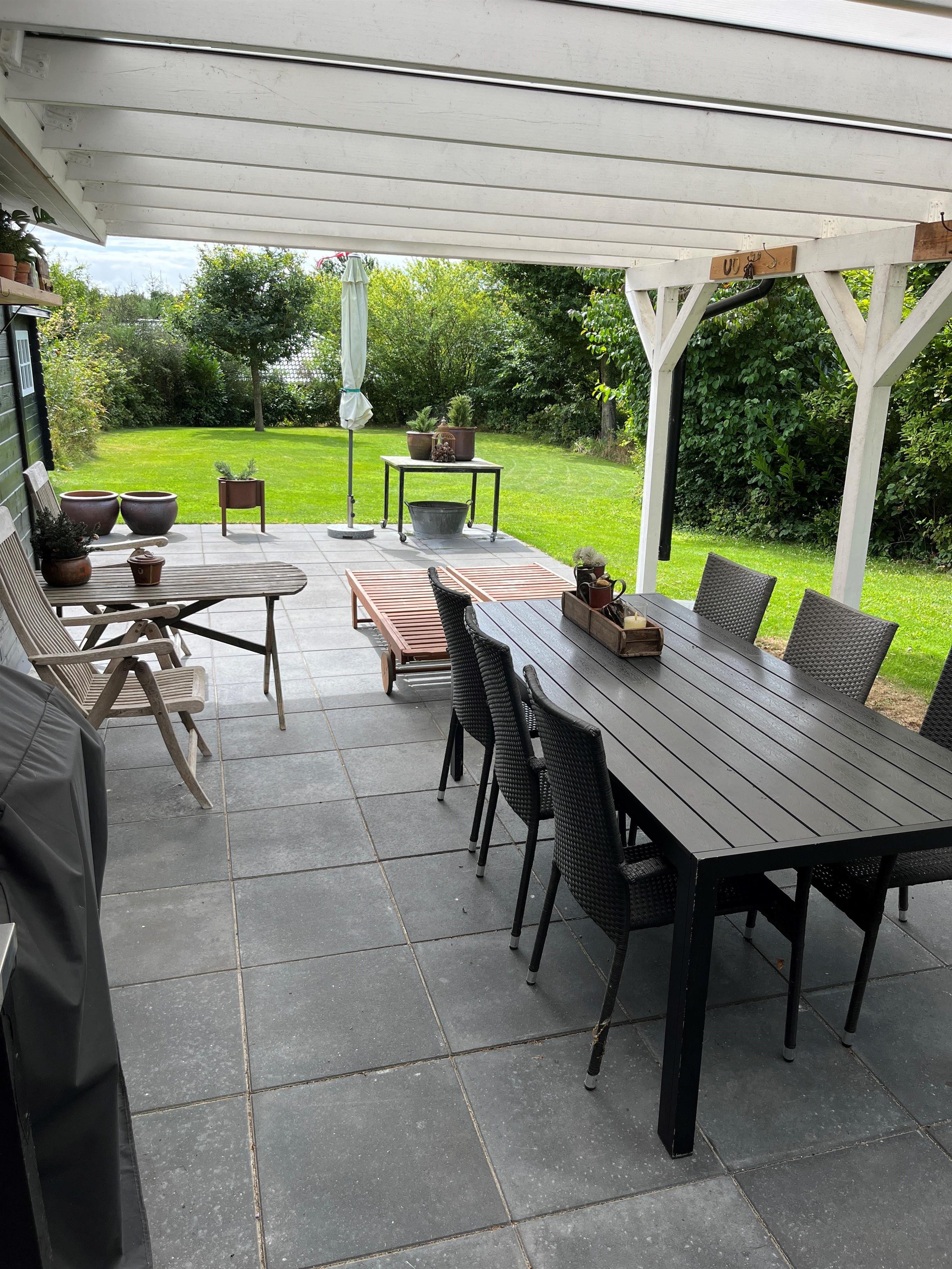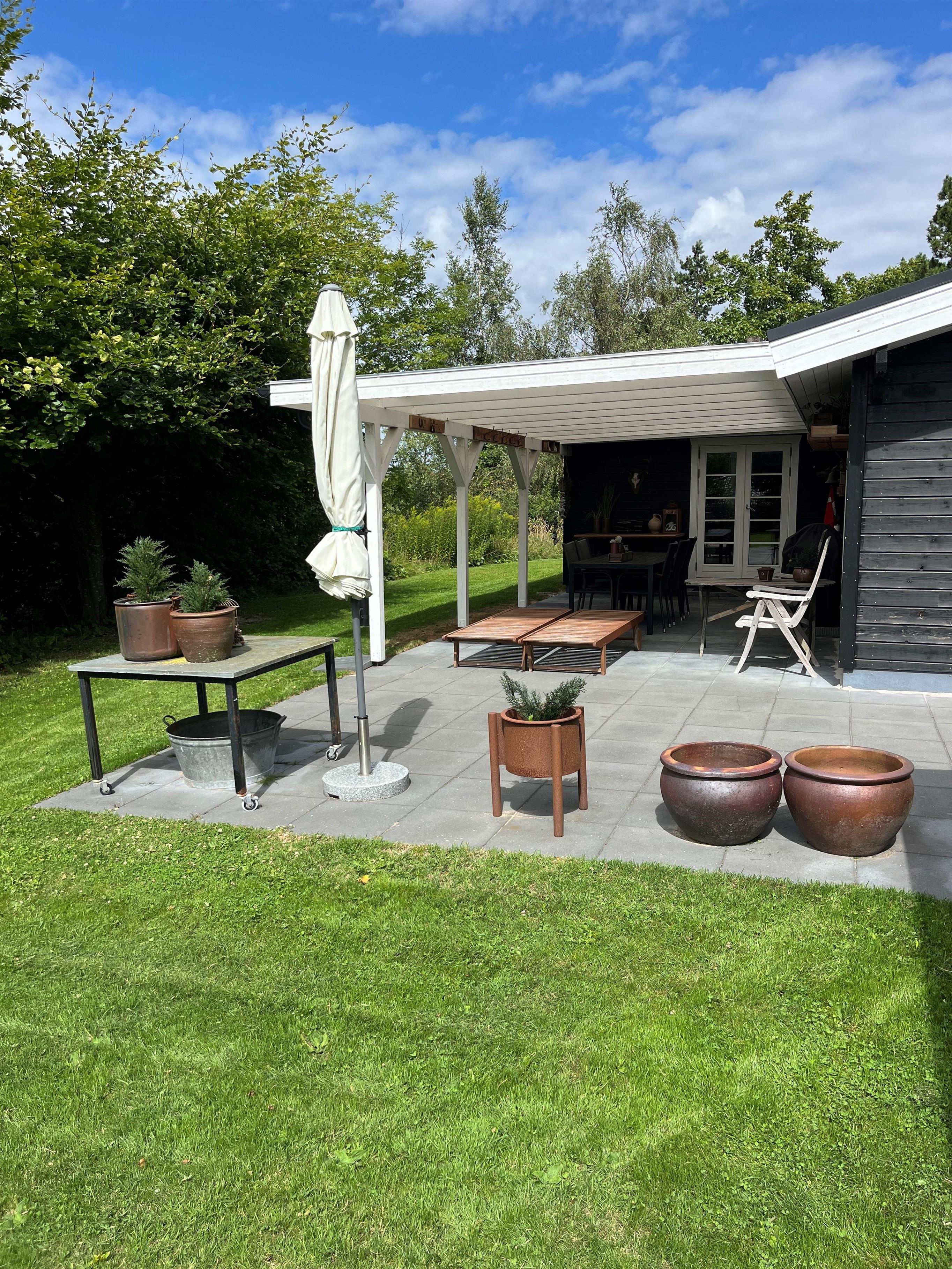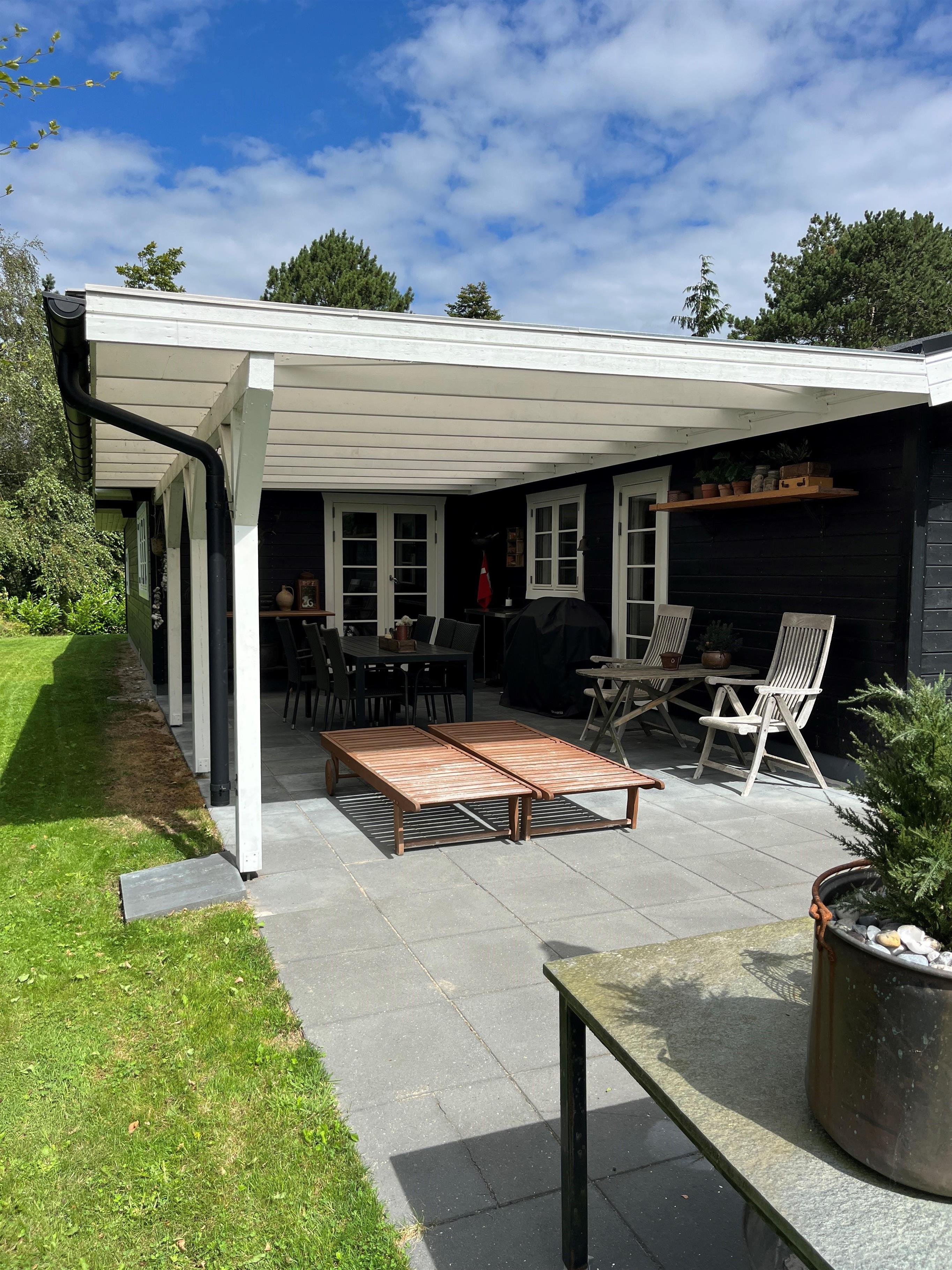 The house appears bright, inviting, and very well-appointed. The beautifully furnished living room with cathedral ceilings and exposed ceiling beams has access to the terrace and is semi-open to the kitchen. There is dining space for 6 people and a lovely sofa area with a flat-screen TV with Danish (including TV2) and German channels. New, delightful kitchen with ceramic hobs, oven, fridge/freezer, dishwasher, and microwave. The house has 3 cozy bedrooms with double beds, providing a total of 6 sleeping places. Tiled bathroom with shower and underfloor heating, as well as a guest toilet. In the spacious entrance hall, there is also a combined washer/dryer. The house has a heat pump with air conditioning. Internet access is available.