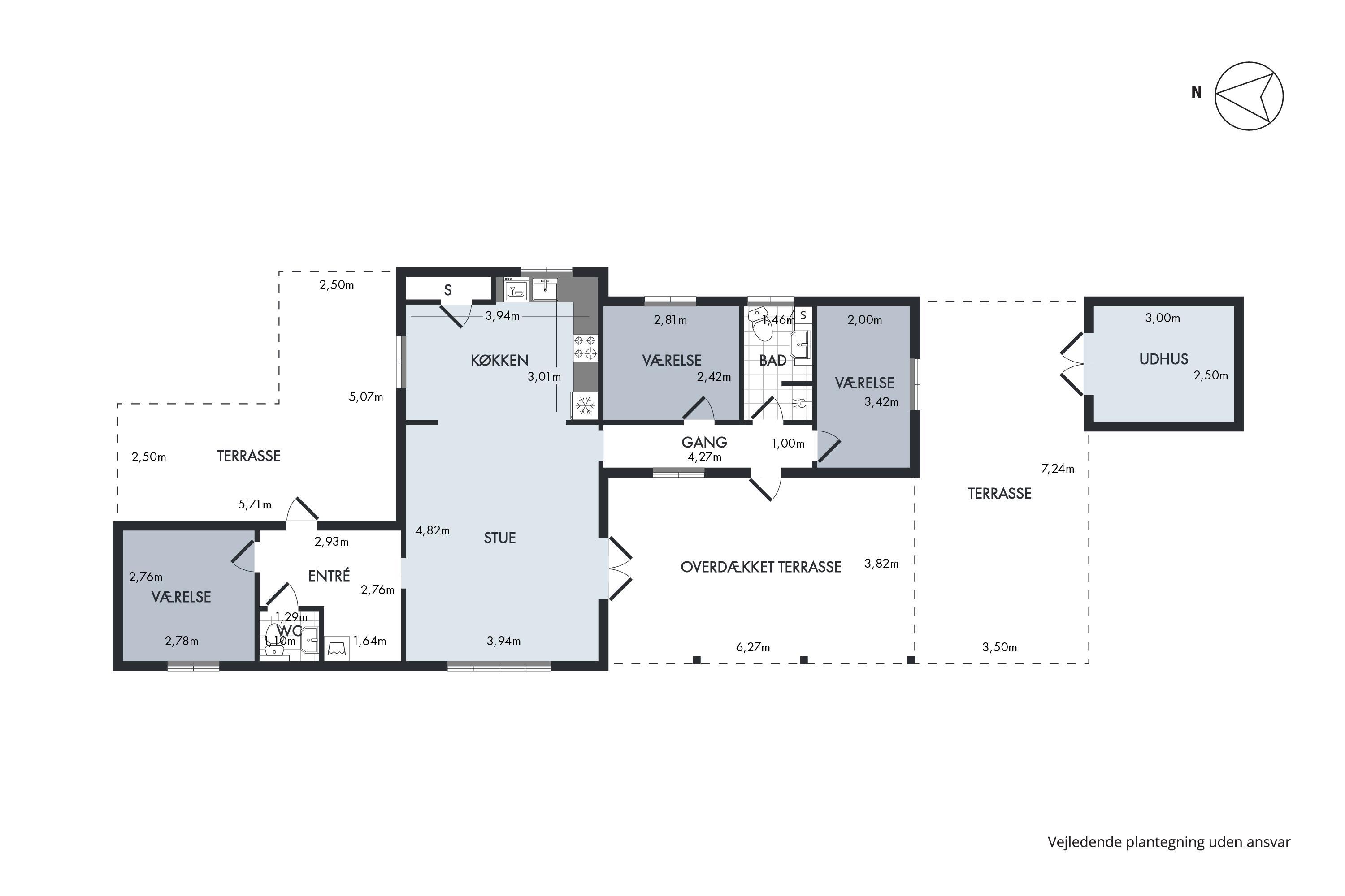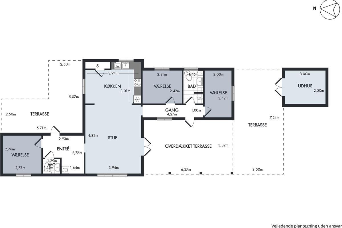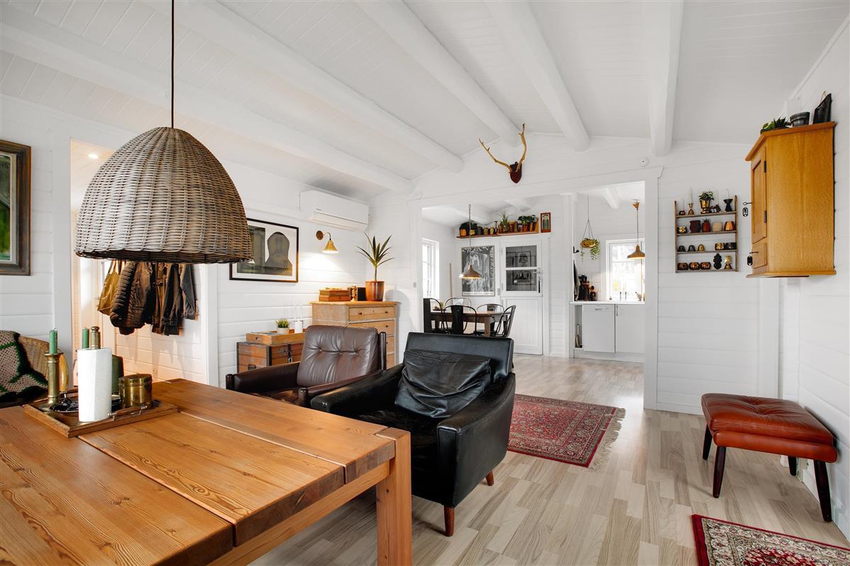 The house appears bright, inviting, and very well-appointed. The beautifully furnished living room with cathedral ceilings and exposed ceiling beams has access to the terrace and is semi-open to the kitchen. There is dining space for 6 people and a lovely sofa area with a flat-screen TV with Danish (including TV2) and German channels. New, delightful kitchen with ceramic hobs, oven, fridge/freezer, dishwasher, and microwave. The house has 3 cozy bedrooms with double beds, providing a total of 6 sleeping places. Tiled bathroom with shower and underfloor heating, as well as a guest toilet. In the spacious entrance hall, there is also a combined washer/dryer. The house has a heat pump with air conditioning. Internet access is available.