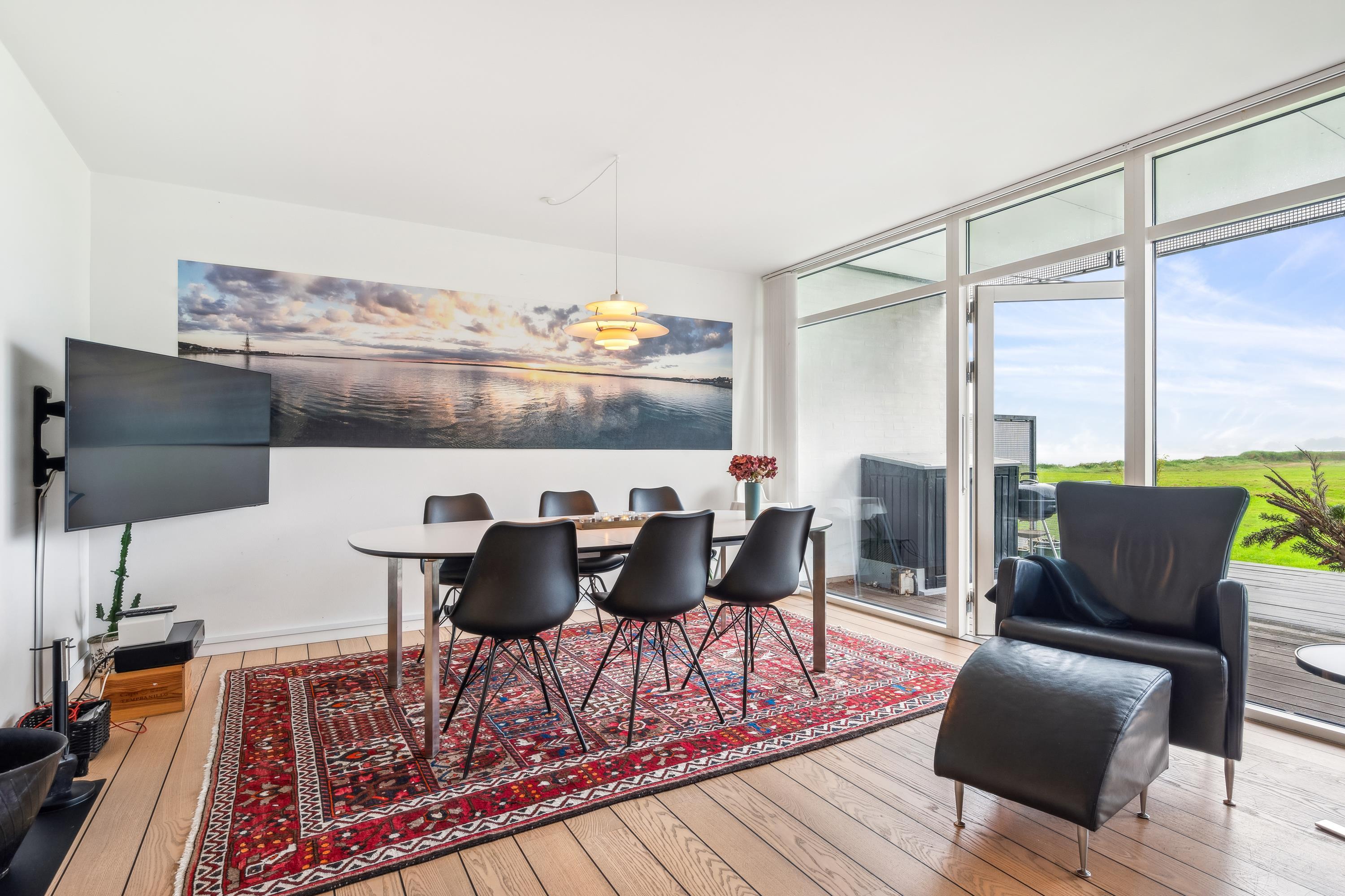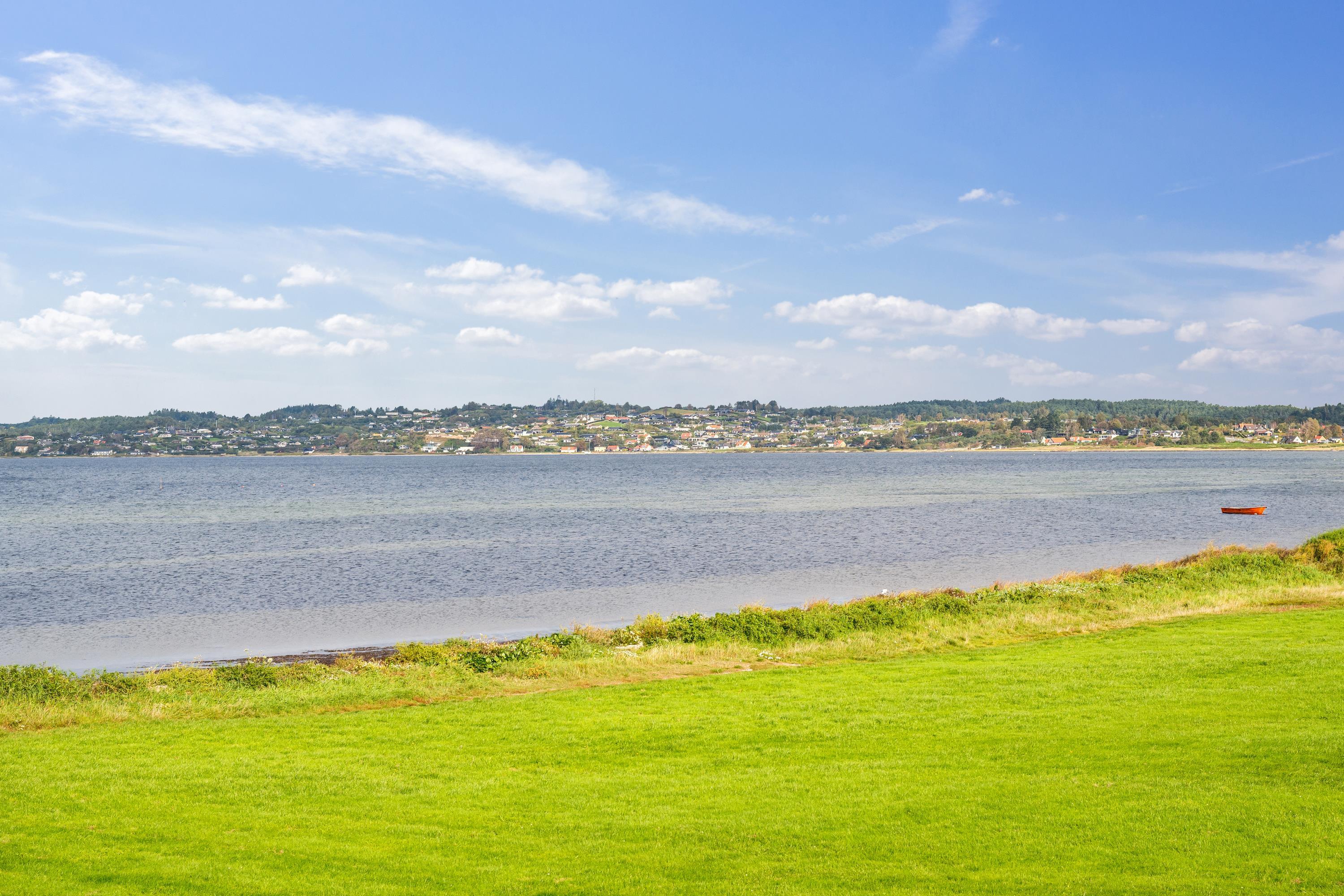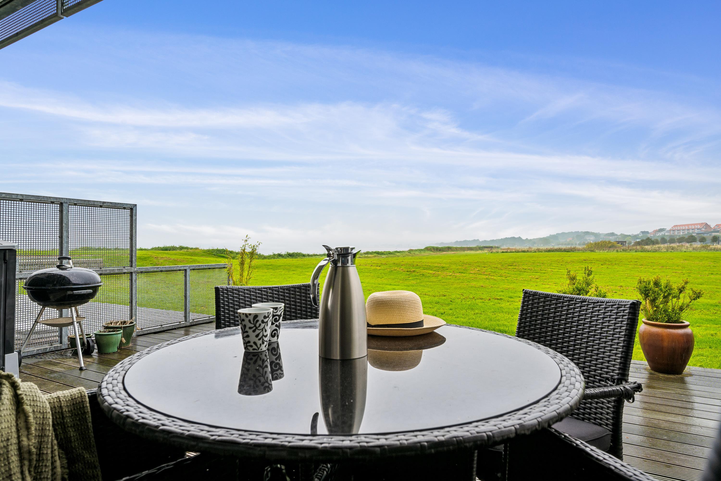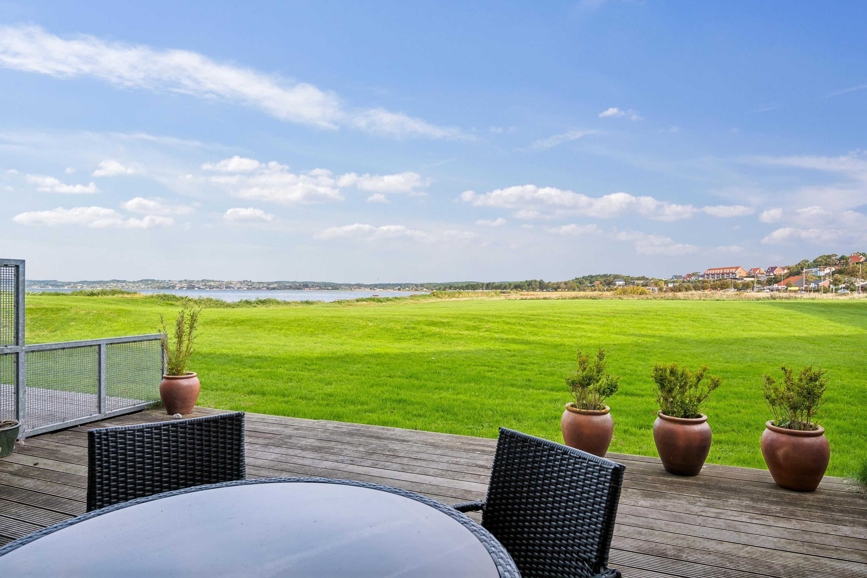Bright and beautiful holiday apartment, cozy and tastefully decorated with quality furniture and a wood-burning stove. From the living room, there is access to a lovely covered terrace with comfortable garden furniture and a grill, offering the most stunning views. Adjacent to the living room is the functional kitchen, which includes a dishwasher. The stylish bathroom features a shower and a spa bath, as well as access to a sauna and a toilet in a separate room. The apartment’s sleeping arrangements are found in two good bedrooms, one with a double bed and the other with a double bed and a single bed. The apartment is located close to the beach, which has a great bathing jetty. A truly beautiful apartment, just a 5-minute walk from the town center. Here, you can explore attractions such as the Old Town Hall and the Malt Factory. In the town's charming cobbled streets, you'll find an array of cozy specialty shops and cafés, and down by the harbor, you can visit the Glass Museum with modern glass art and the frigate Jylland.
