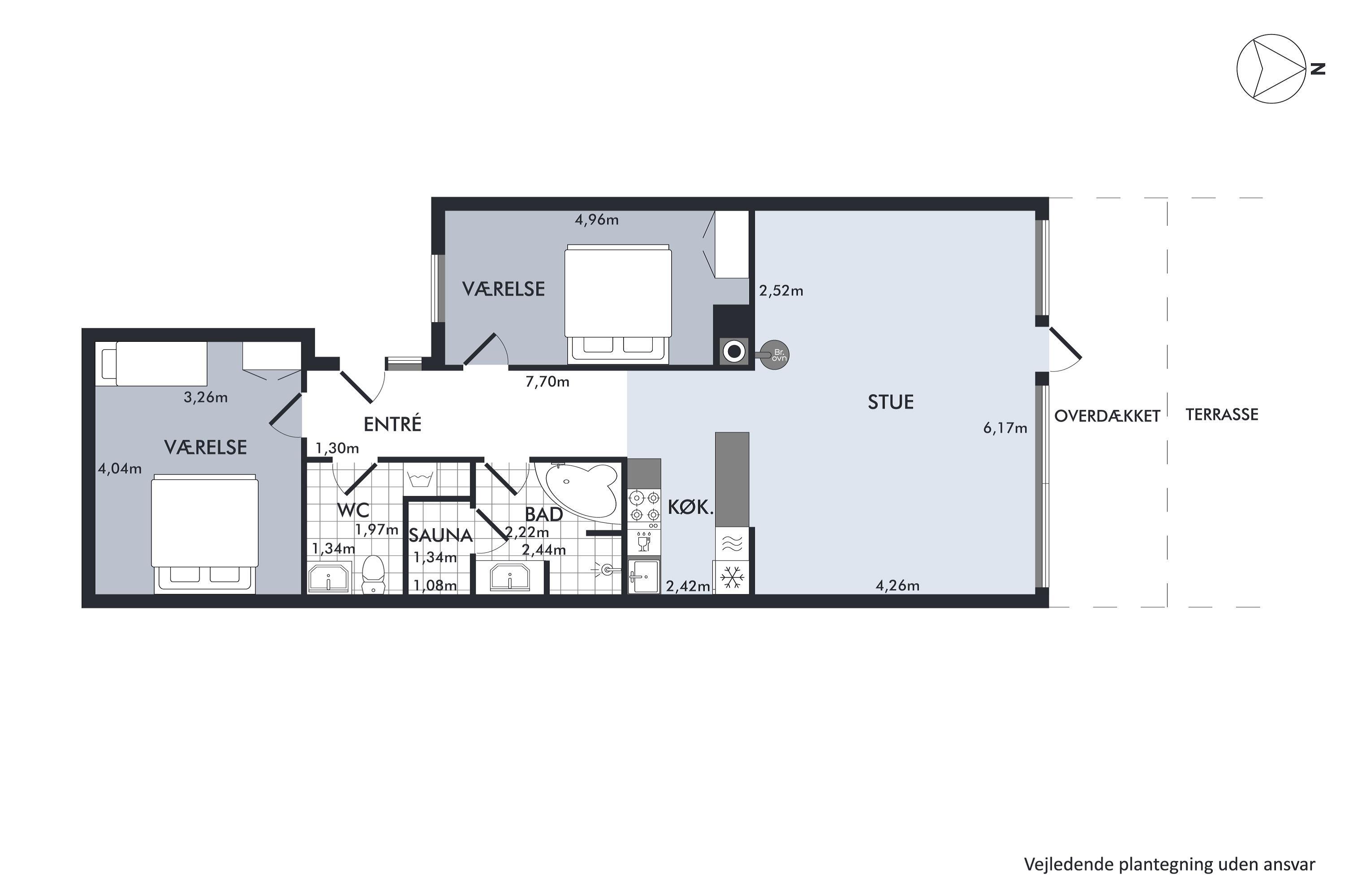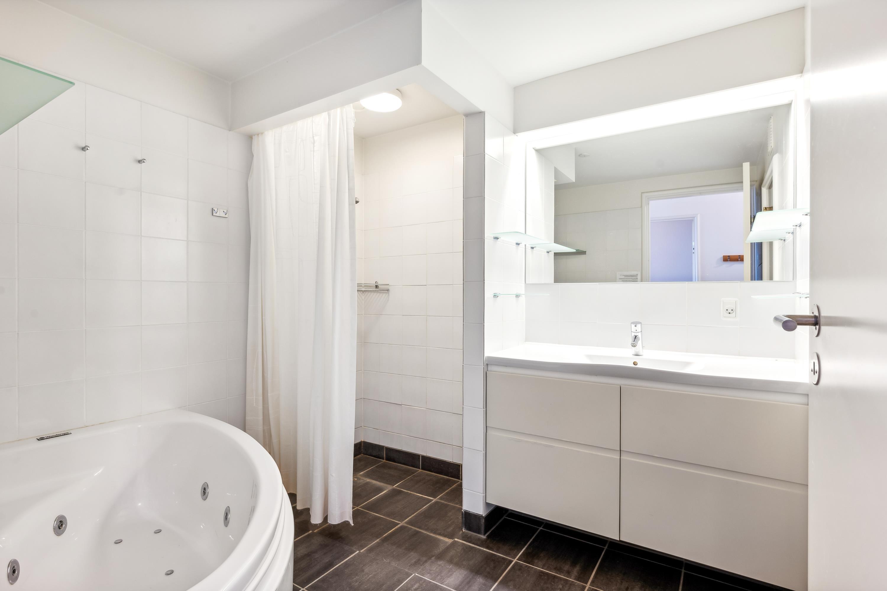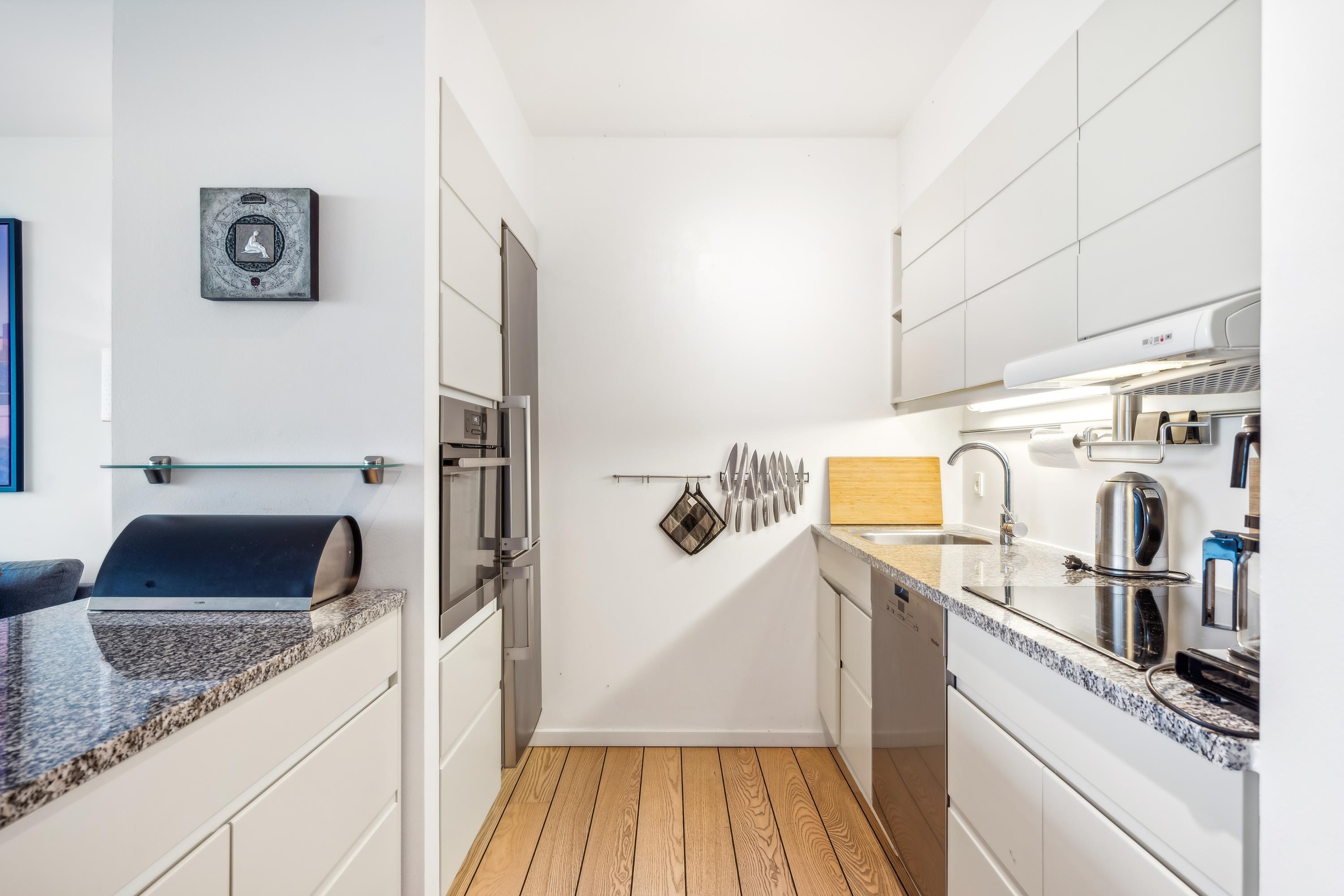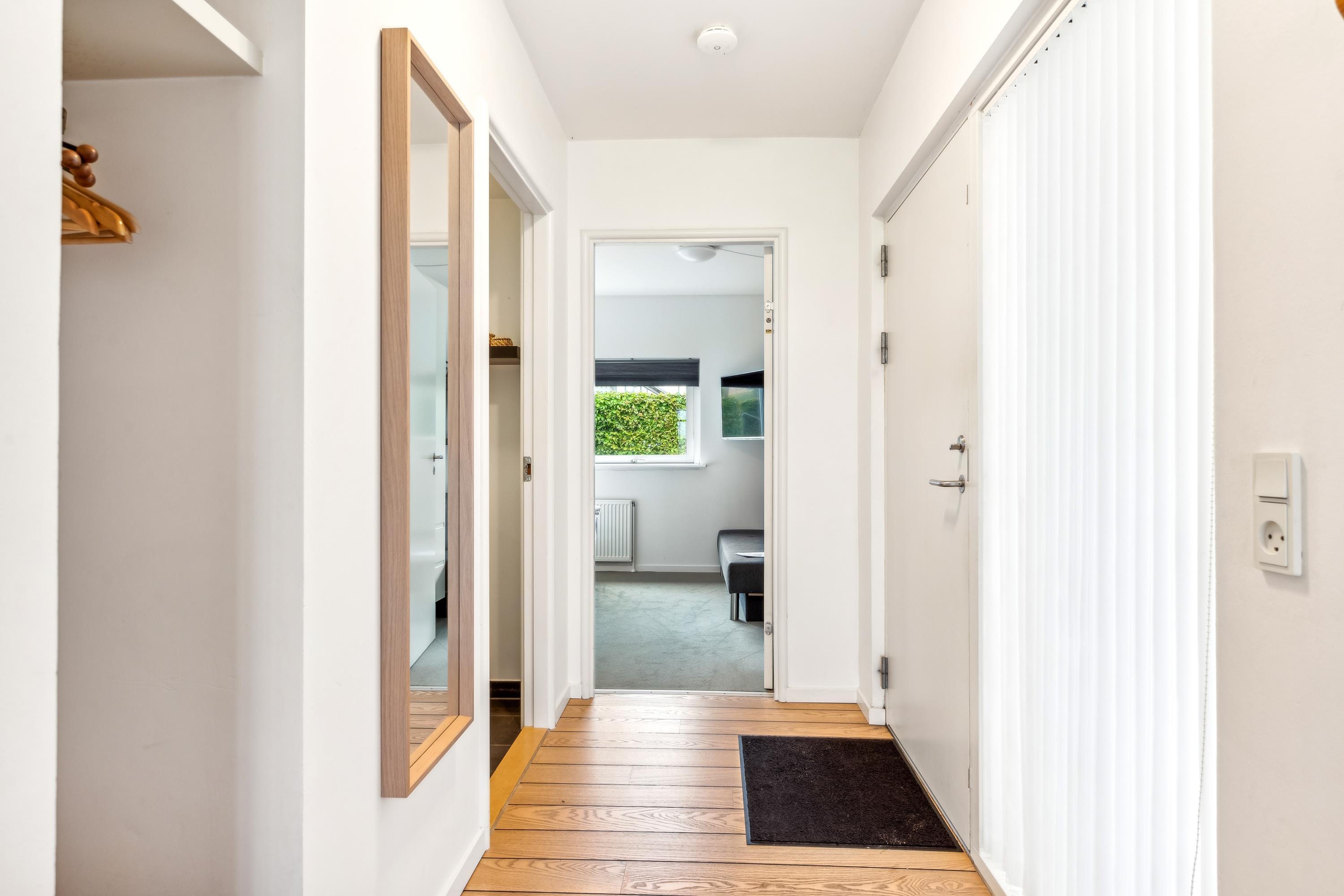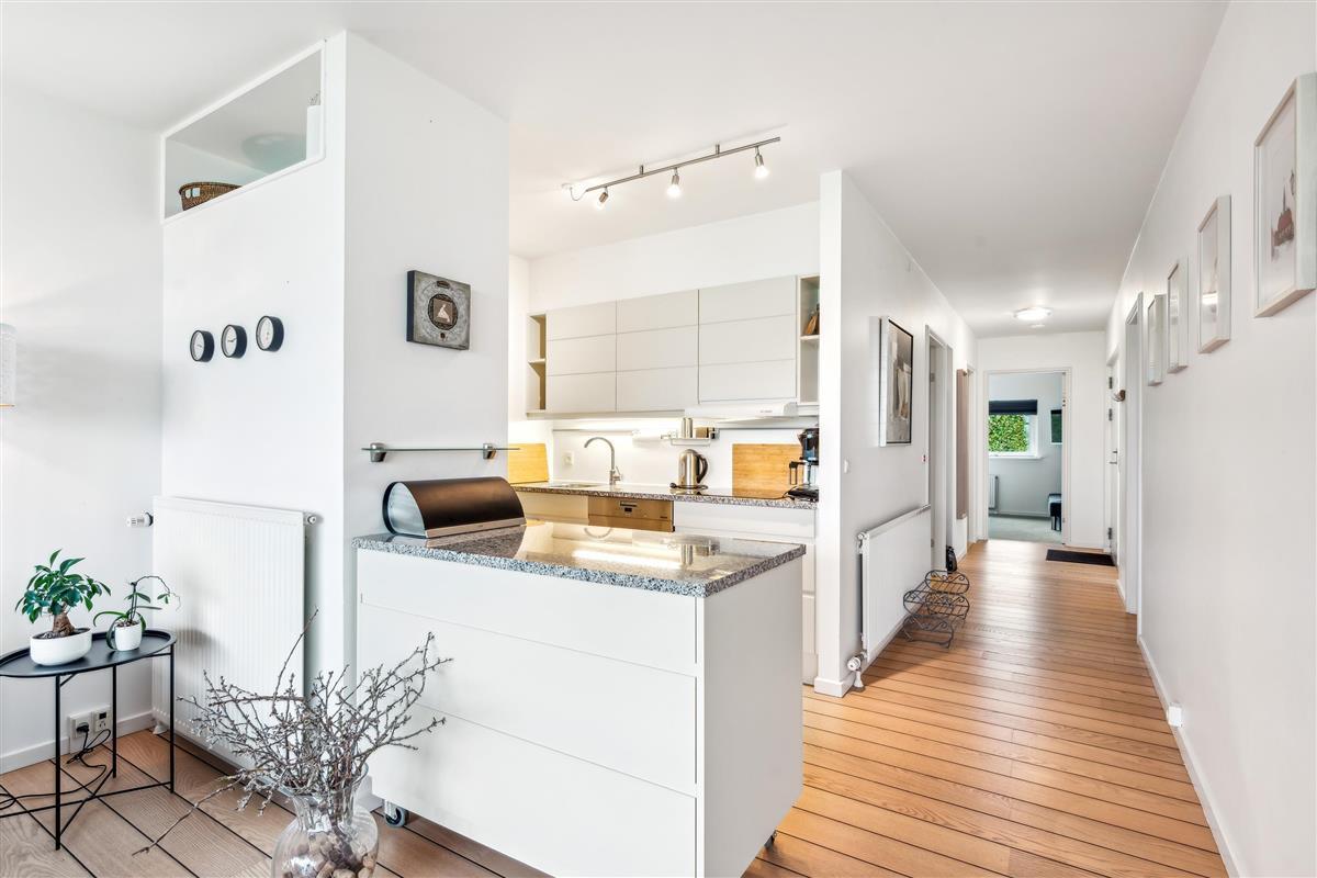 Bright and beautiful holiday apartment, cozy and tastefully decorated with quality furniture and a wood-burning stove. From the living room, there is access to a lovely covered terrace with comfortable garden furniture and a grill, offering the most stunning views. Adjacent to the living room is the functional kitchen, which includes a dishwasher. The stylish bathroom features a shower and a spa bath, as well as access to a sauna and a toilet in a separate room. The apartment’s sleeping arrangements are found in two good bedrooms, one with a double bed and the other with a double bed and a single bed. The apartment is located close to the beach, which has a great bathing jetty. A truly beautiful apartment, just a 5-minute walk from the town center. Here, you can explore attractions such as the Old Town Hall and the Malt Factory. In the town's charming cobbled streets, you'll find an array of cozy specialty shops and cafés, and down by the harbor, you can visit the Glass Museum with modern glass art and the frigate Jylland.