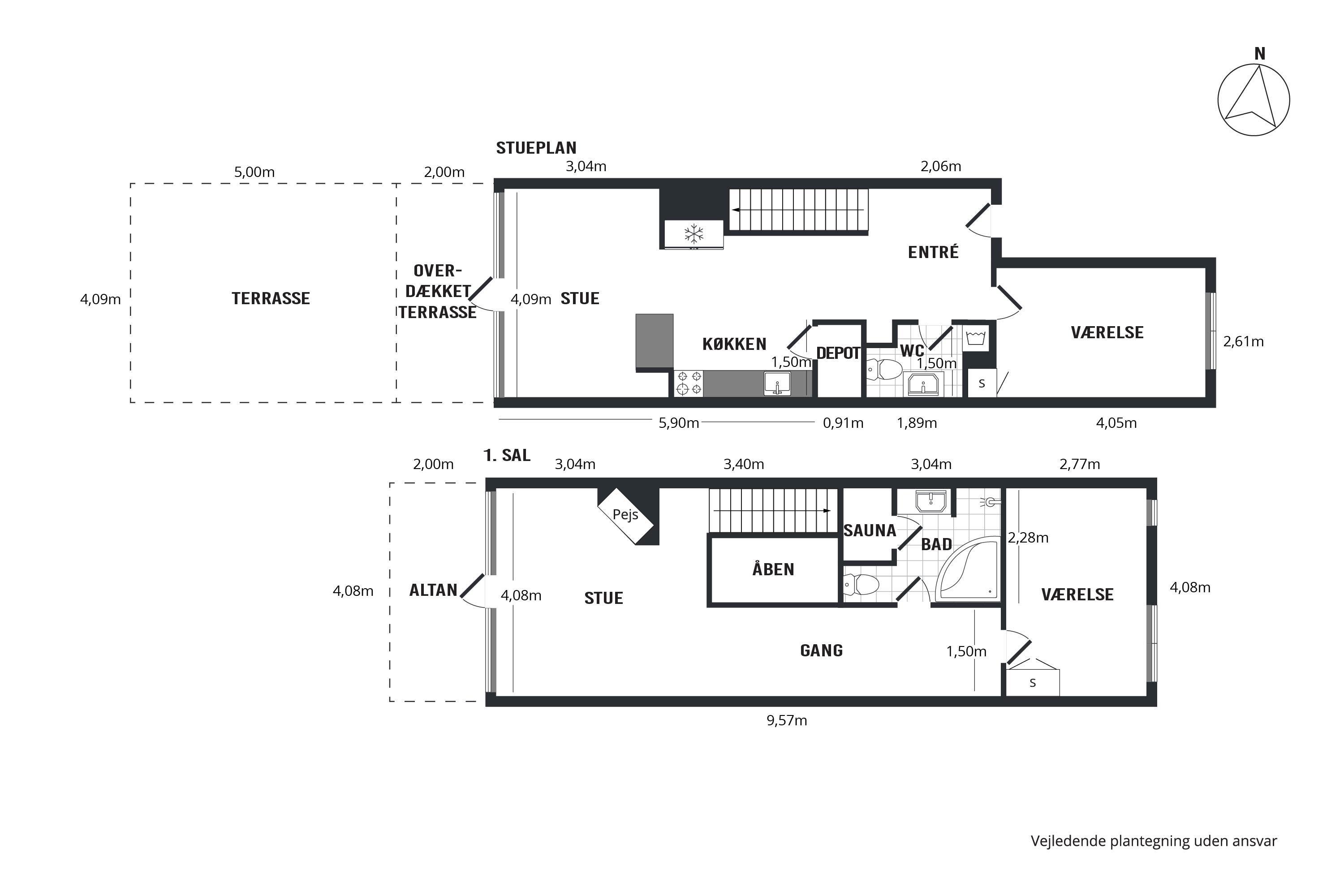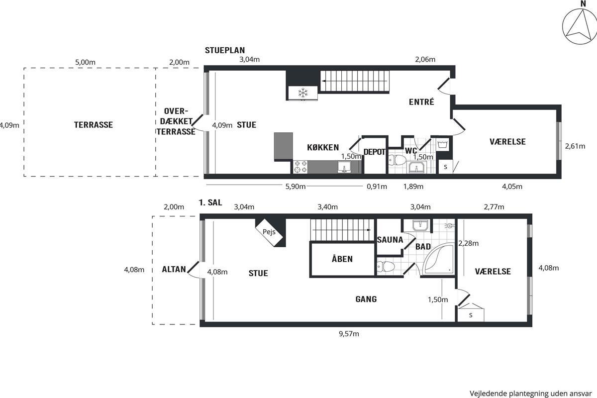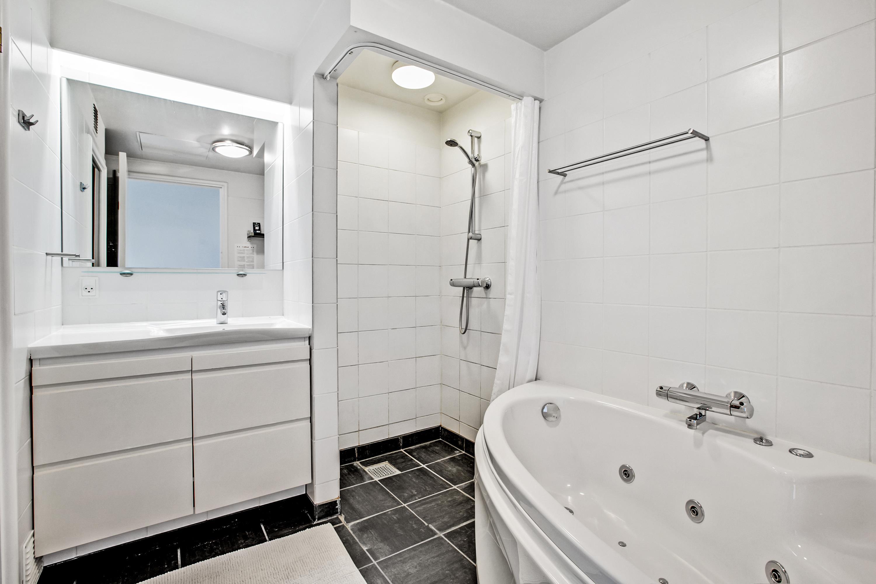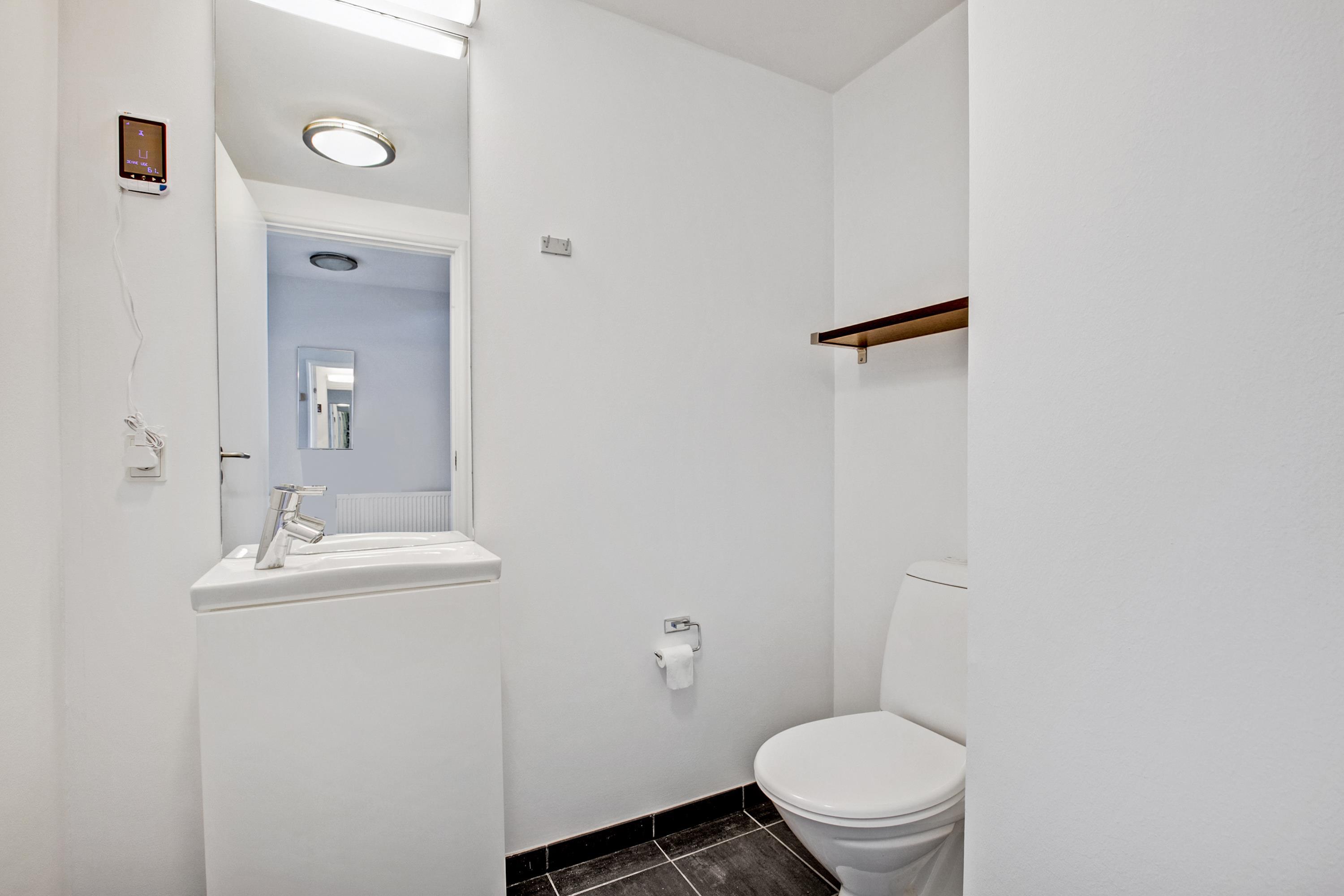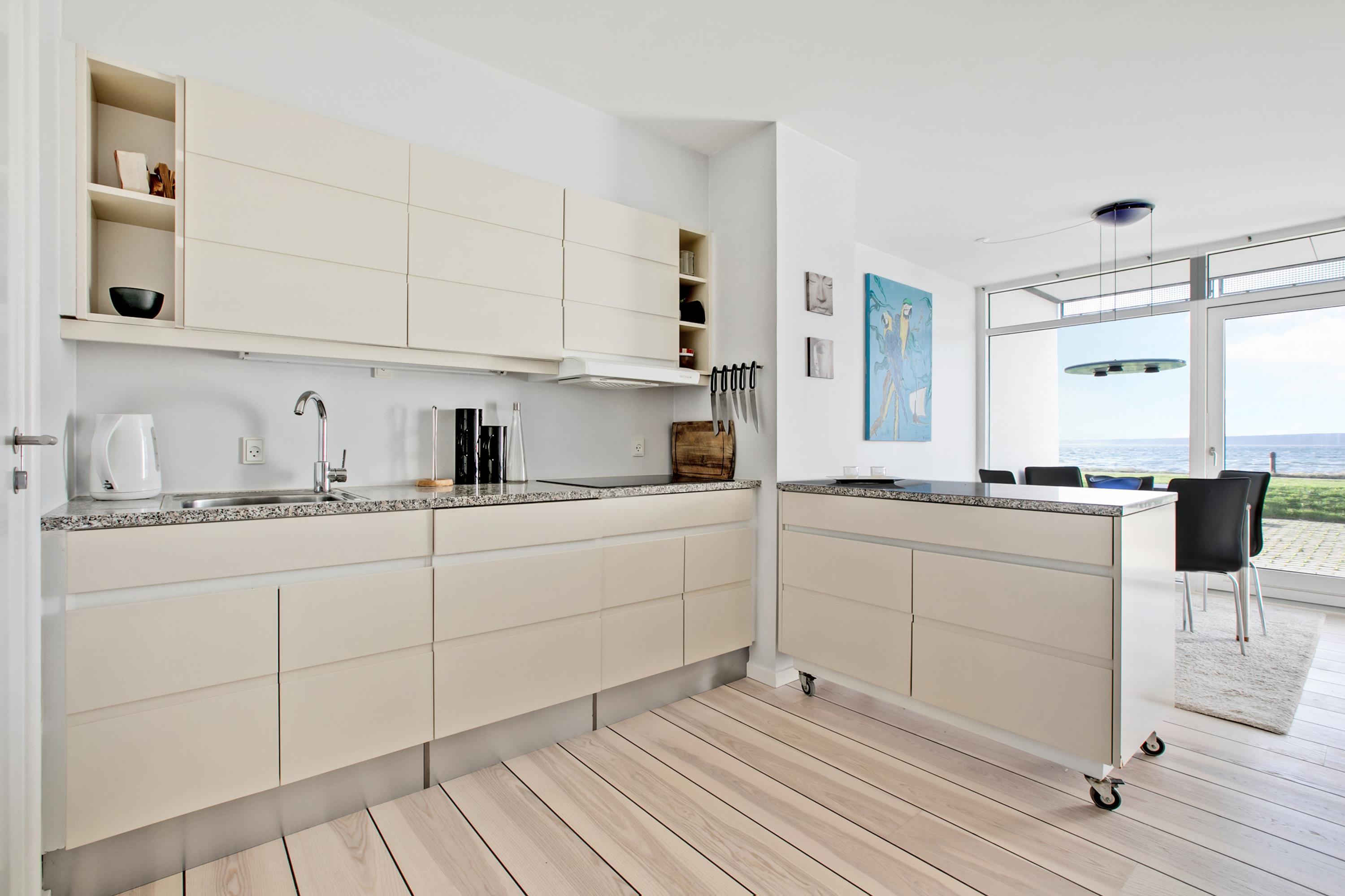 From the entrance, you enter a well-equipped, stylish kitchen in open connection with a bright and well-furnished dining room with a wall-mounted wood-burning stove, seating for 4 people, and access to the terrace. The kitchen has ceramic hobs, a built-in oven, a large fridge/freezer, dishwasher, and microwave. On the first floor, there is a living room with sofa furniture, TV with Danish (including TV2) and German channels, and access to the lovely covered balcony. The 4 sleeping places are distributed between 1 room on the ground floor with 2 wide single beds and 1 bedroom on the first floor with a double bed. The apartment has a bathroom with shower, 1-person spa, and sauna, as well as a guest toilet with a shower as well as washing machine and dryer. Both wet rooms with underfloor heating. There is internet access in the apartment.