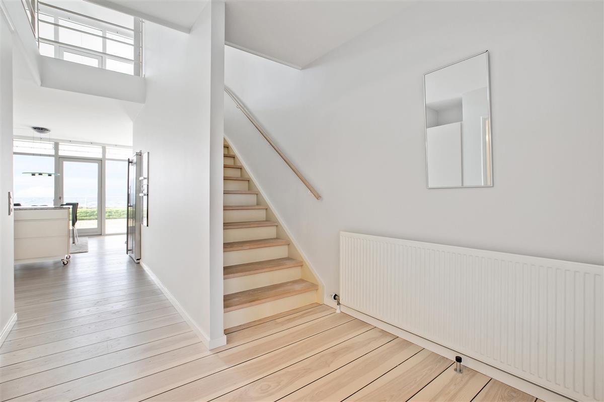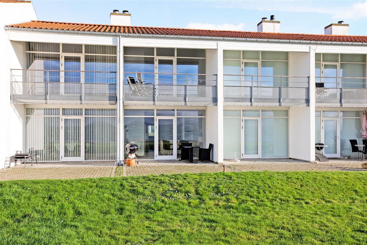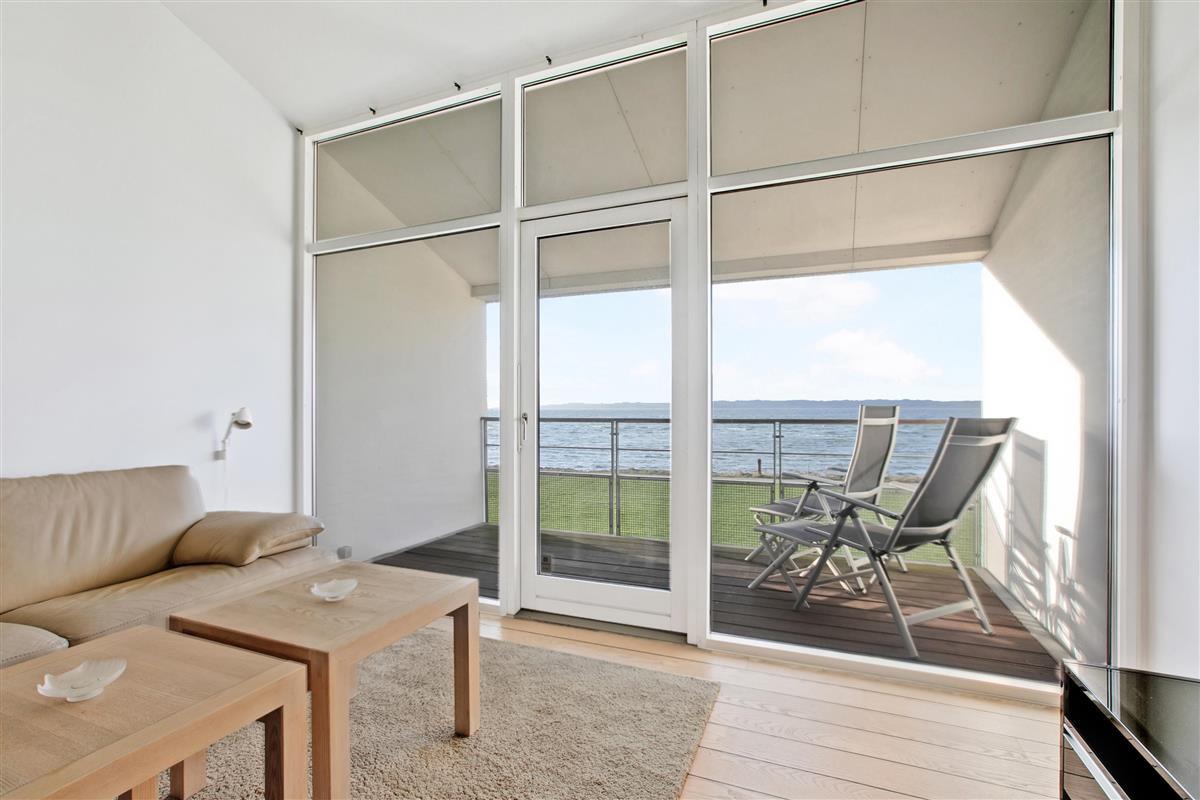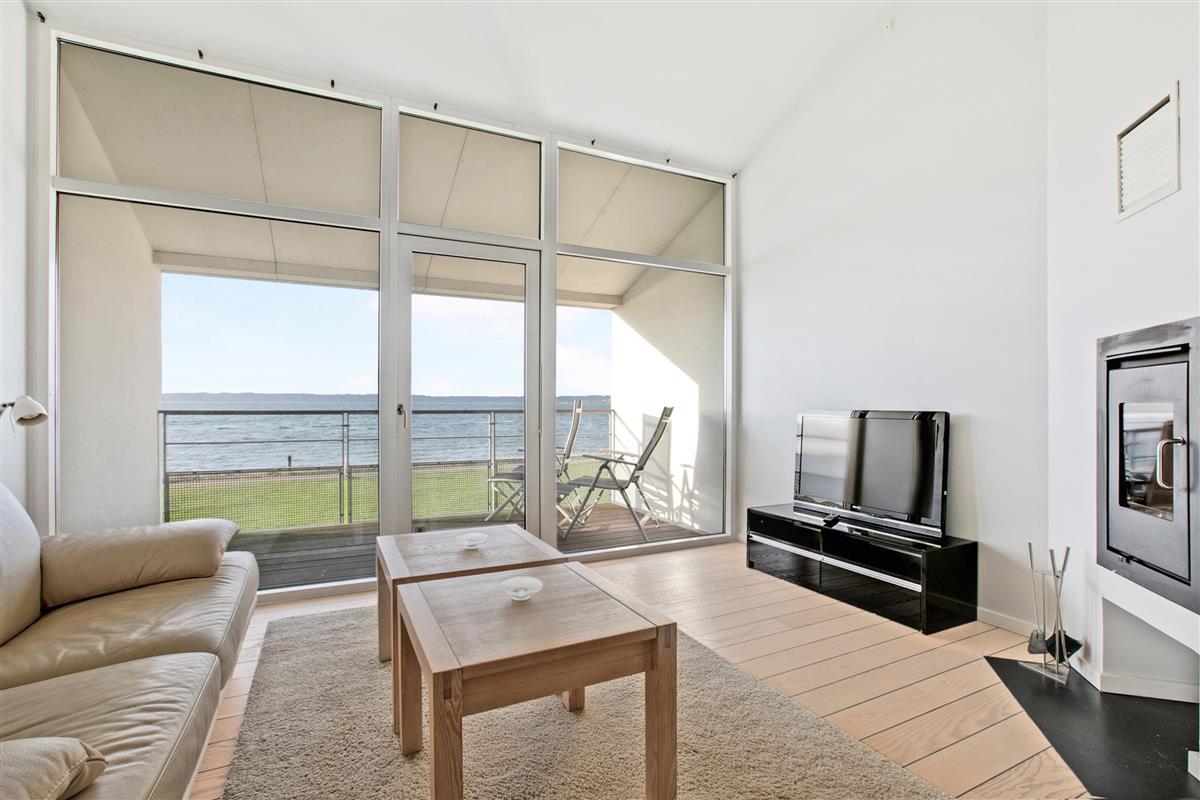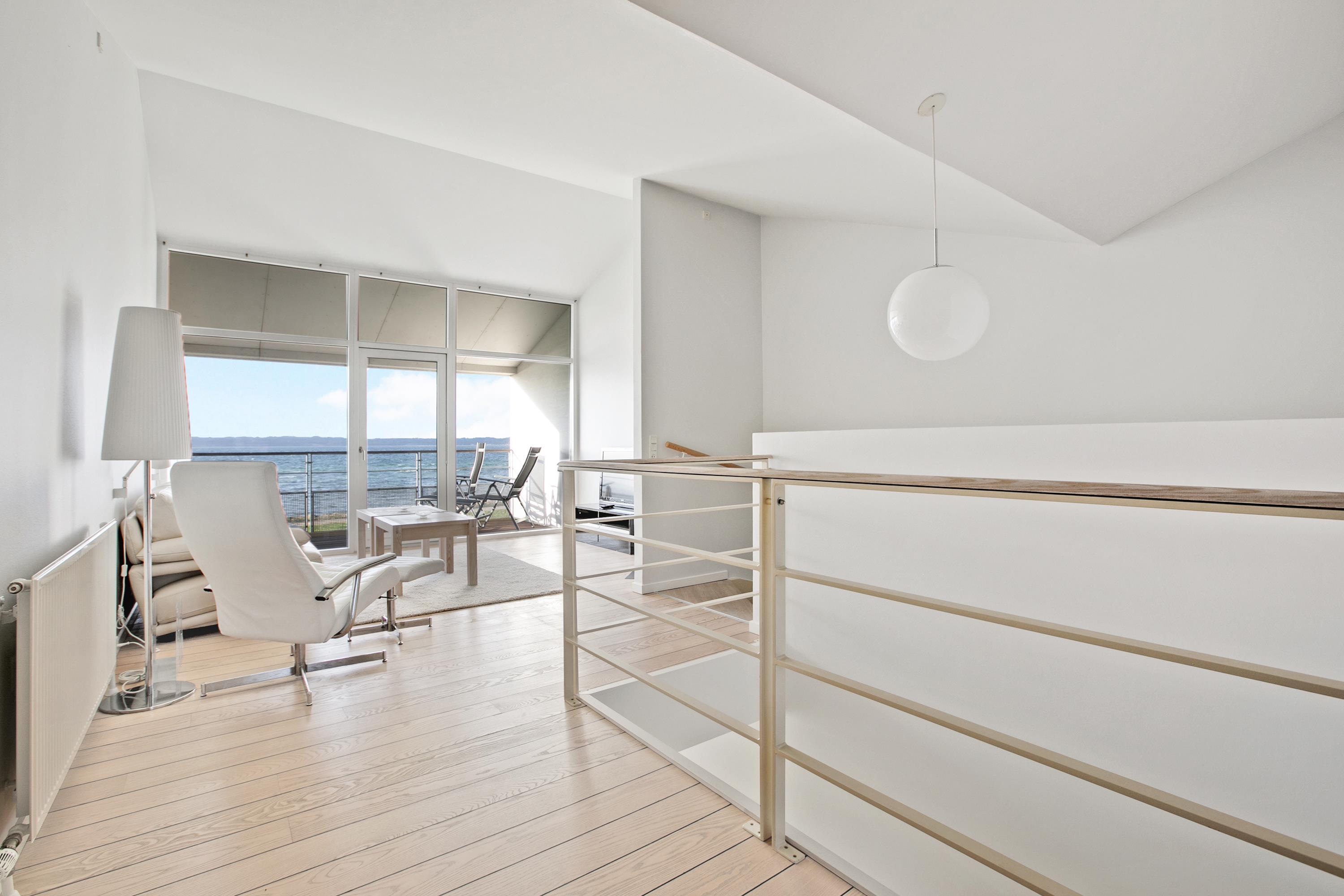 Gorgous and bright apartment in two levels near Hotel Ebeltoft Strand. Located in the first row with a full view of Ebeltoft Bay. Here, you live 20 meters from a child-friendly beach with a bathing bridge and a two-minute walk from the town center of Ebeltoft. The apartment has a west-facing, partially covered tiled terrace, as well as a covered balcony with garden furniture, sun loungers, a parasol, and a grill.