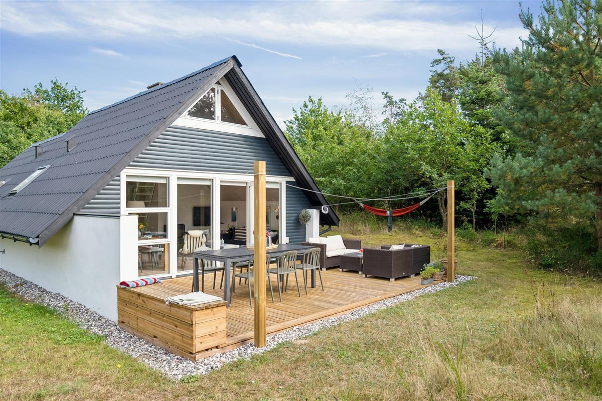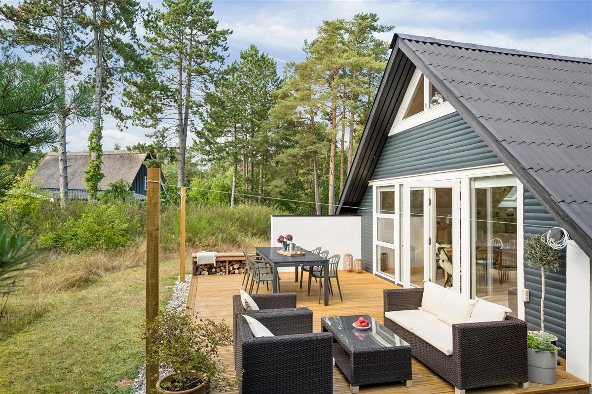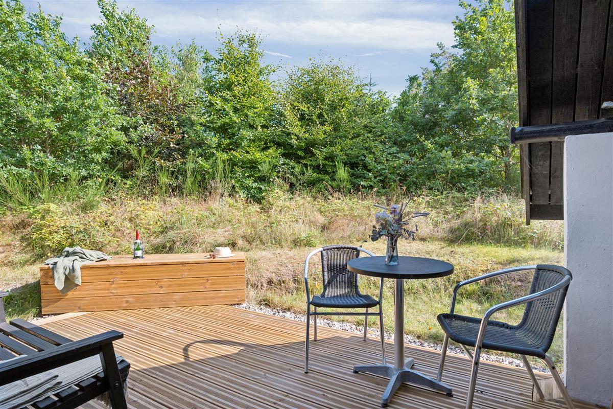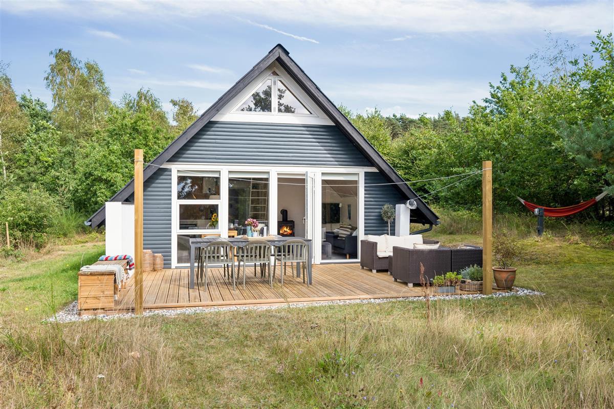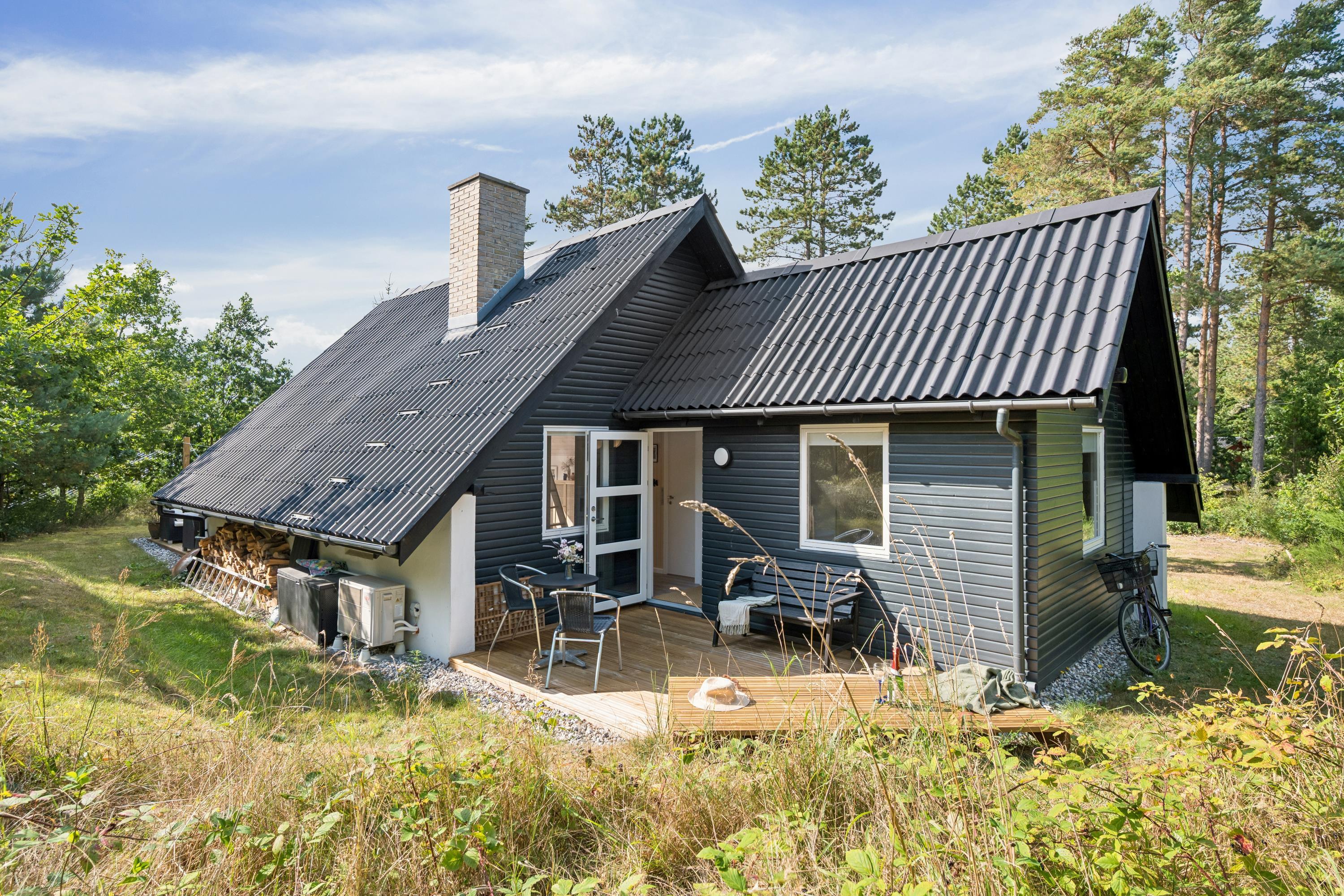 The moment you step through the door, you will feel the true holiday-home atmosphere in this particularly cosy and newly renovated cottage. Here you will find a charming and well-furnished living room featuring a wood-burning stove and a heat pump. Adjacent to the living room is a smaller but well-functioning kitchen. From the living room, there is access to a large terrace with quality garden furniture. The modern bathroom comes with a spacious shower. The sleeping arrangements include two cosy bedrooms – one with a double bed and one with a single bed. In addition, there are two extra sleeping places on good mattresses in the loft. TV is available via Chromecast. The house is situated on a beautiful natural plot, part of which has been left in a “rewilded” style, and offers two additional inviting terraces.