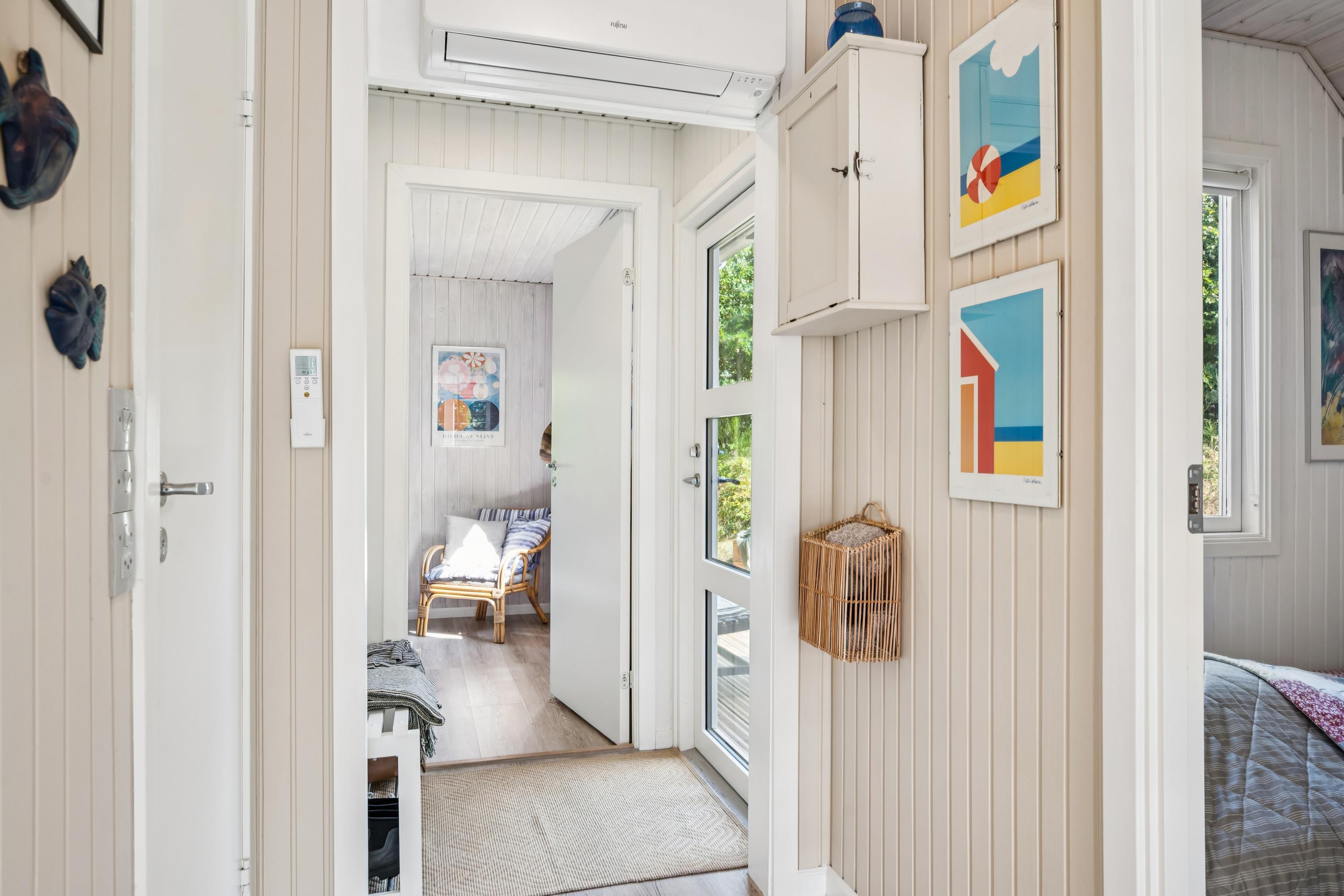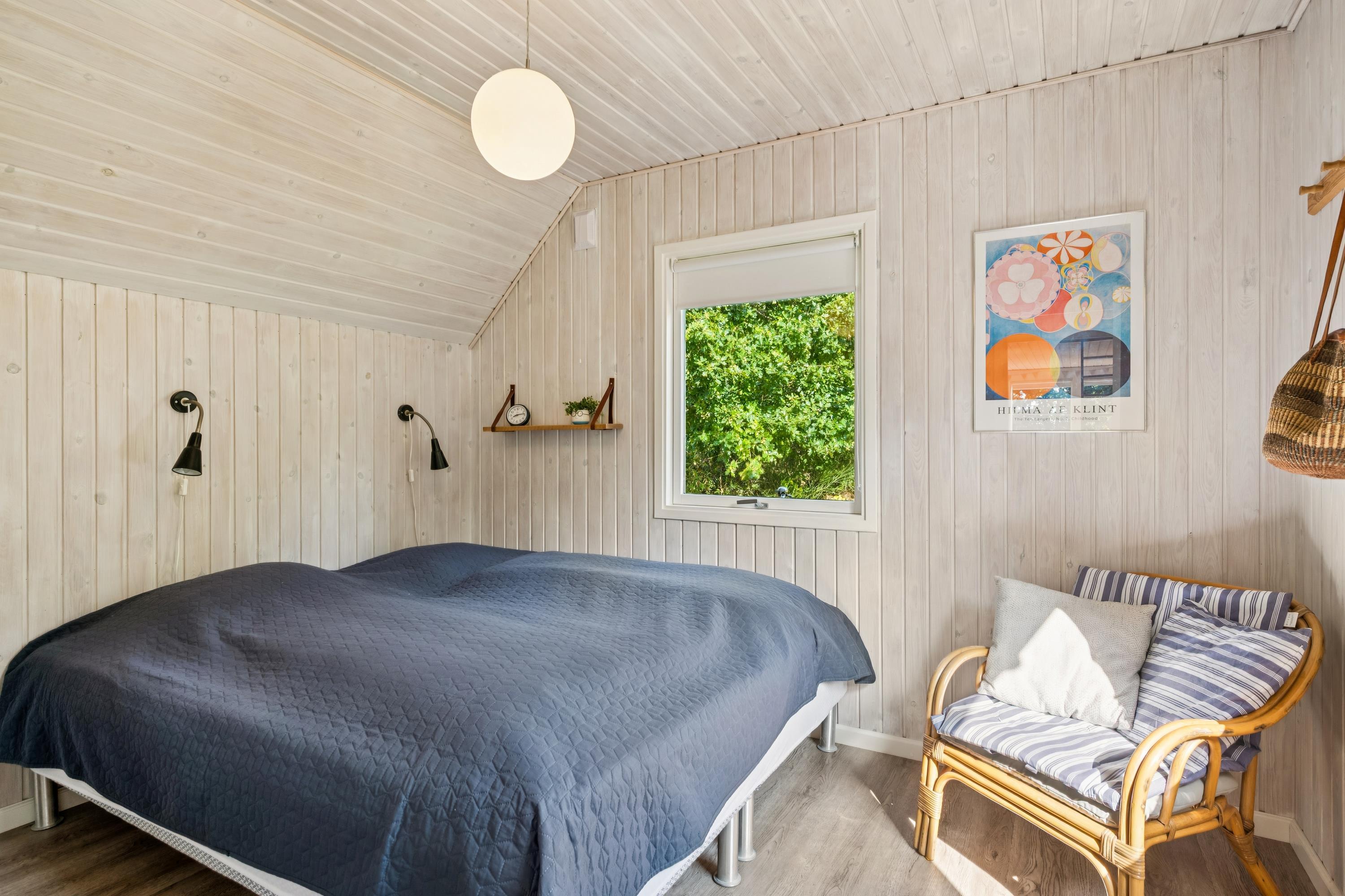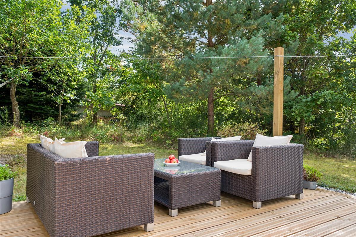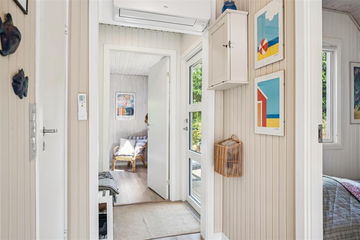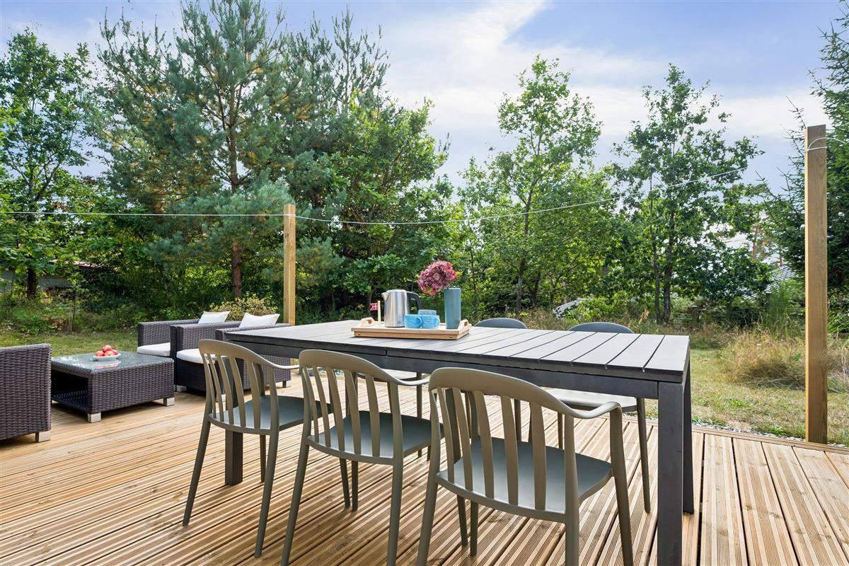 The moment you step through the door, you will feel the true holiday-home atmosphere in this particularly cosy and newly renovated cottage. Here you will find a charming and well-furnished living room featuring a wood-burning stove and a heat pump. Adjacent to the living room is a smaller but well-functioning kitchen. From the living room, there is access to a large terrace with quality garden furniture. The modern bathroom comes with a spacious shower. The sleeping arrangements include two cosy bedrooms – one with a double bed and one with a single bed. In addition, there are two extra sleeping places on good mattresses in the loft. TV is available via Chromecast. The house is situated on a beautiful natural plot, part of which has been left in a “rewilded” style, and offers two additional inviting terraces.