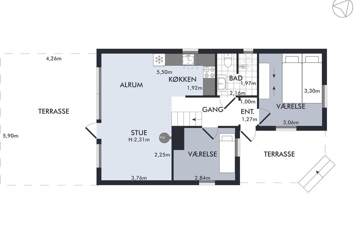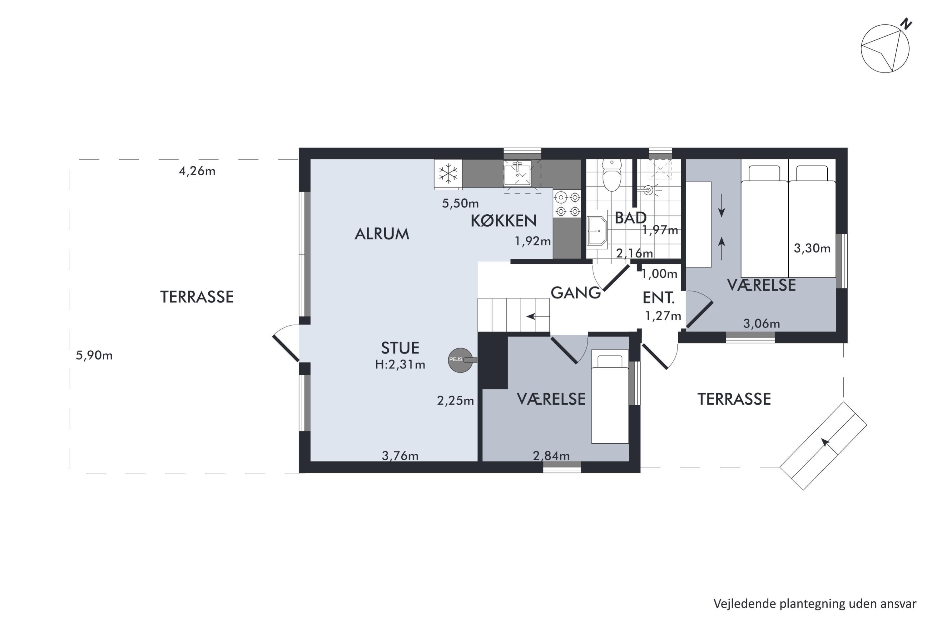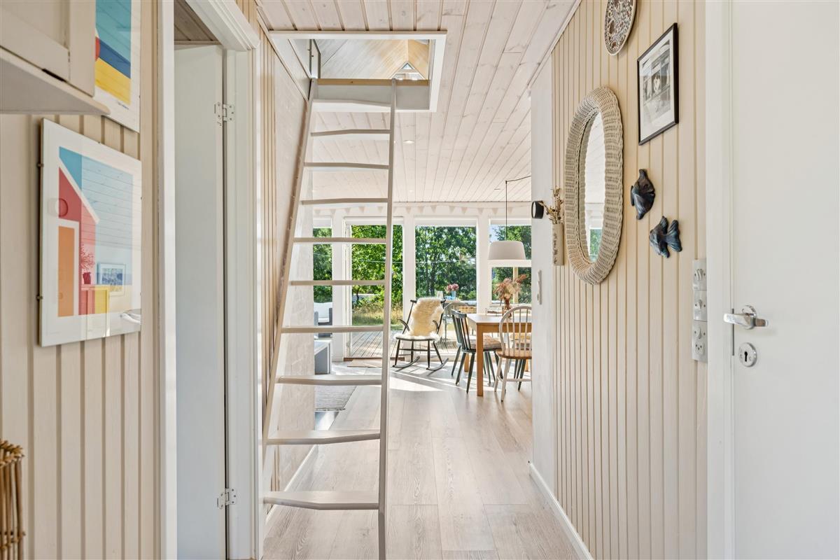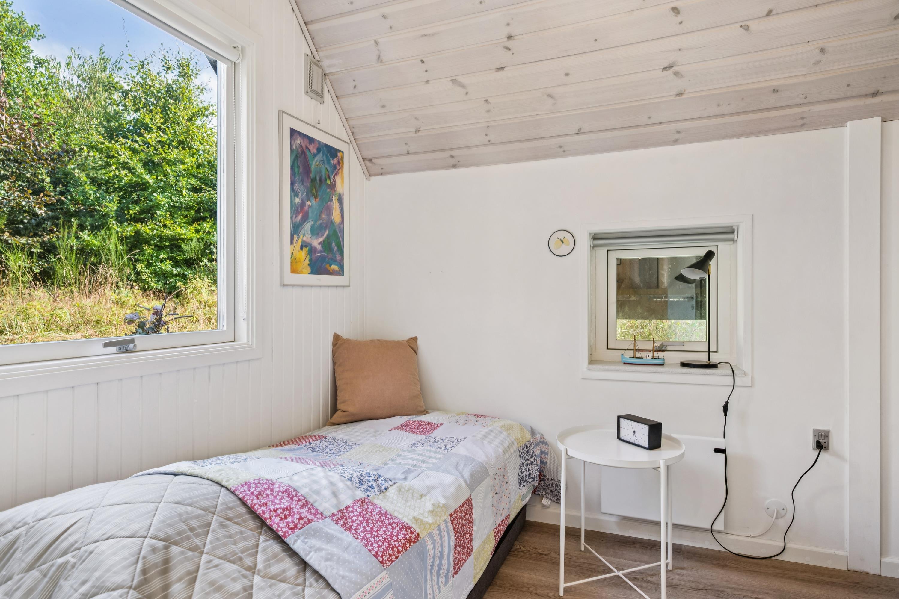 The moment you step through the door, you will feel the true holiday-home atmosphere in this particularly cosy and newly renovated cottage. Here you will find a charming and well-furnished living room featuring a wood-burning stove and a heat pump. Adjacent to the living room is a smaller but well-functioning kitchen. From the living room, there is access to a large terrace with quality garden furniture. The modern bathroom comes with a spacious shower. The sleeping arrangements include two cosy bedrooms – one with a double bed and one with a single bed. In addition, there are two extra sleeping places on good mattresses in the loft. TV is available via Chromecast. The house is situated on a beautiful natural plot, part of which has been left in a “rewilded” style, and offers two additional inviting terraces.