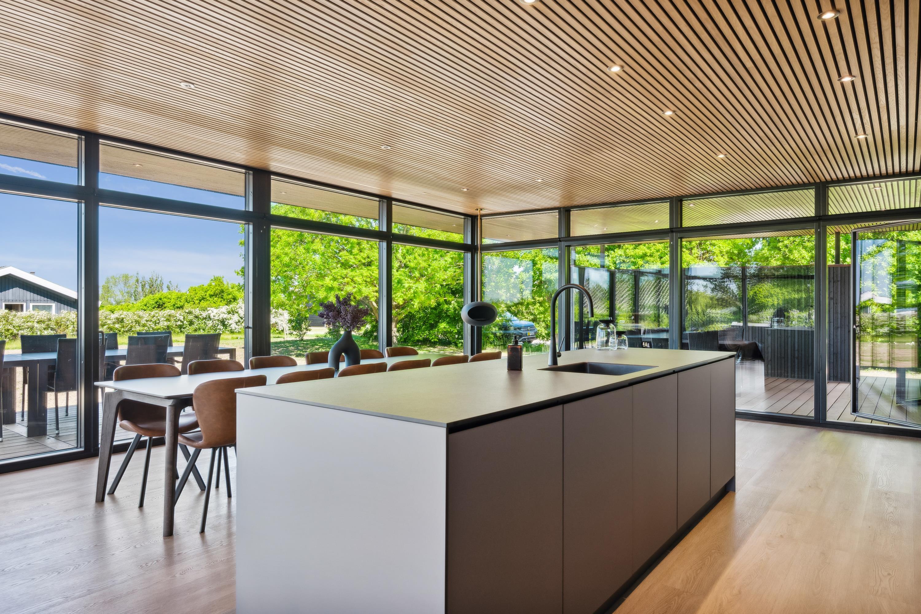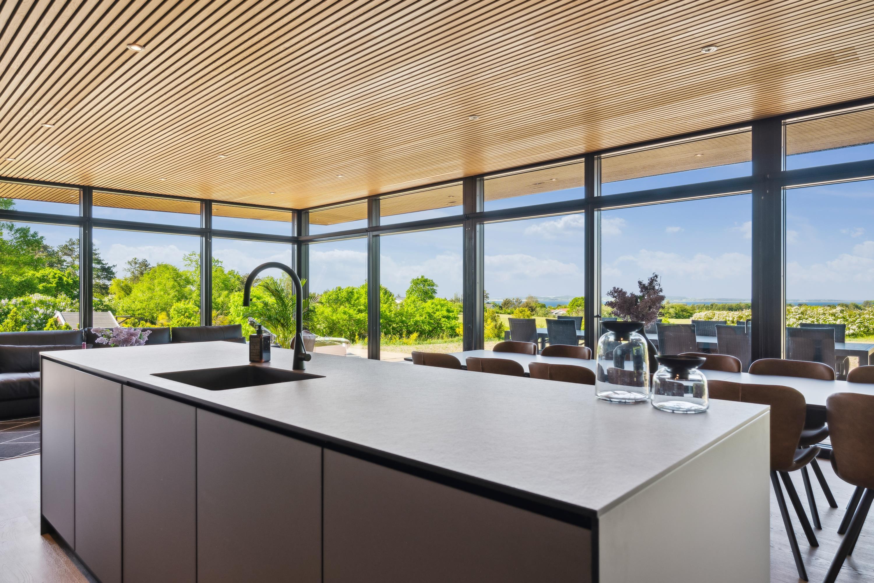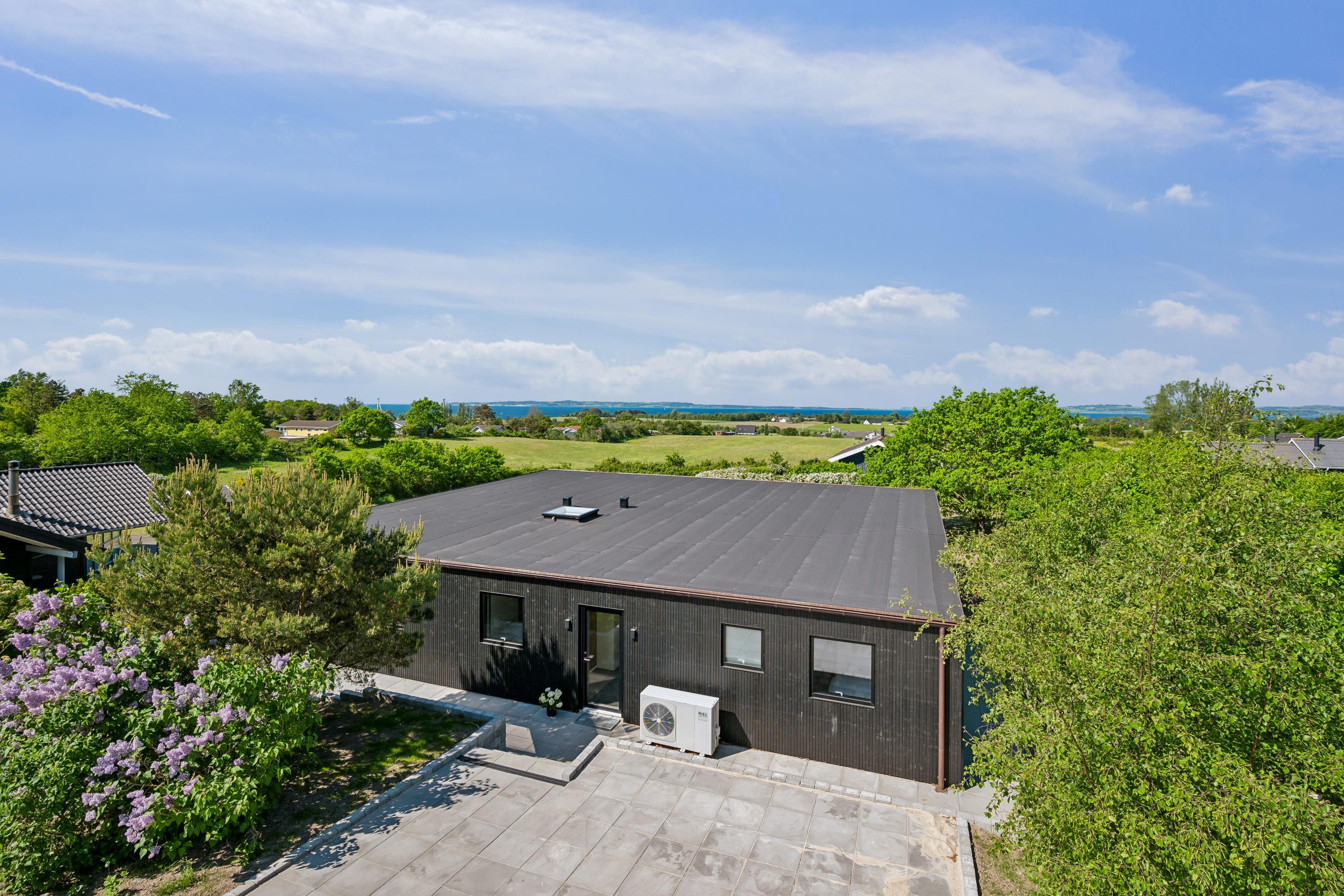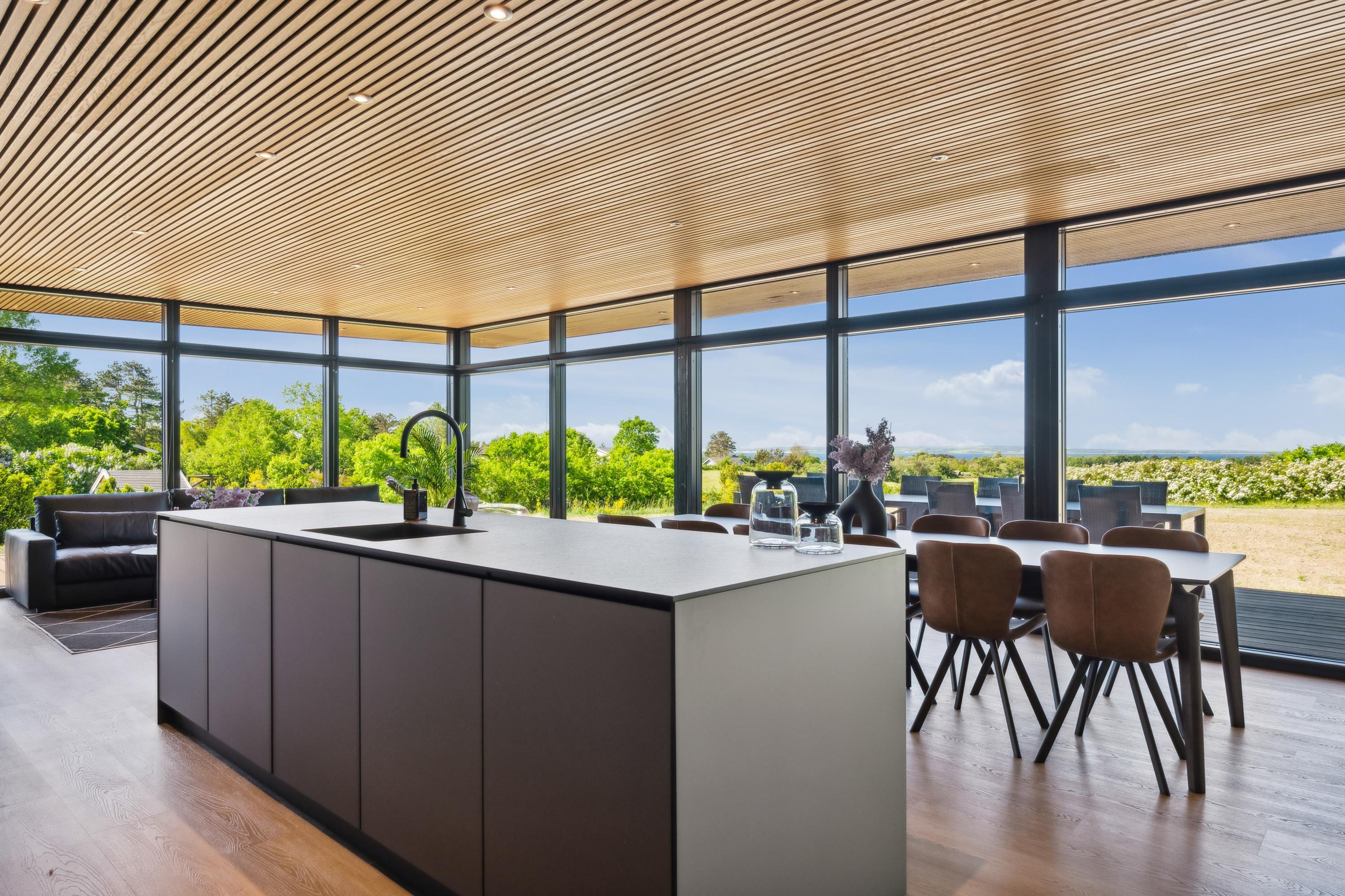 Close to Ebeltoft, you will find this beautiful and completely unique newly built holiday home. You are welcomed into the house through a spacious entrance hall with plenty of room for coats and shoes, leading into the heart of the home – the large, stylish kitchen-living area.