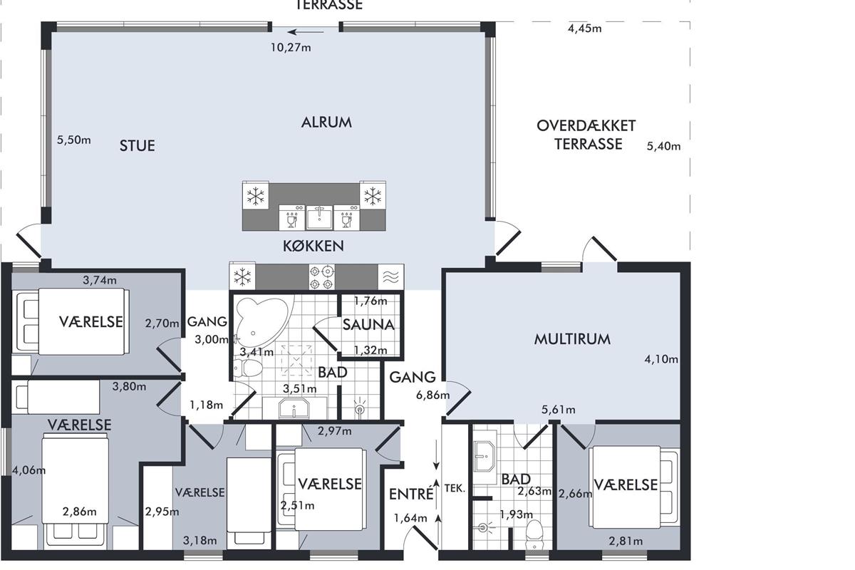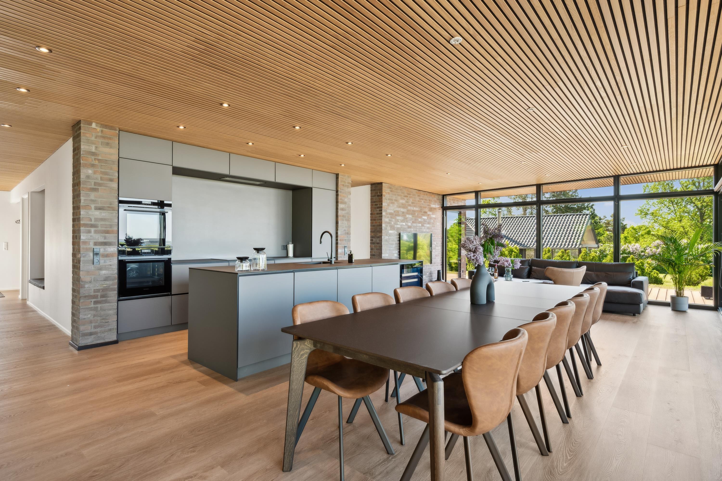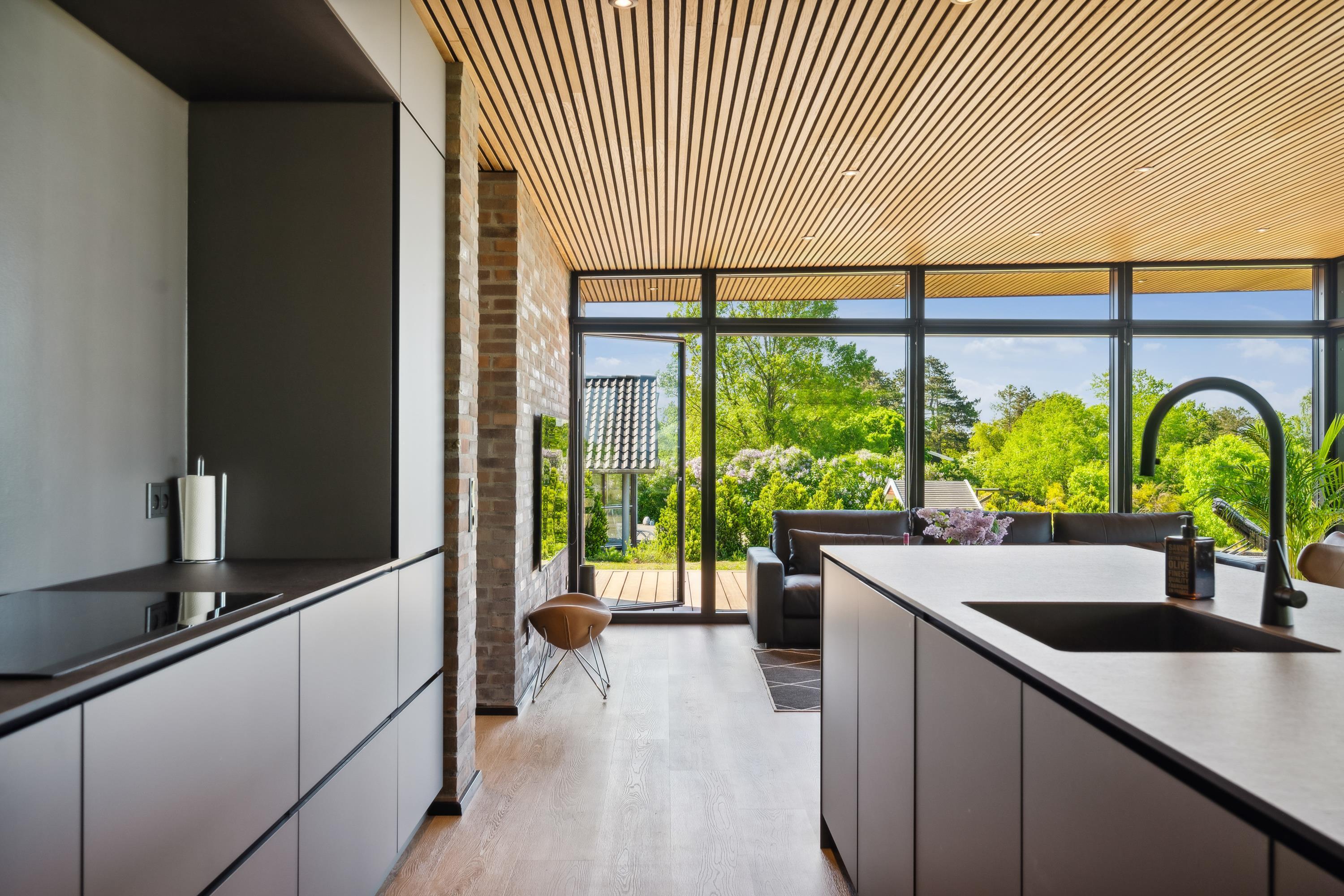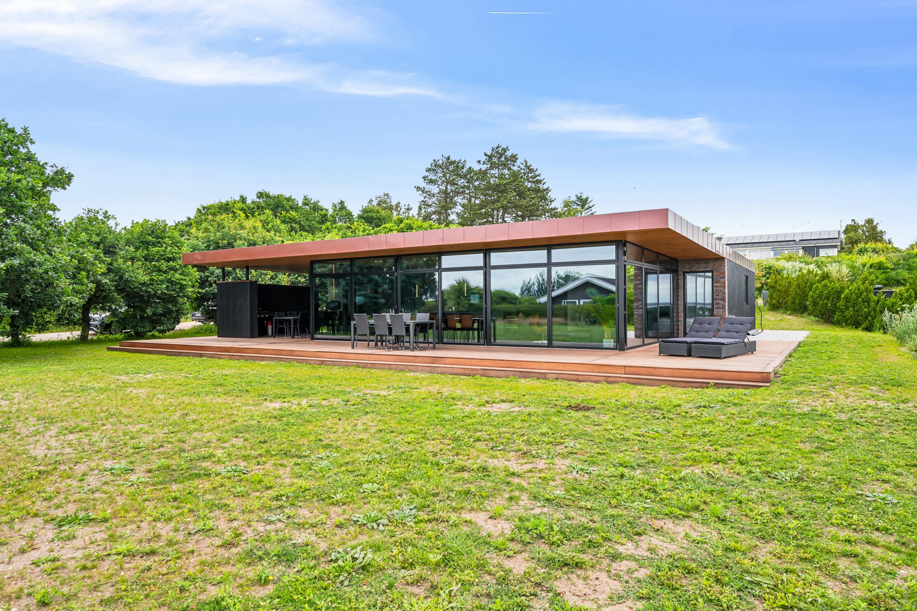 Close to Ebeltoft, you will find this beautiful and completely unique newly built holiday home. You are welcomed into the house through a spacious entrance hall with plenty of room for coats and shoes, leading into the heart of the home – the large, stylish kitchen-living area.