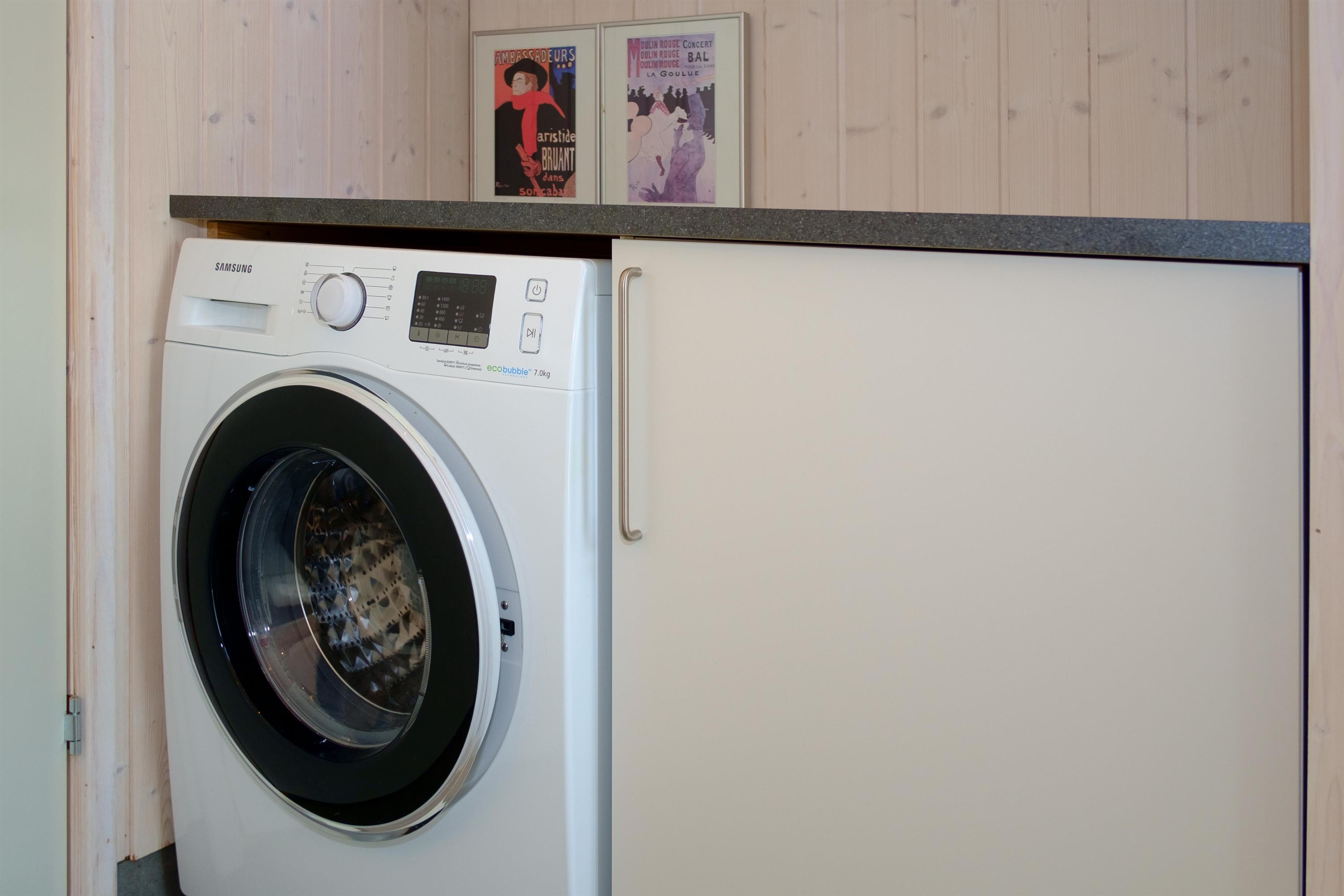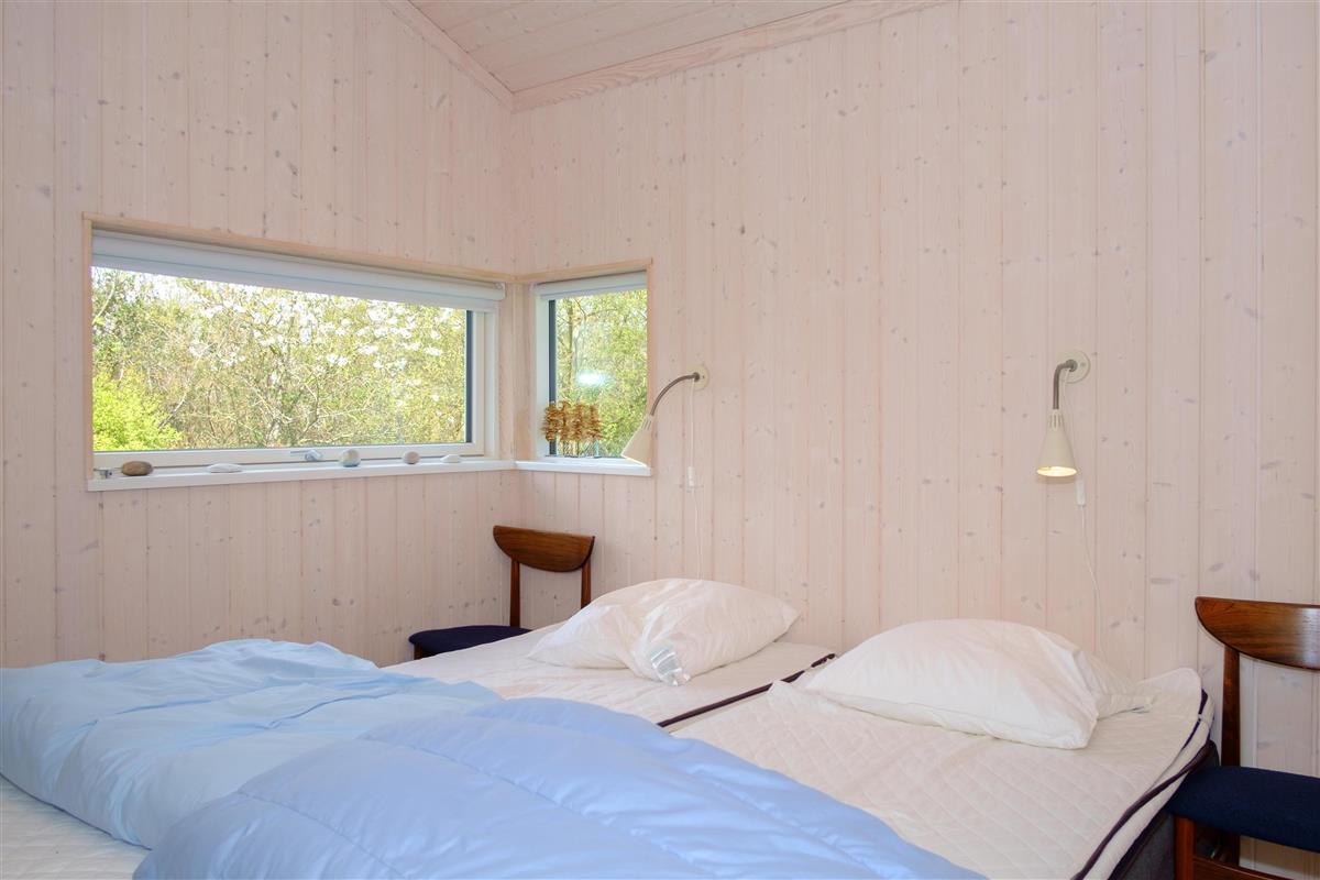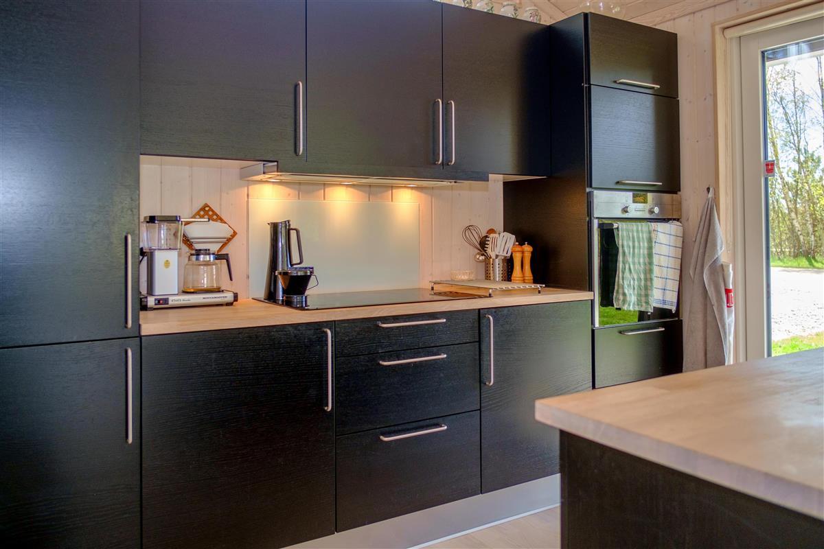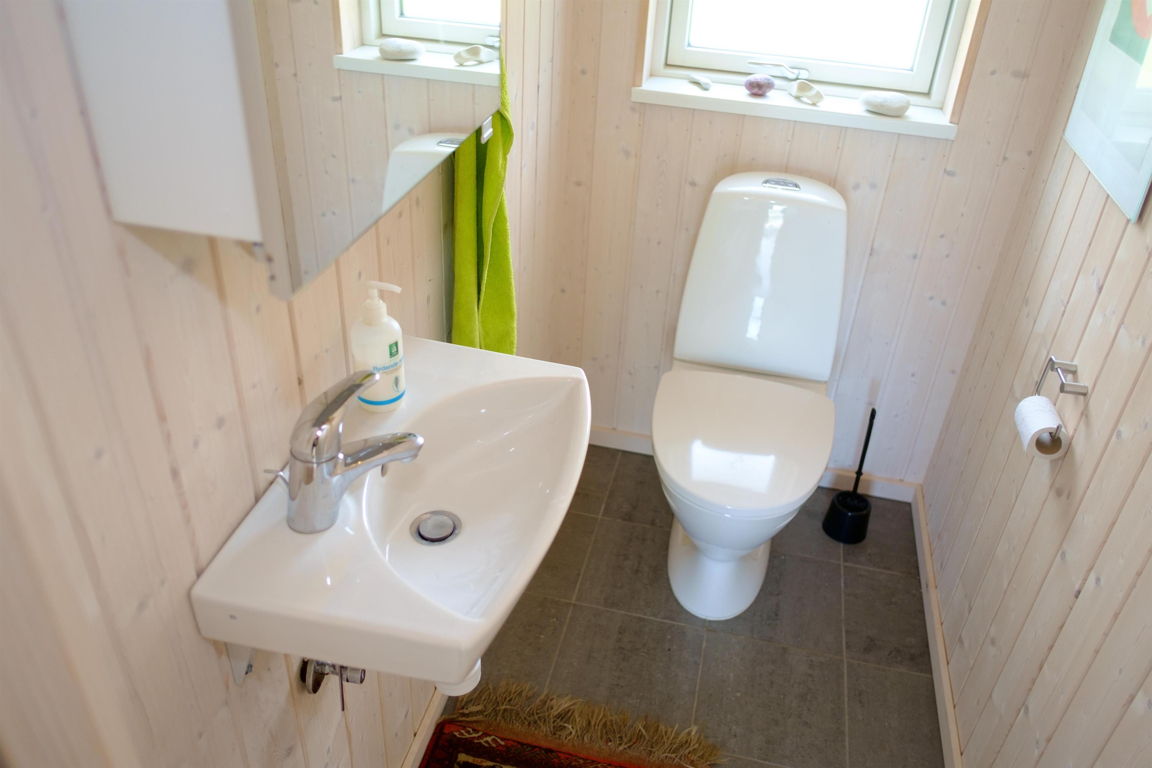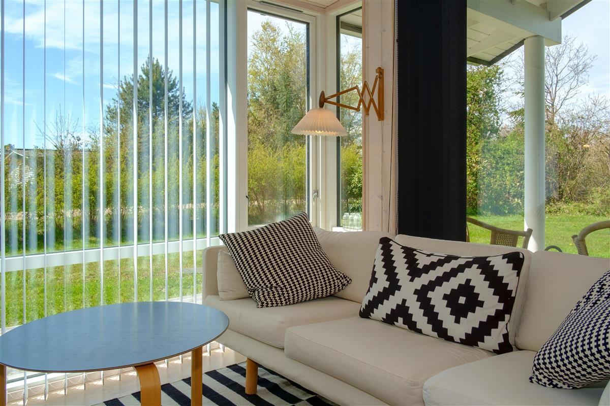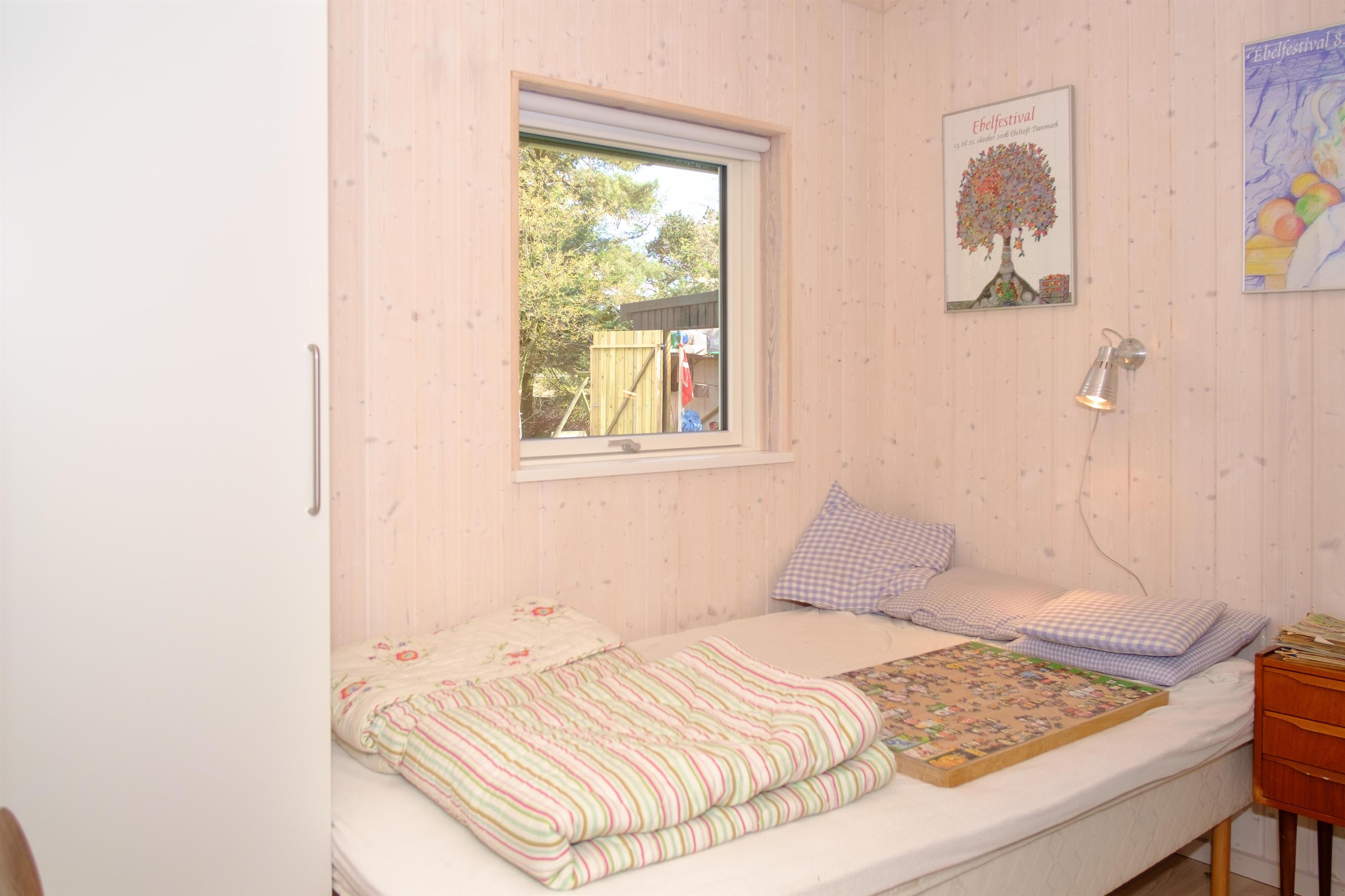 Lovely summer house from 2014 on the outskirts of Ebeltoft town and only 350 meters from the beach, situated on a beautiful natural plot with a delightful covered terrace with garden furniture and grill. The house is tastefully decorated with a cozy and bright living room with a comfortable sofa group, TV with Danish and German channels, and DVD player. Large glass panel facing the garden and terrace. The modern kitchen is in open connection with the living room and features a ceramic stove, microwave, fridge/freezer, and dishwasher. Good bathroom with shower and guest toilet. The sleeping accommodations in the house are distributed among 3 bedrooms, all with double beds. For the little holiday guests, there is a sandbox, changing table, crib, and high chair. The entire house has underfloor heating, heated by an air-to-water heat pump – together with year-round insulation, it ensures an energy-efficient holiday. Additional equipment includes an outdoor shower and bonfire spot. The house is located in a popular holiday area close to Ebeltoft and invites you to visit the many attractions and the cozy town environment
