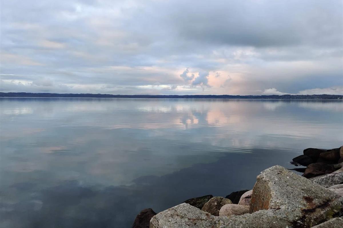 Ganz vorne, quasi im ersten Parkett, liegt dieses attraktive Ferienhaus mit Whirlpool und Sauna im Bad sowie herrlicher Panoramaaussicht zur Bucht Ebeltoft Vig! Hier können Sie oben auf dem Balkon in der 1. Etage oder draußen auf Terrasse enntspannt Platz nehmen und die wunderbare Aussicht zum Wasser und der Hügellandschaft des Nationalparks Mols Bjerge genießen!