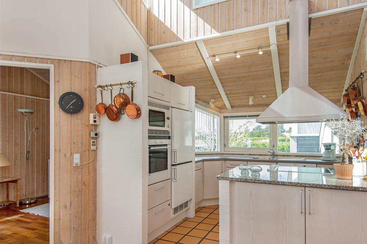 Im Inneren des Hauses befindet sich im Erdgeschoss ein offener, geräumiger Küchen-/Essbereich mit Platz für das Familienleben und für das gemeinschaftliche Zubereiten der Mahlzeiten, die anschließend mit Aussicht zur Ostsee eingenommen werden können. Meerblick bietet ebenfalls der Balkon vor dem Wohnzimmer in der ersten Etage, wo es zudem einen Kaminofen für kühlere Abende gibt.