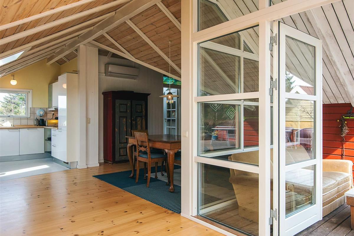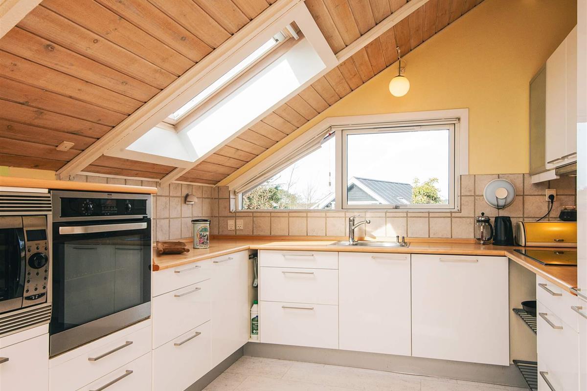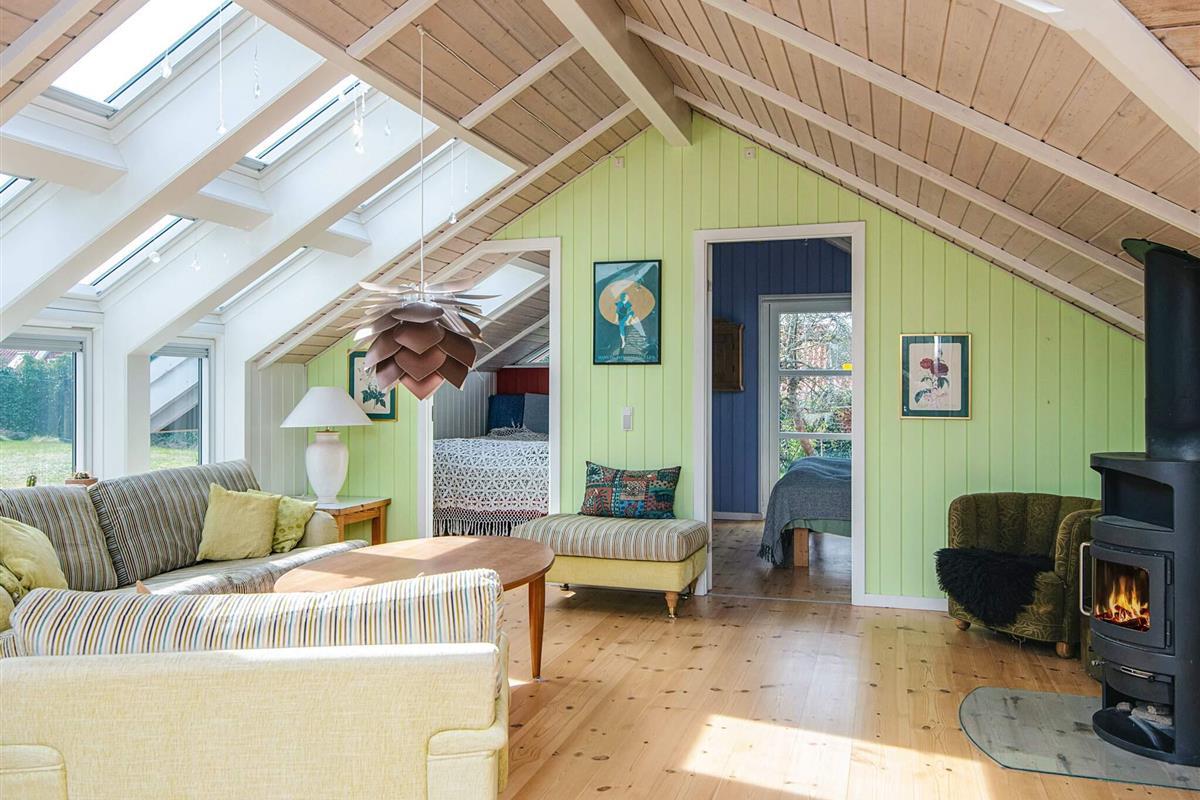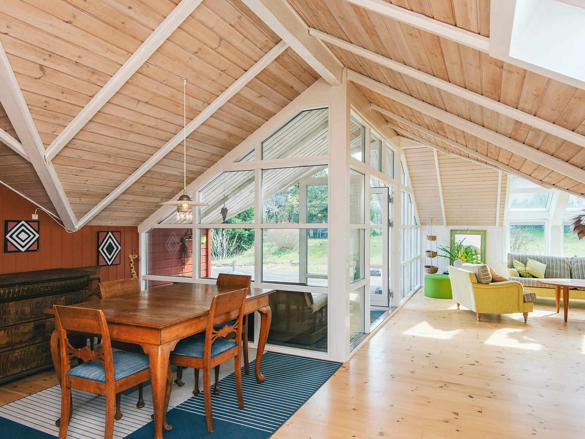 Im Haus erwartet Sie ein offener Küchen-/Wohnbereich für das Familienleben, inklusive Essecke und Holzofen für kühlere Abende. Der Einrichtungsstil ist gemütlich und ganz individuell. WLAN und Smart-TV zum Streamen, Chromecast o.Ä. ist mitzubringen. Vom Wohnbereich hat man direkten Zutritt zur teilweise überdachten Terrassenfläche. Außerdem drei Schlafzimmer im Haus mit insgesamt fünf Schlafplätzen sowie ein kleinerer Annex nebenan auf dem Grundstück mit zwei weiteren Schlafplätzen.