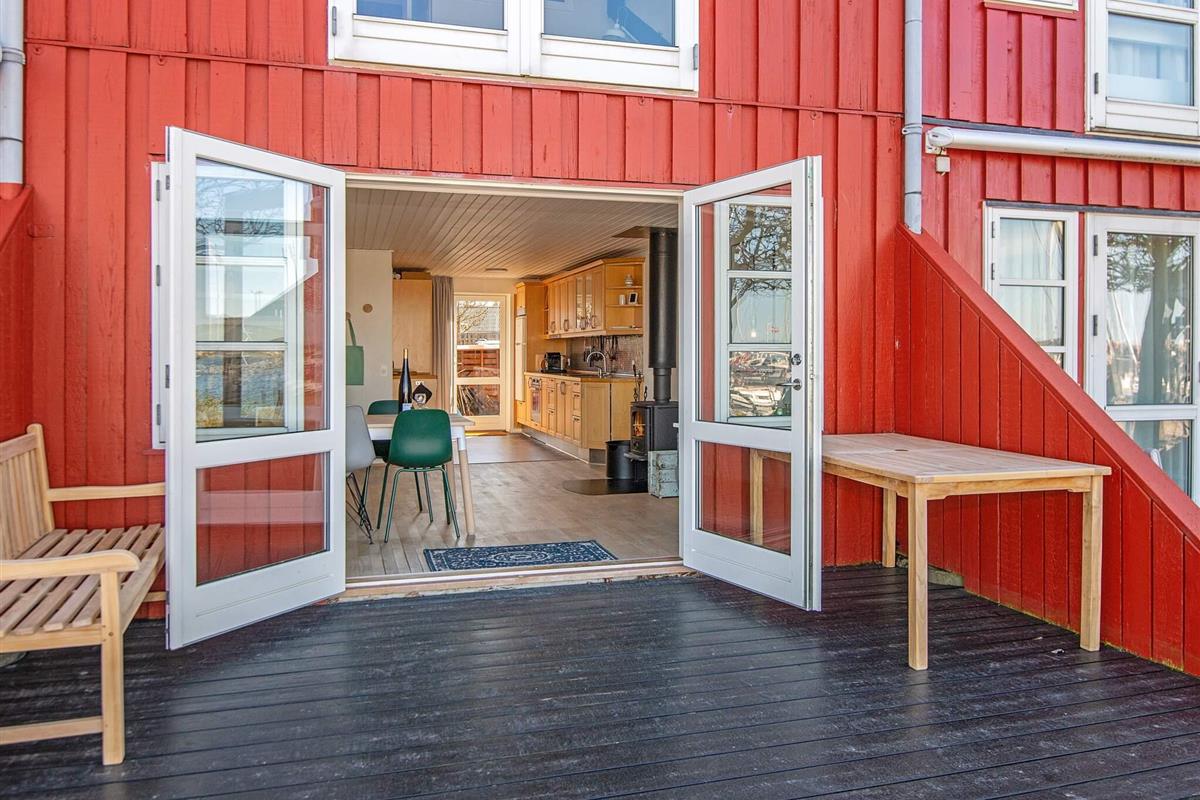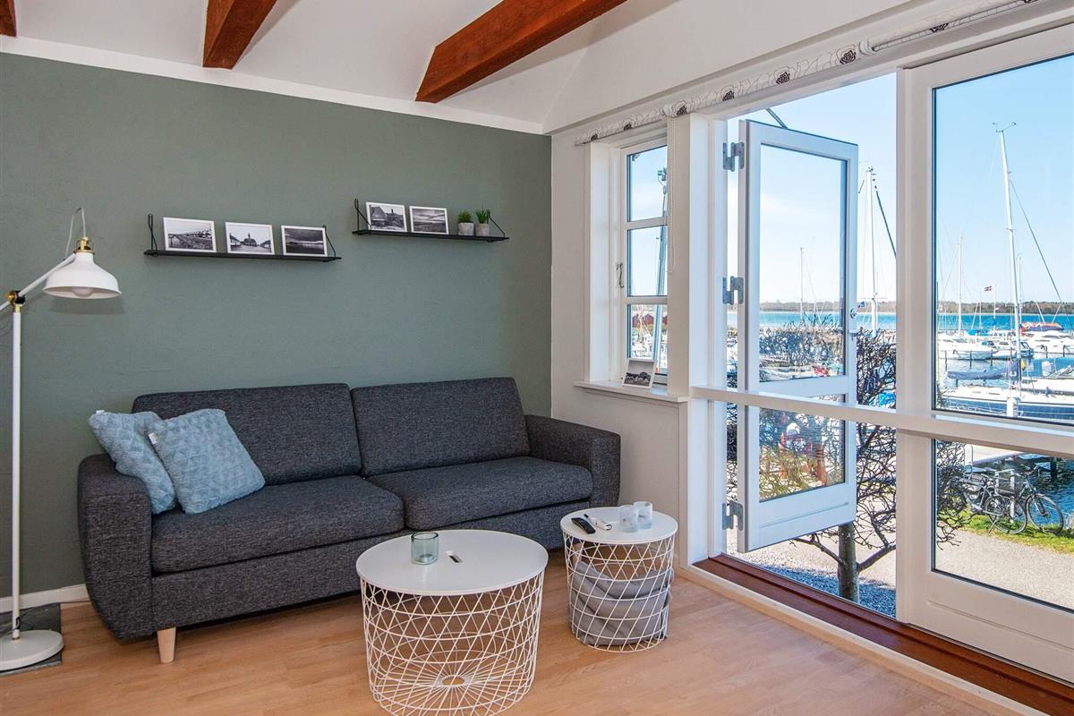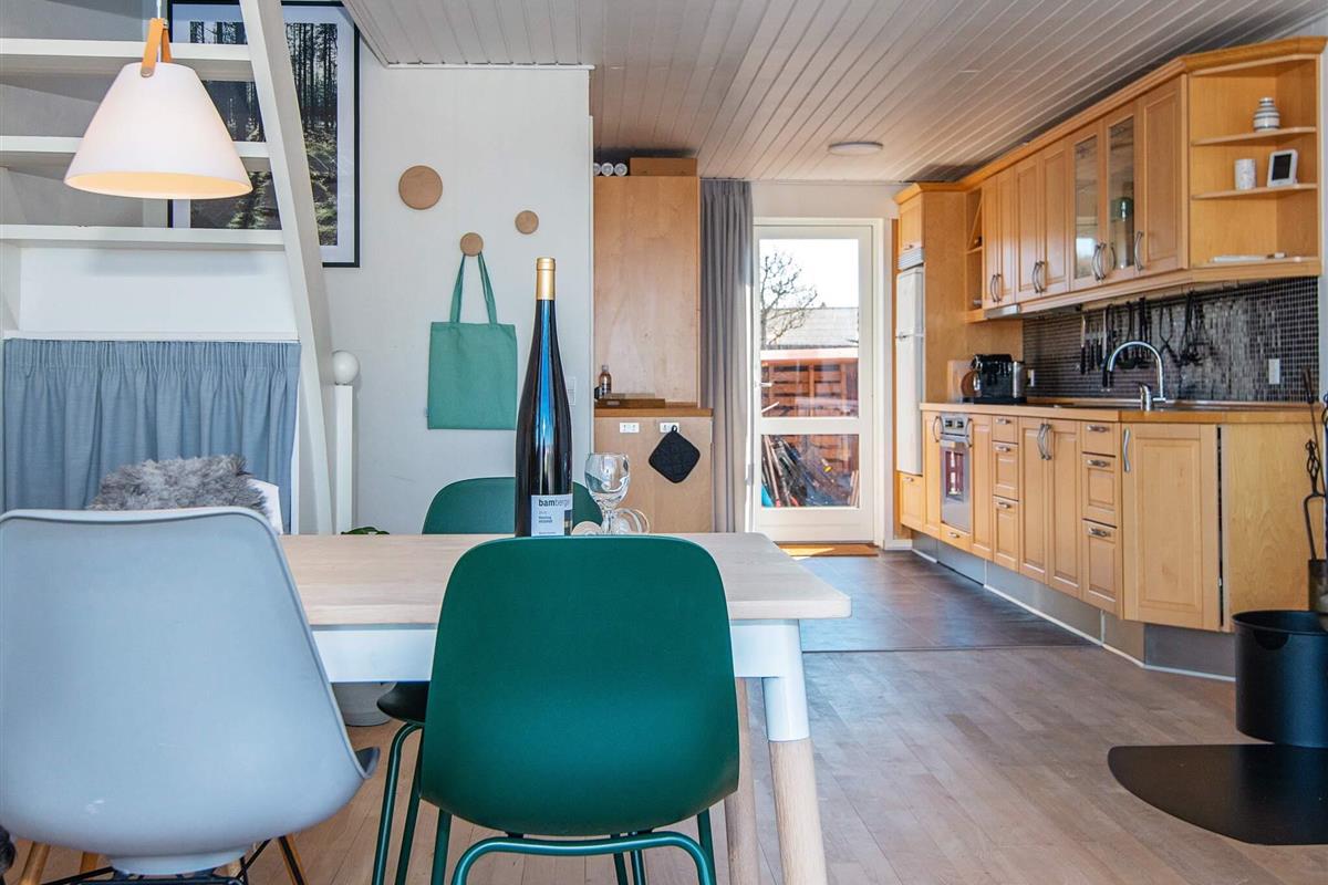 Das zweigeschossige Ferienhaus bietet einen offenen Küchen-/Essbereich für das Familienleben, mit Wohnraum im Anschluss und direkten Zugang zur Terrasse, von wo aus man die gemütliche Atmosphäre des Yachthafens genießen kann. Zudem attraktives Badezimmer im Haus.