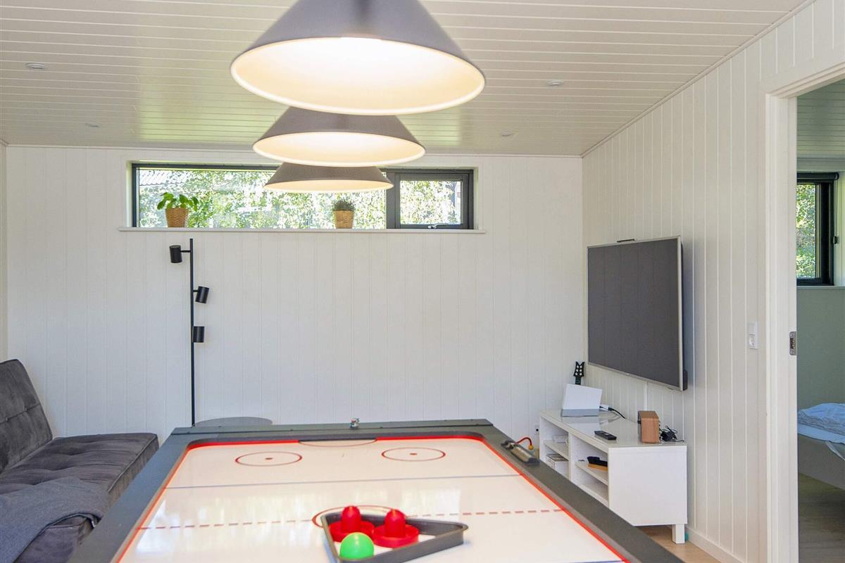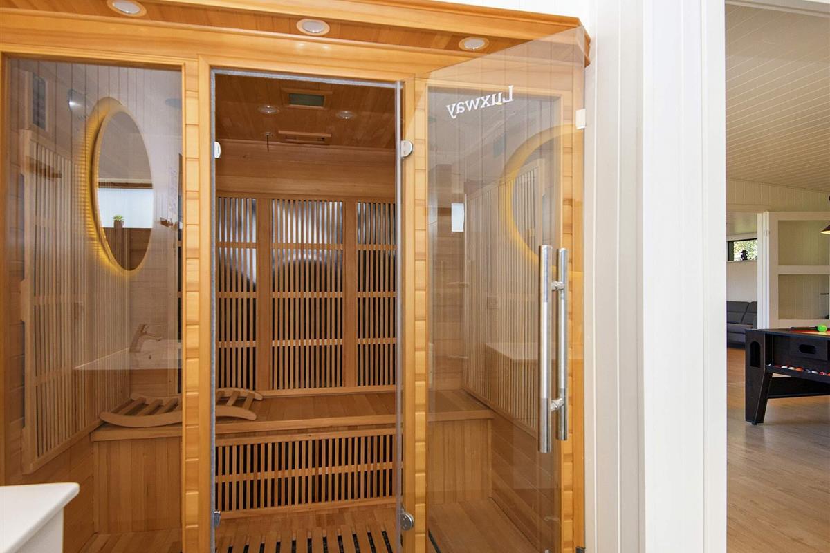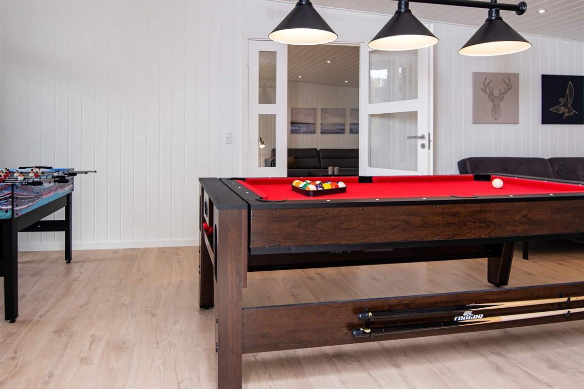 Bei Ebeltoft finden Sie dieses bestens ausgestattete, für die Saison 2021 neu erbaute Ferienhaus mit Aktivitätsmöglichkeiten für die ganze Familie. Hier stehen Ihnen u.a. Whirlpool, Sauna und Badezuber für den Bade- sowie ein großer Aktivitätsraum mit Billard und Tischkicker für den Freizeitspaß zur Verfügung. Außerdem gibt es fünf Schlafzimmer und zwei Bäder mit Dusche/WC im Haus, eines davon mit Whirlpool und Sauna. Angenehme Fußbodenheizung im gesamten Haus.