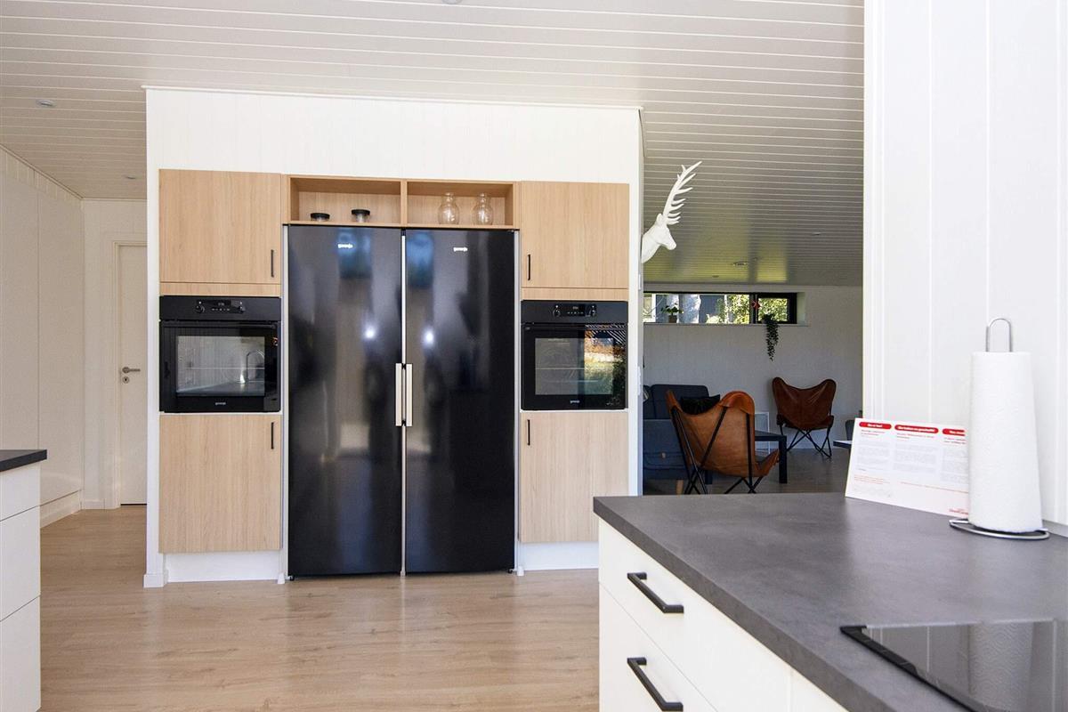 Im Außenbereich finden Sie mehrere Terrassenflächen für sonnige Tage und Grillabende. Zudem steht hier ein Badezuber für ein Bad unter freiem Himmel bereit. Vom Haus aus sind es, wenn man dem kleinen Pfad "Banestien" folgt, nur ca. 700 m zum Wasser.
