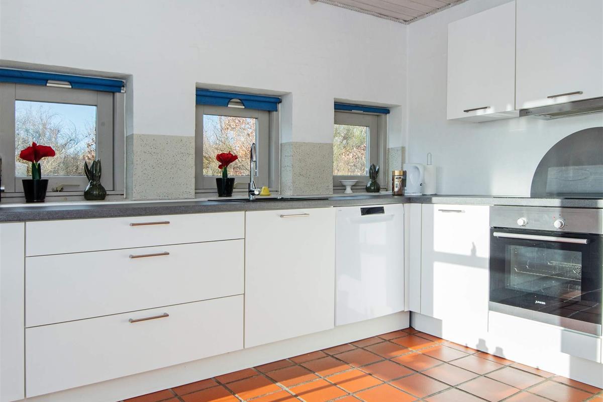 Im Außenbereich steht eine große Rasenfläche für Aktivitäten im Freien bereit. Außerdem gibt es eine offene Terrassenfläche für sonnige Tage und Grillabende. Die Kleinstadt Ebeltoft liegt in Reichweite für Spaziergänge und Ausflüge.