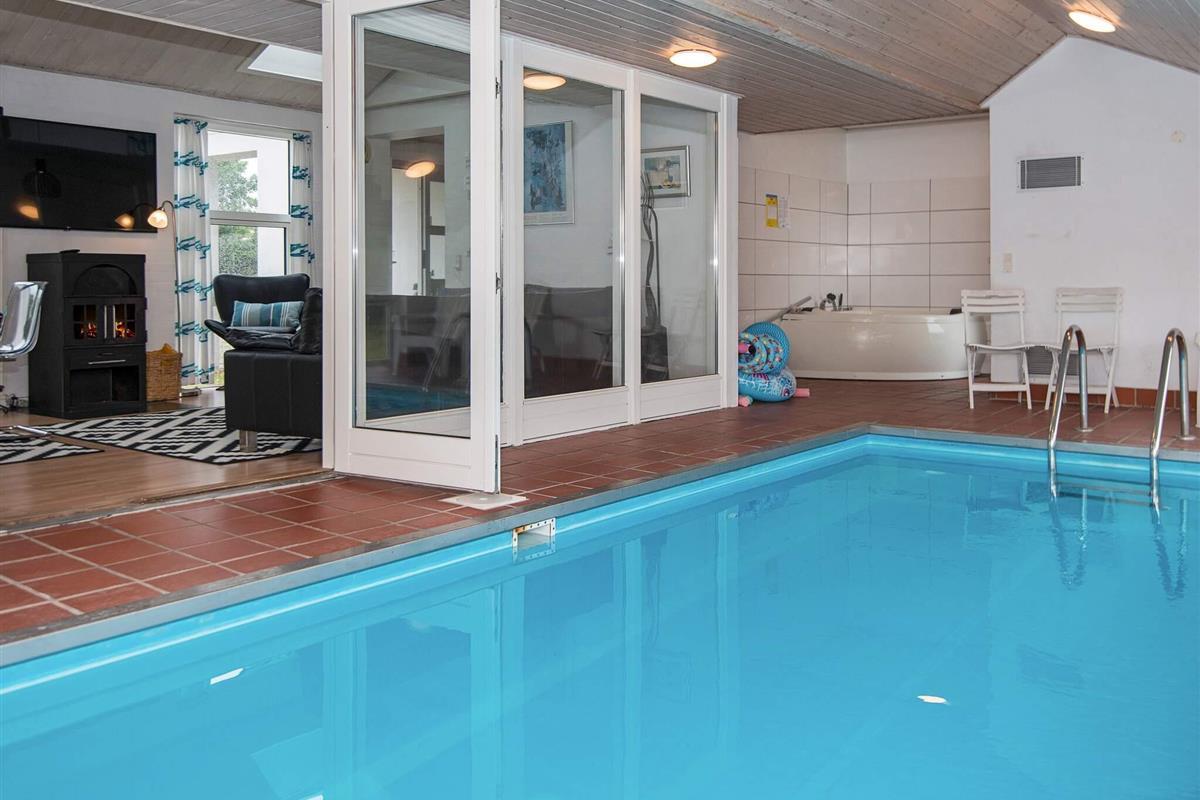 Ferienhaus mit hauseigenem Swimmingpool sowie Sauna und Whirlpool für erholsame Stunden. Liegt nur etwa 100 m von der Küste der Bucht Ebeltoft Vig entfernt, hier kann das Element Wasser also ganz in den Fokus rücken.
