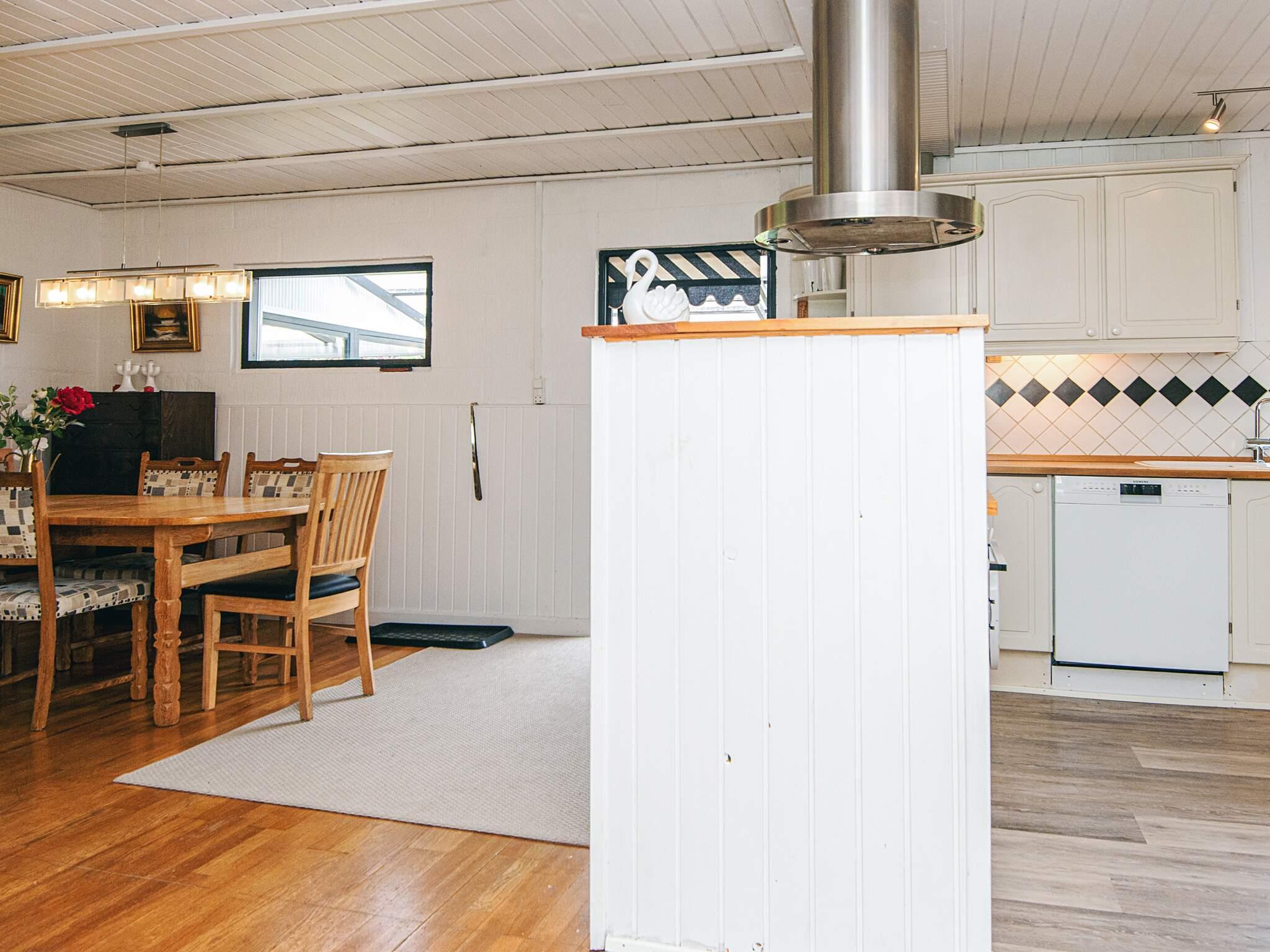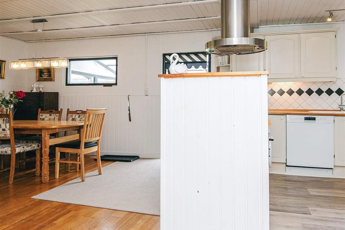 Im Innenbereich finden Sie eine moderne, weiße offene Küche neben einem großen Essbereich – ideal für gemeinsame Mahlzeiten und Familienfeiern. Zwei großzügige Wohnzimmer bieten viel Platz zum Entspannen, Lesen oder für gemütliche Stunden. Die zwei Schlafzimmer und das Badezimmer mit WC machen das Haus zu einer praktischen und komfortablen Wahl für bis zu vier Gäste.