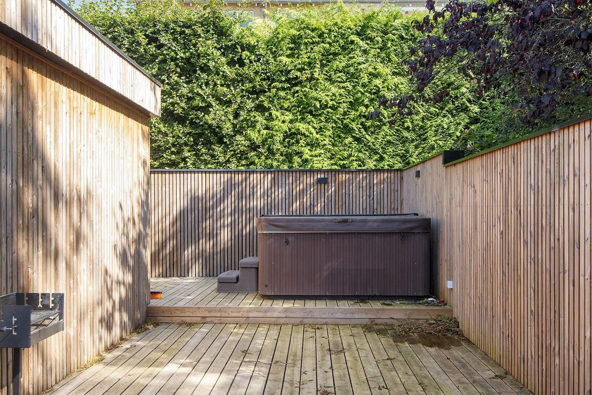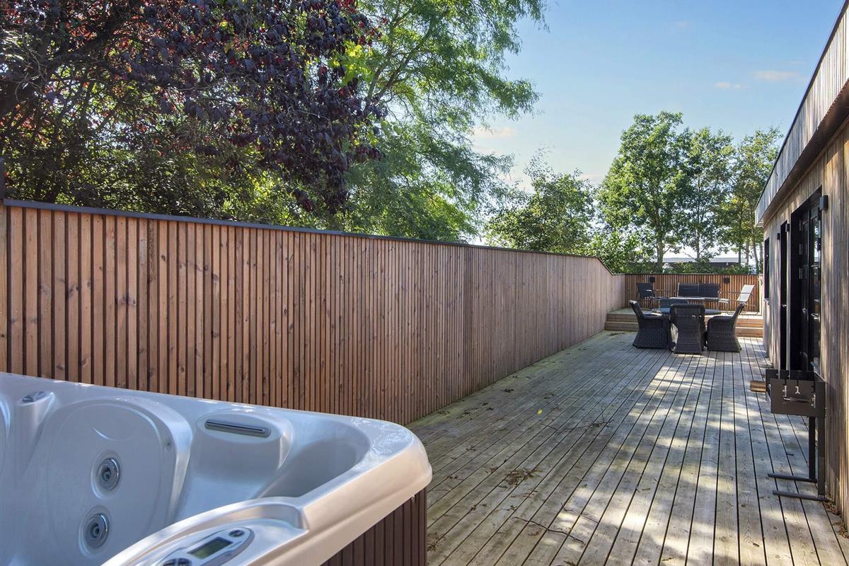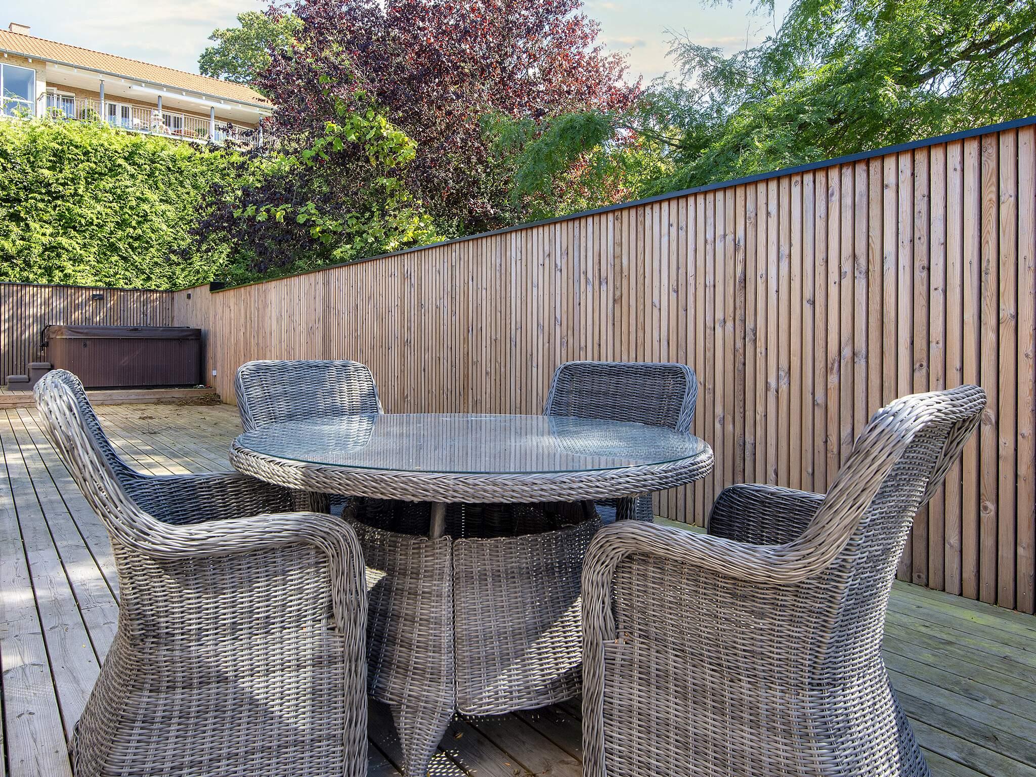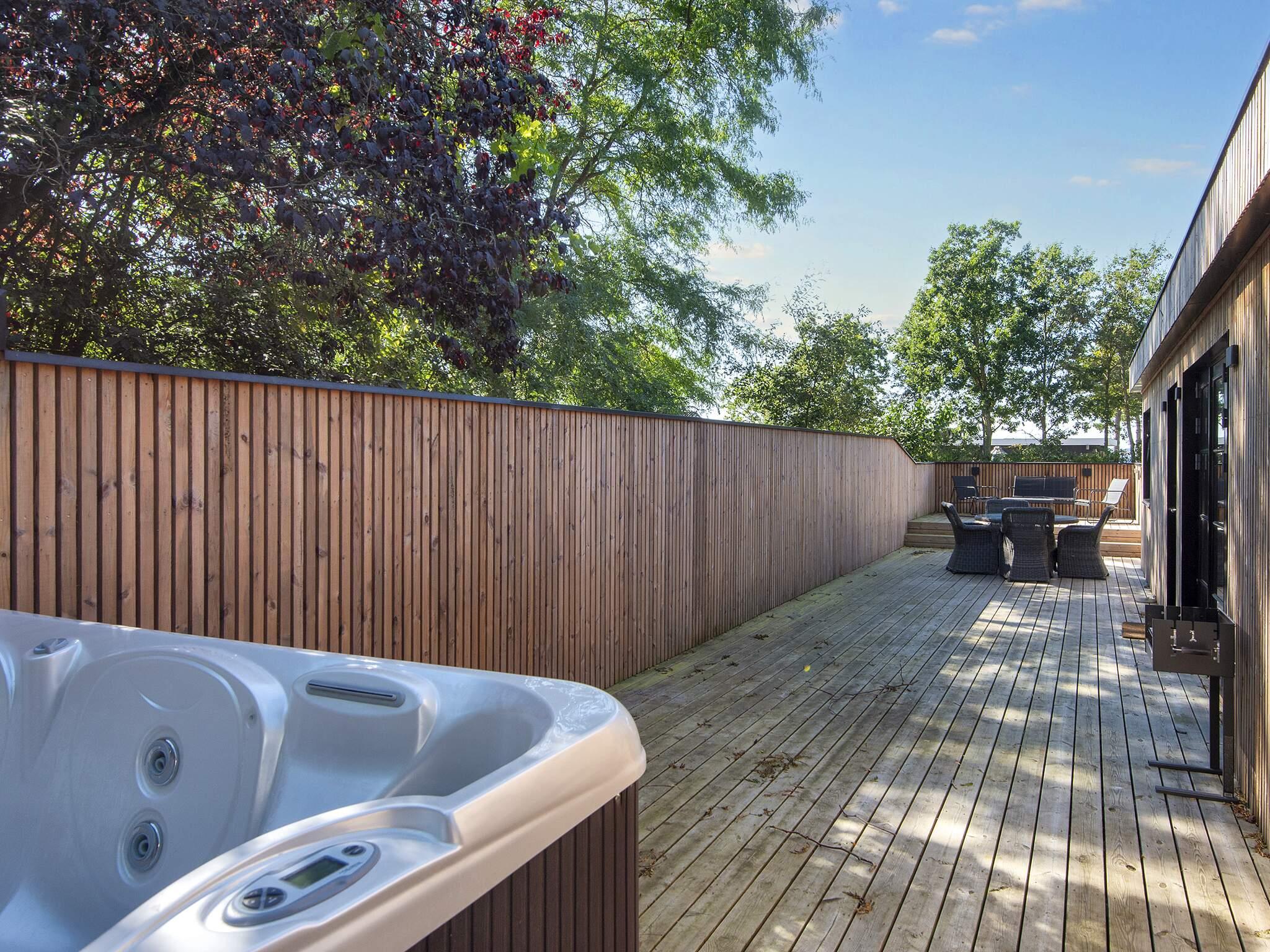 Eine ganz zentrale Lage in Ebeltoft, in der Nähe von Wasser, Wald und der Ortsmitte, bietet dieses Ferienhaus mit Meerblick sowie schöner Terrasse mit Standwasser-Whirlpool im Freien.