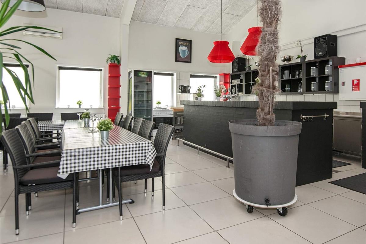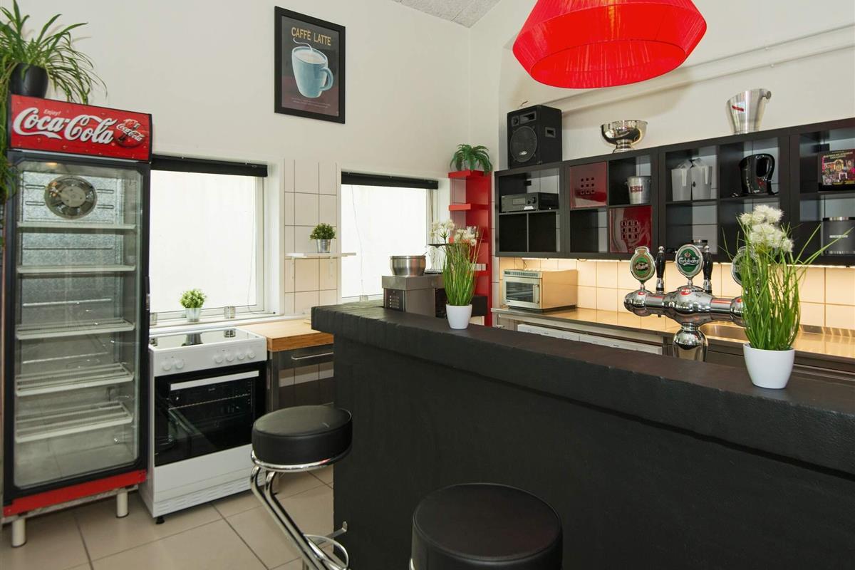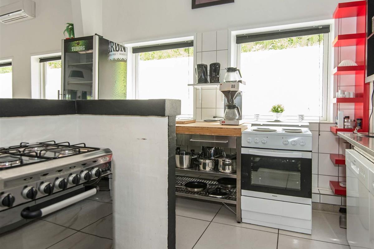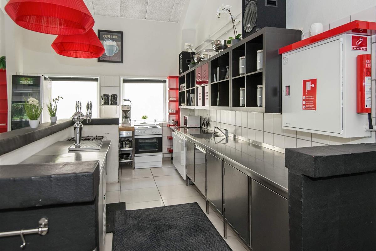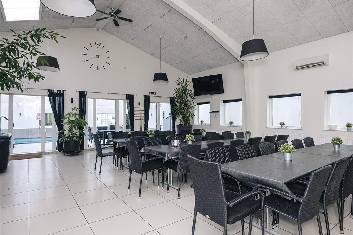 Im Gemeinschaftsraum gibt es u.a. einen großen Essbereich für bis zu 36 Personen und eine große, offene Küche in der das Festmahl und weitere Mahlzeiten zubereitet werden können. Diese ist u.a. mit zwei Kochherden, zwei Geschirrspülern und einem großen Kühlschrank umfassend ausgestattet, damit hier für entsprechend viele Menschen gekocht werden kann.