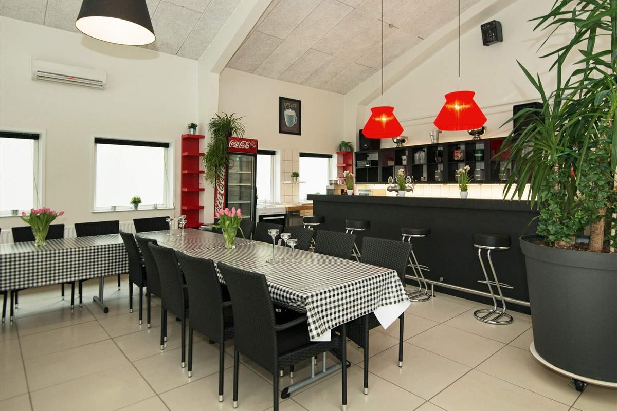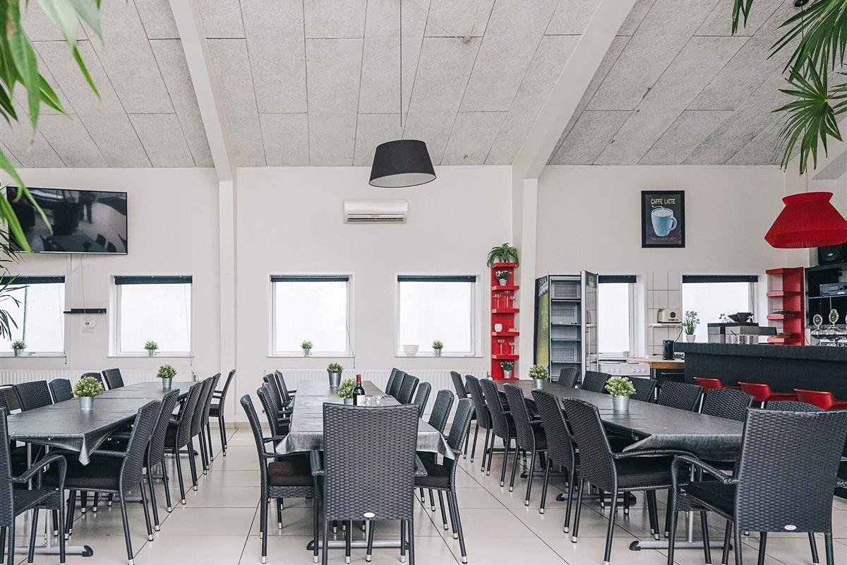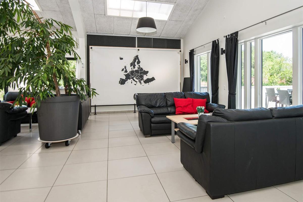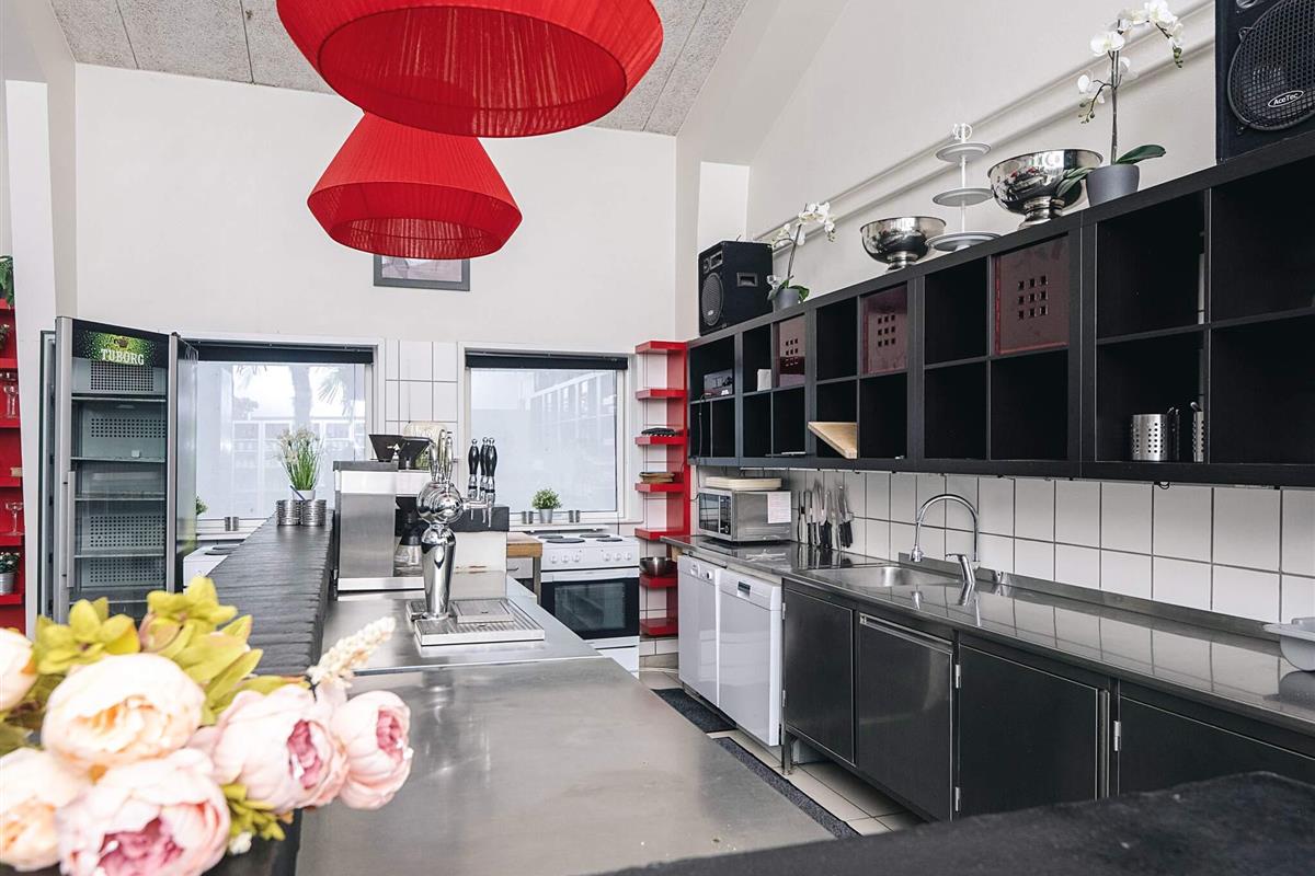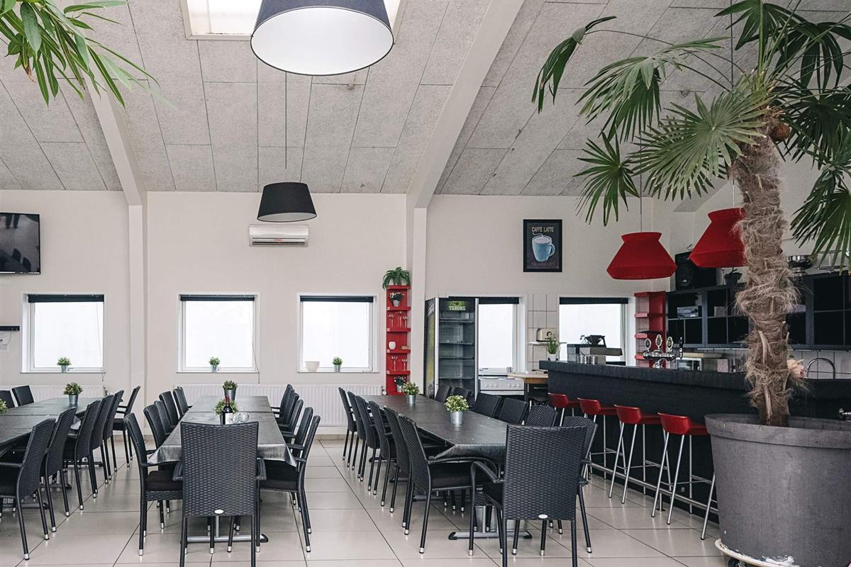 Im Gemeinschaftsraum gibt es u.a. einen großen Essbereich für bis zu 36 Personen und eine große, offene Küche in der das Festmahl und weitere Mahlzeiten zubereitet werden können. Diese ist u.a. mit zwei Kochherden, zwei Geschirrspülern und einem großen Kühlschrank umfassend ausgestattet, damit hier für entsprechend viele Menschen gekocht werden kann.