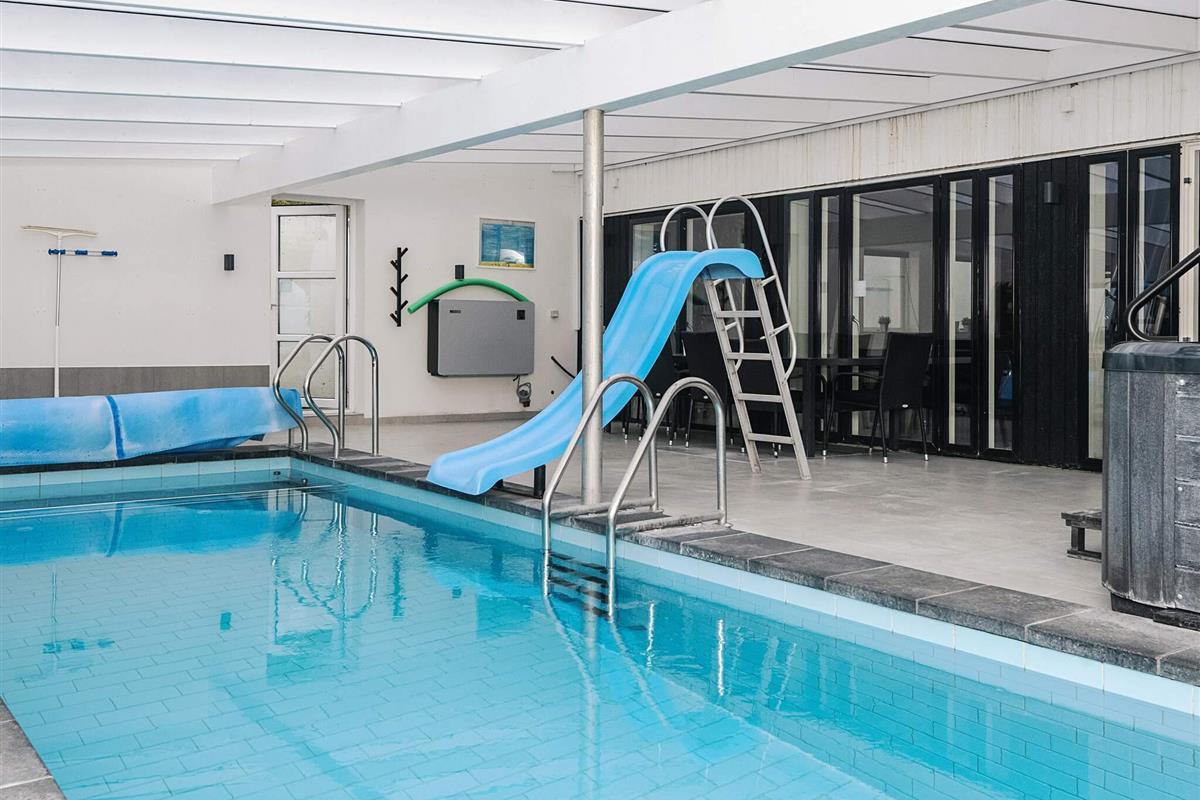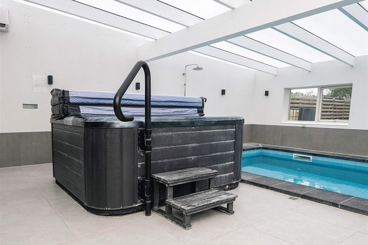 Der Pool befindet sich am Ende des Hauses und verfügt sowohl über einen Kinder- als auch einen Erwachsenenbereich. Zudem stehen ein großer Whirlpool für bis zu sechs Personen und eine Infrarotsauna zur Verfügung. Hier sollte der Badespaß nicht zu kurz kommen.