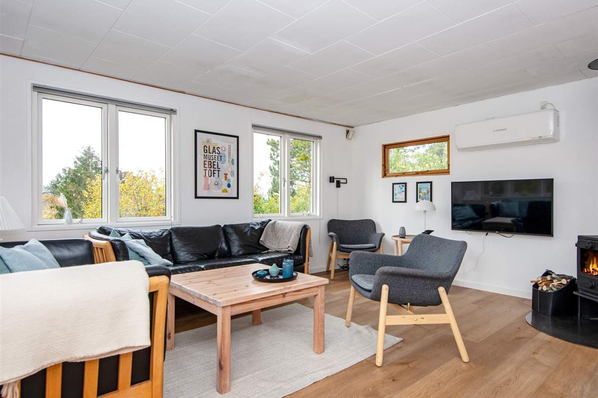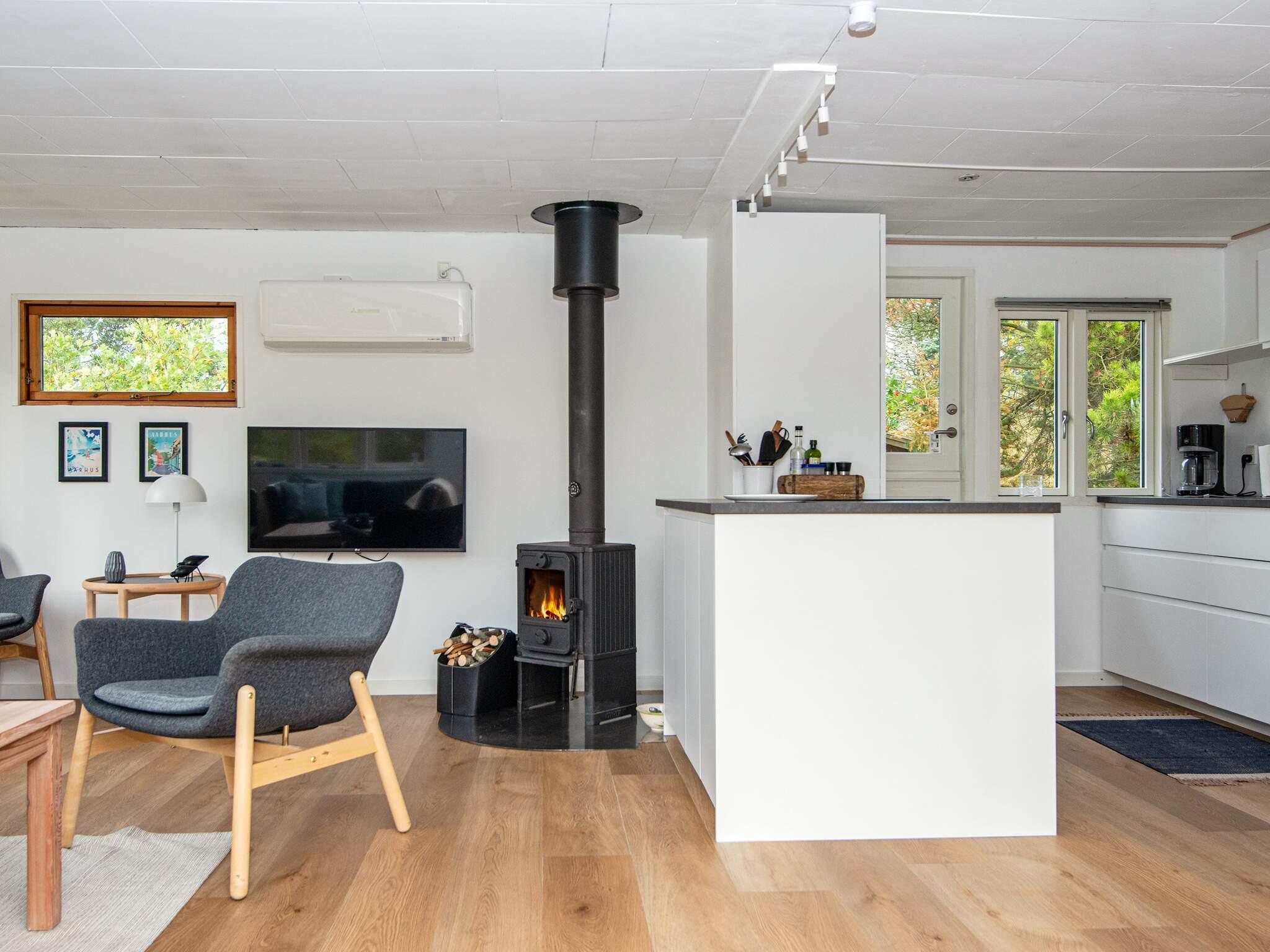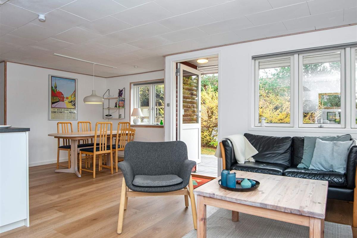 Nahe bei Ebeltoft steht dieses 2022 ansprechend und hell renovierte Ferienhaus mit schönem Naturgrundstück. Die Renovierung im Jahr 2022 umfasste neue Küche und Geräte, neue Betten und neue isolierte Böden.