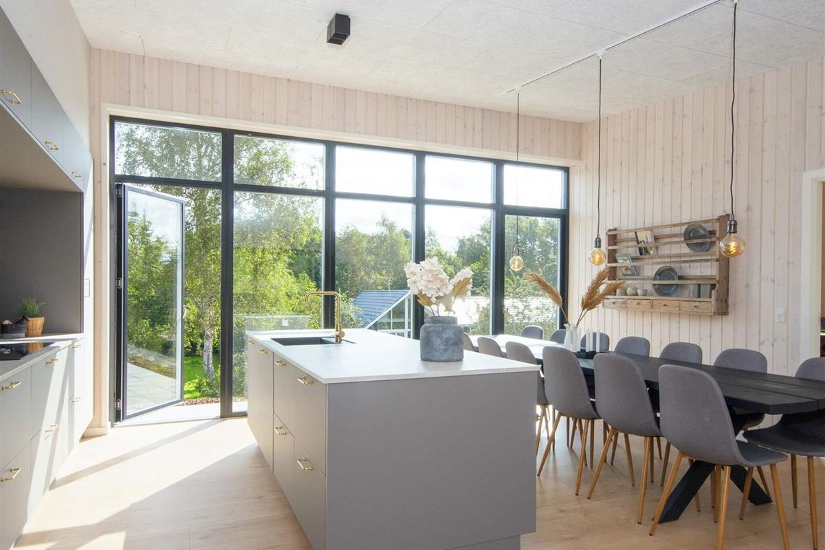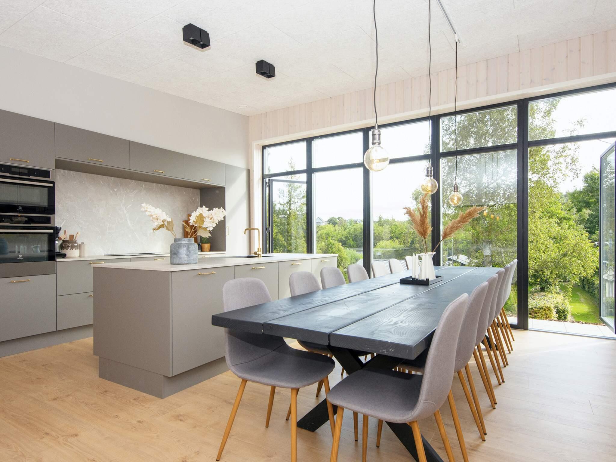 Dieses neu erbaute Ferienhaus, fertiggestellt 2023, liegt nahe der Küste und nur einen kurzen Spaziergang von der malerischen Altstadt von Ebeltoft entfernt. Das Anwesen verbindet modernen Luxus mit familienfreundlichen Annehmlichkeiten und bietet den perfekten Rahmen für Gruppen oder Großfamilien, die Entspannung und Spaß unter einem Dach suchen.