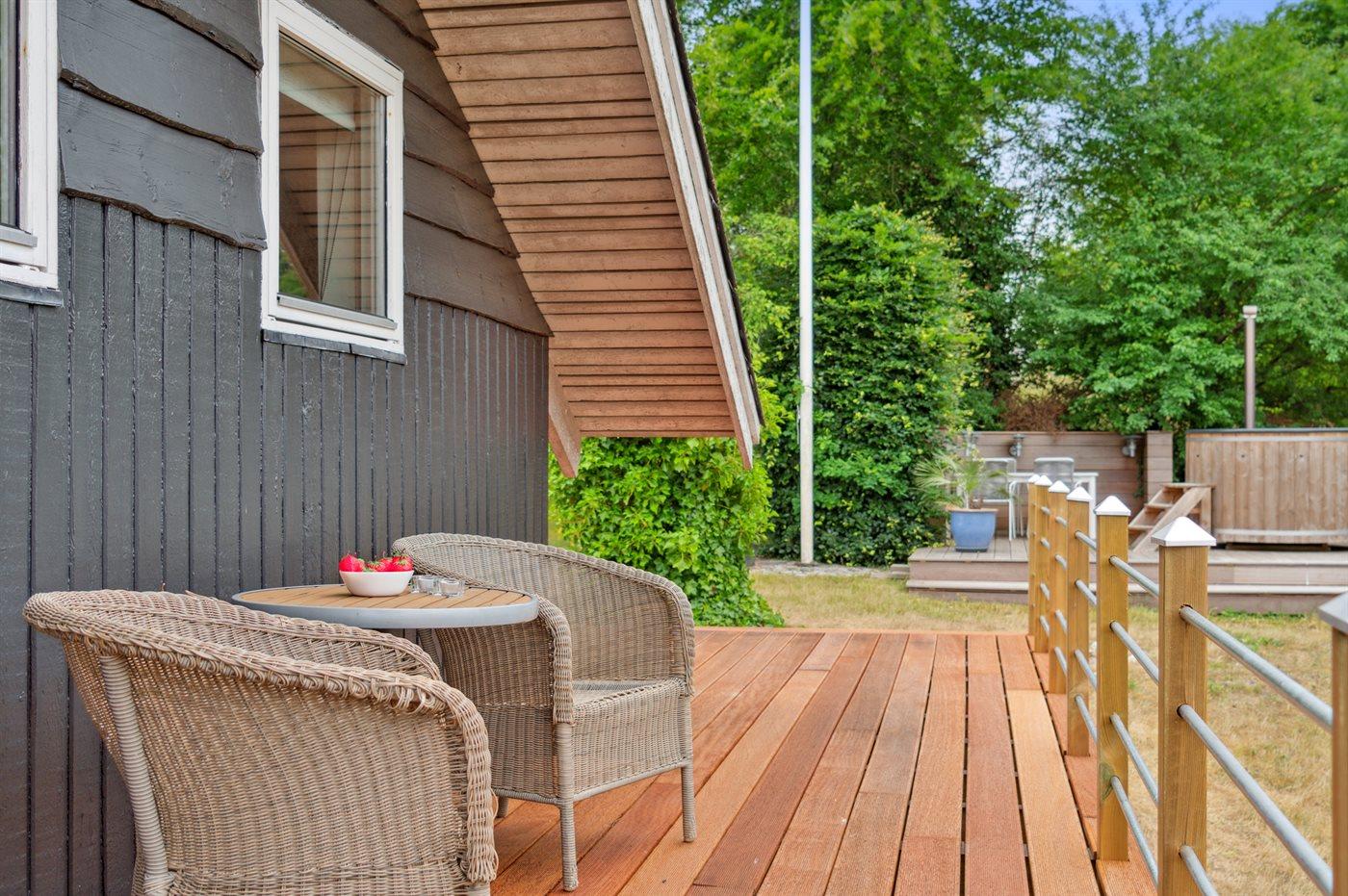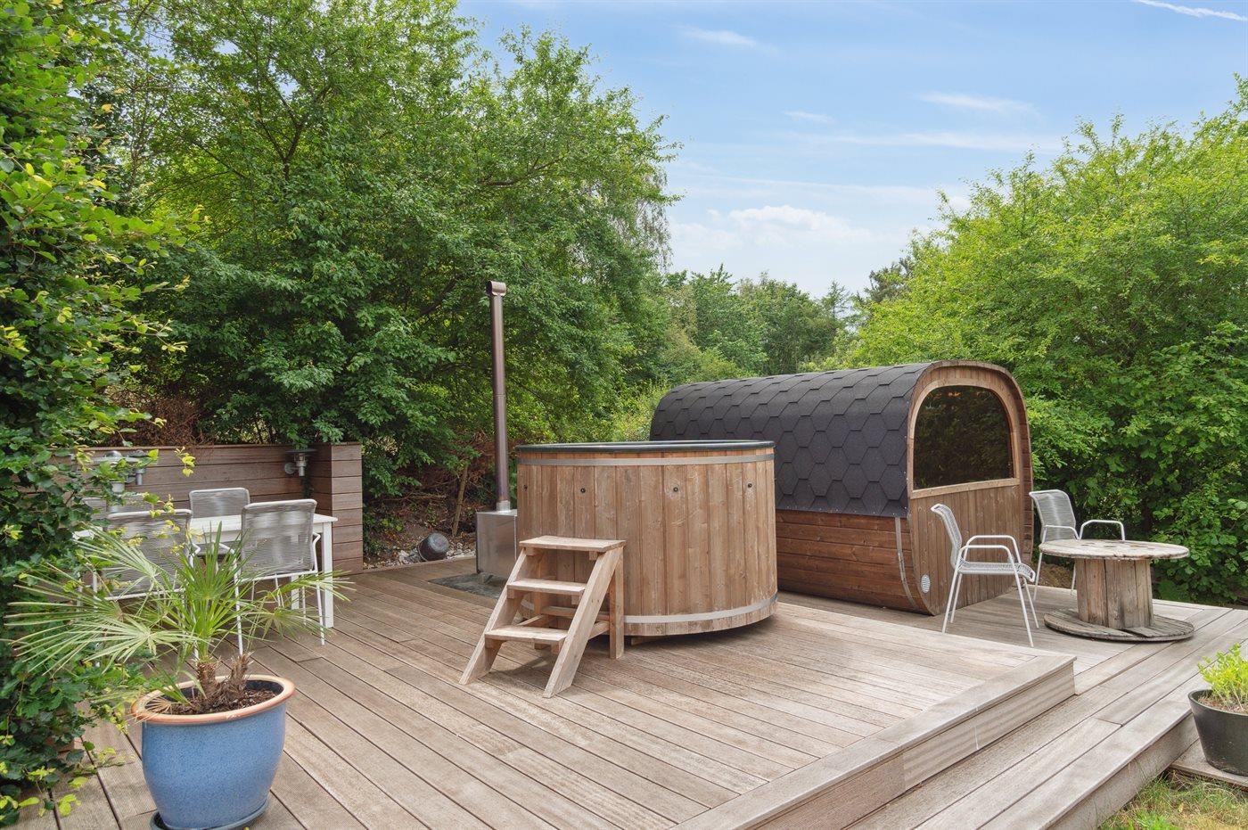 De vakantiewoning is gelegen op een 1200 m² groot aangelegde tuin. Afstand tot de zee 1000 m. Dichtstbijzijnde winkel 1000 m. Bij de vakantiewoning hoort 40 m² terras. Daarnaast is er een 12 m² groot overdekt terras.Vuurplaats. Buitensauna. Carport ter beschikking. Het huis heeft een stopcontact voor het opladen van een elektrische auto. Oplaadstekker type 2. Met 11 kW-laadvermogen. Parkeerplaats bij het huis.