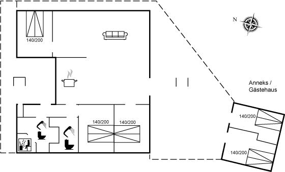 De vakantiewoning is gelegen op een 2016 m² groot natuural grond. Afstand tot de zee 50 m. Dichtstbijzijnde winkel 3500 m. Er is een golfbaan op een afstand van 3000 m. Bij de vakantiewoning hoort terras. Barbecue. Parkeerplaats bij het huis.