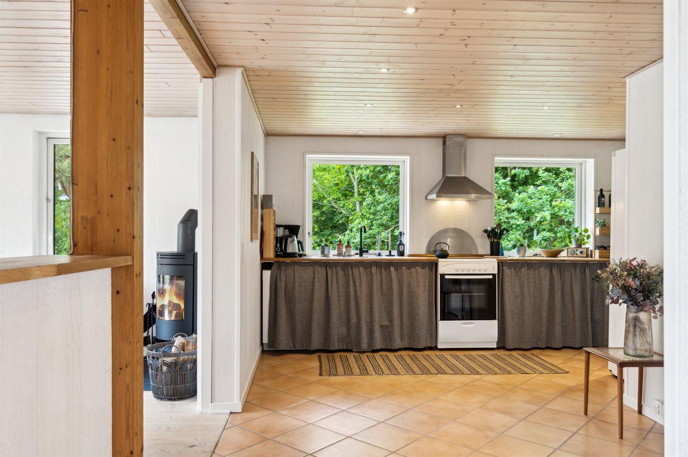 Gezellig vakantiehuis in Ebeltoft met houtkachel, tuin en moderne keuken, op 1000 meter van zee.