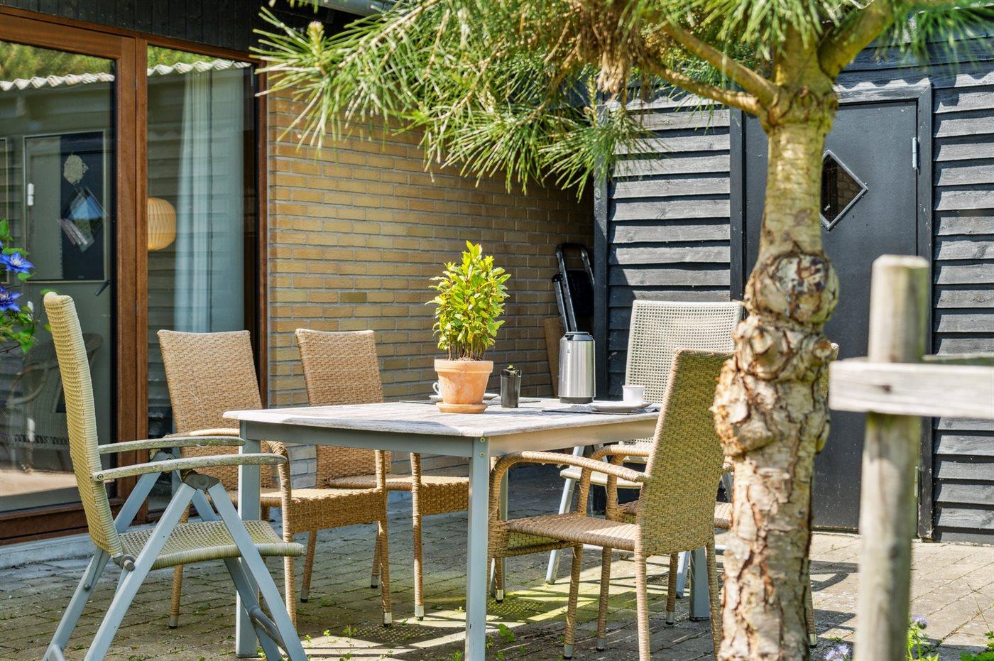 De vakantiewoning is gelegen op een 1400 m² groot natuural grond. Afstand tot de zee 700 m. Dichtstbijzijnde winkel 3000 m. Bij de vakantiewoning hoort terras. Daarnaast is er een overdekt terras. Voetbaldoel. Afstand tot speelplaats 1000 m. Barbecue. Carport ter beschikking. Parkeerplaats bij het huis.