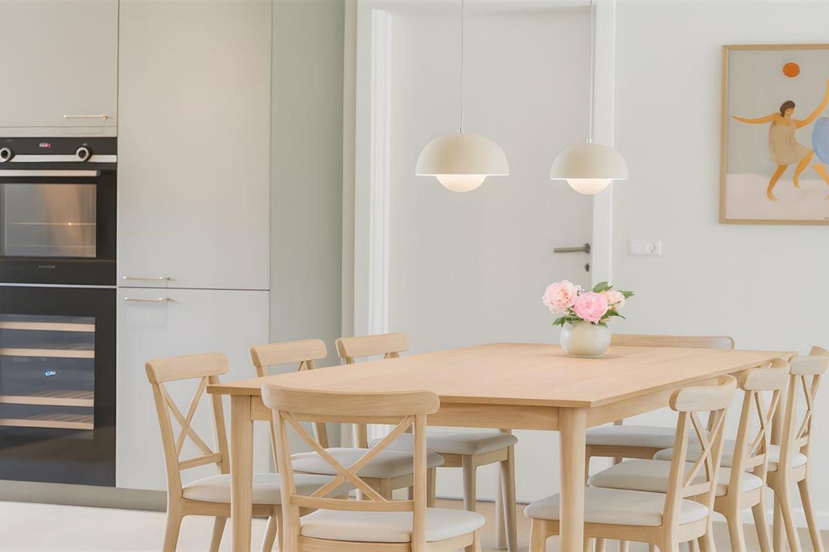 De keuken is uitgerust met koelkast Er is 4 inductiekookplaten, heteluchtoven, magnetron en vaatwasser.